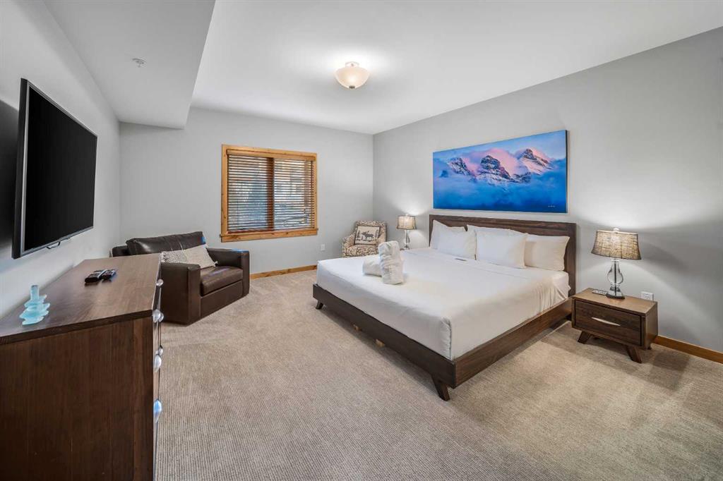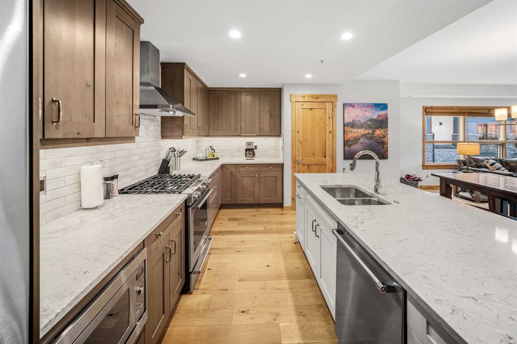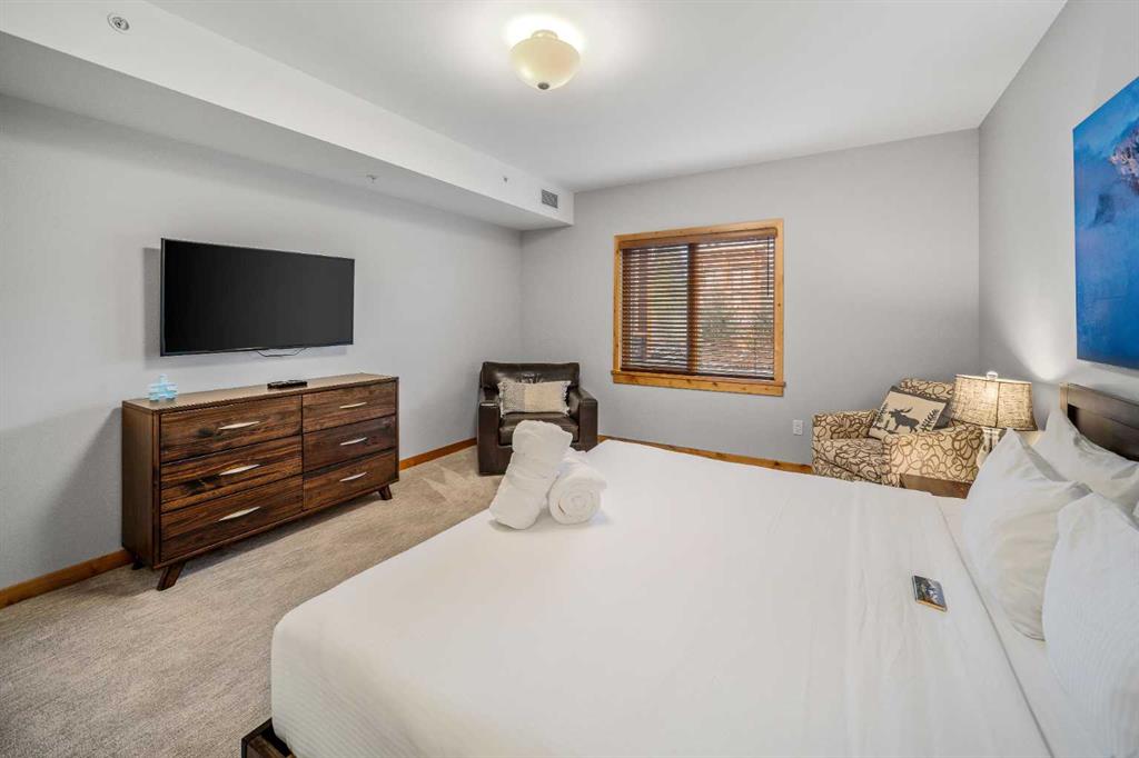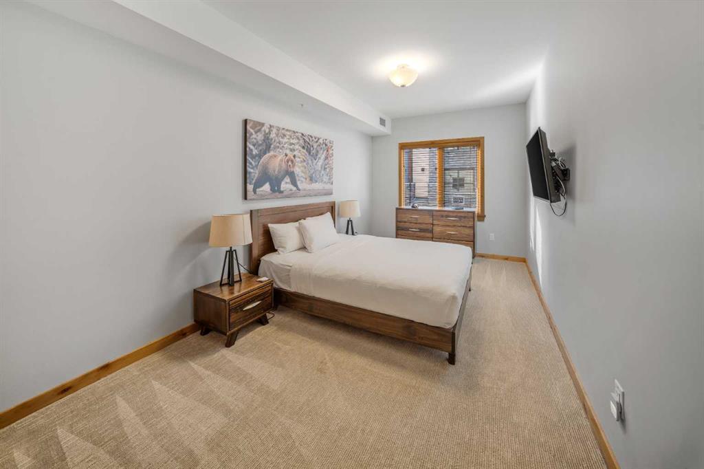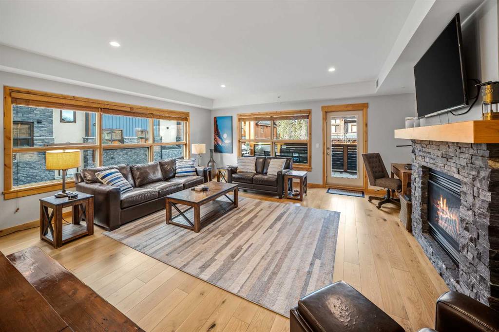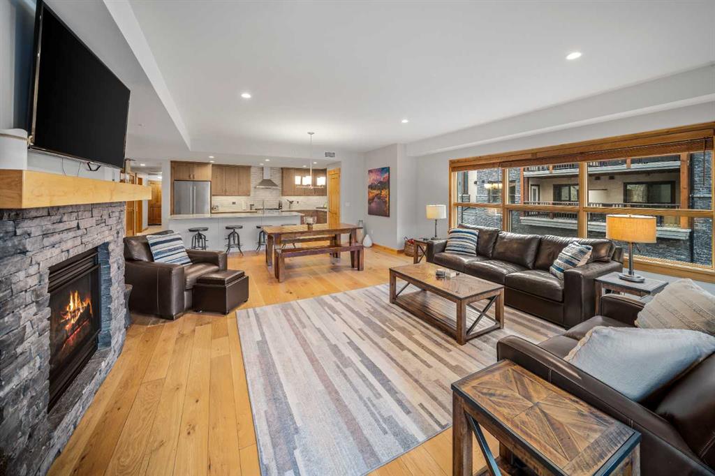 This tourist zoned, bright and spacious 3 full bedroom, 2 bath, ground-level corner condo offers 1,657 sq. ft. of comfortable, single-level living with a layout that truly feels like home. Enter through a welcoming, tastefully tiled foyer, and step into the open-concept main living area, where large south facing windows bring in plenty of natural light and showcase stunning mountain views. The covered deck is the perfect spot to take it all in, year round. The living space features hardwood flooring, a cozy stone gas fireplace, dining area, and a chef-style luxury kitchen with quartz countertops', and plenty of cupboard space. All three bedrooms are carpeted, including the oversized primary suite with a walk-in closet and a generous spa inspired 5-piece ensuite. The two additional bedrooms enjoy bright east-facing views, and the condo comes fully furnished. As a southeast corner unit, the home benefits from great light throughout the day, and also comes with 2 titled underground parking stalls with an assigned storage locker. Owners and guests also enjoy access to a gym and a charming courtyard space which includes an outdoor hot pool. Bridgette Bar and numerous shops are just steps away in Spring Creek Village, and you will enjoy a whimsical walk into town on the policeman's creek boardwalk. This property has a strong track record as a short-term rental, generating $115,816 in 2024 and $107,417 in 2025 through Spring Creek Vacations, making it an excellent revenue generating property, yet also allowing you to use it yourself. This is a Gem of a property with usage options, making it an ideal Mountain Retreat. Price includes the GST.