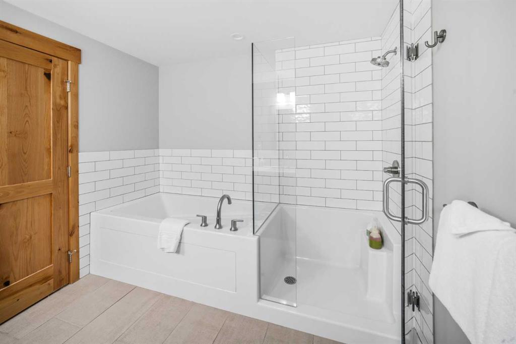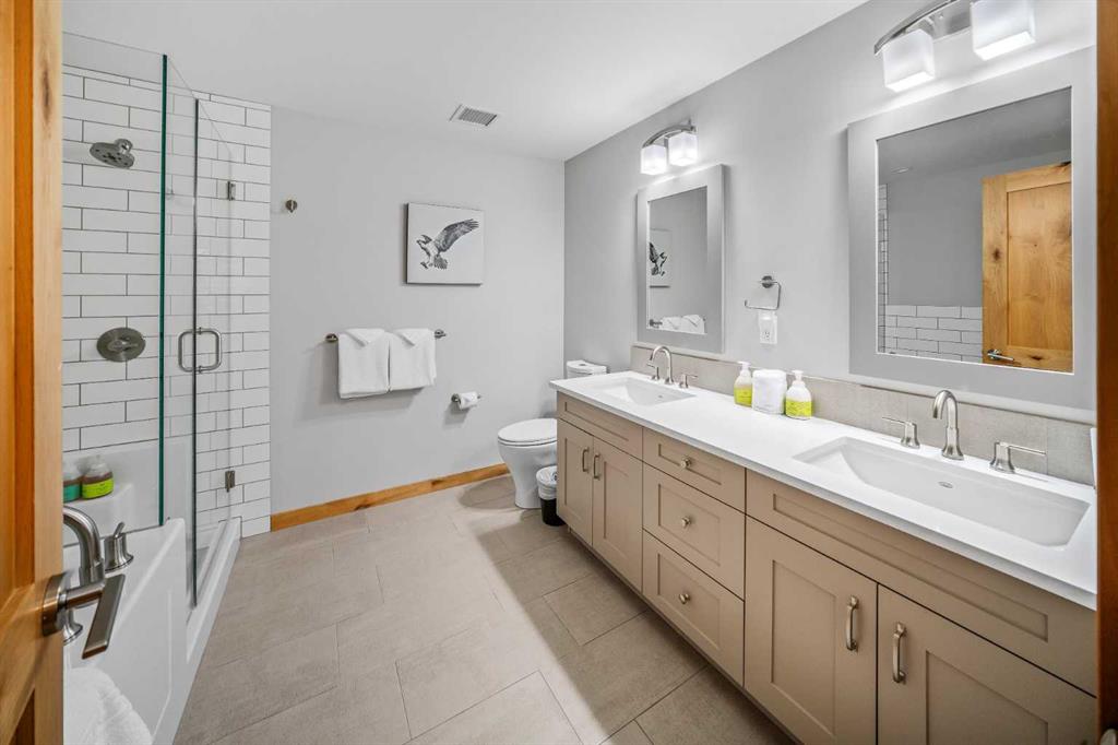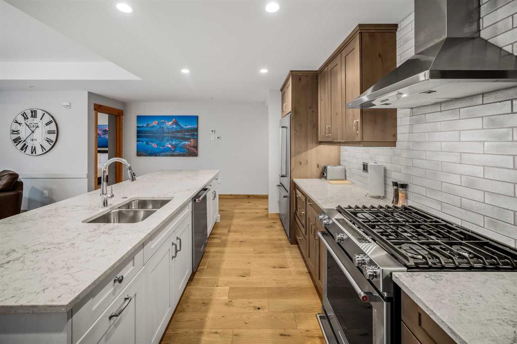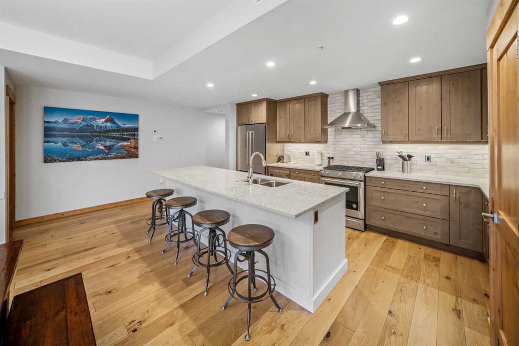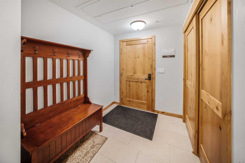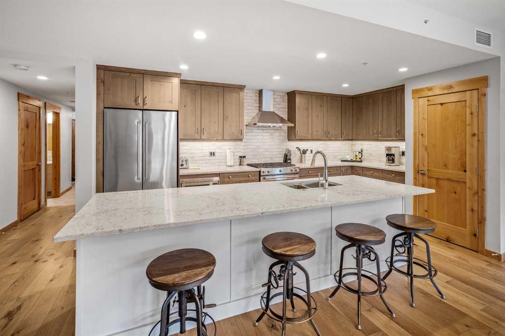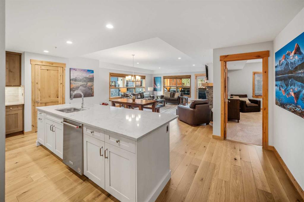 This tourist zoned, bright and spacious 3 full bedroom, 2 bath, ground-level corner condo offers 1,657 sq. ft. of comfortable, single-level living with a layout that truly feels like home. Enter through a welcoming, tastefully tiled foyer, and step into the open-concept main living area, where large south facing windows bring in plenty of natural light and showcase stunning mountain views. The covered deck is the perfect spot to take it all in, year round. The living space features hardwood flooring, a cozy stone gas fireplace, dining area, and a chef-style luxury kitchen with quartz countertops', and plenty of cupboard space. All three bedrooms are carpeted, including the oversized primary suite with a walk-in closet and a generous spa inspired 5-piece ensuite. The two additional bedrooms enjoy bright east-facing views, and the condo comes fully furnished. As a southeast corner unit, the home benefits from great light throughout the day, and also comes with 2 titled underground parking stalls with an assigned storage locker. Owners and guests also enjoy access to a gym and a charming courtyard space which includes an outdoor hot pool. Bridgette Bar and numerous shops are just steps away in Spring Creek Village, and you will enjoy a whimsical walk into town on the policeman's creek boardwalk. This property has a strong track record as a short-term rental, generating $115,816 in 2024 and $107,417 in 2025 through Spring Creek Vacations, making it an excellent revenue generating property, yet also allowing you to use it yourself. This is a Gem of a property with usage options, making it an ideal Mountain Retreat. Price includes the GST.