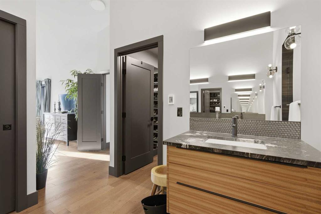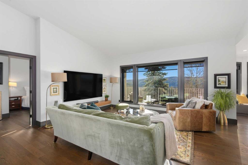 Experience luxury living in the heart of Priddis Greens with this beautifully renovated Augusta-model villa bungalow, perfectly positioned to capture sweeping views of the mountains, valley, and pristine golf course. Offering over 1800 sq ft on the main level and more than 3200 sq ft of total living space, this home blends elegance with comfort. The gourmet kitchen features two-tone cabinetry, granite counters, premium stainless appliances, a 5-burner gas stove, and a striking designer penny-tile backsplash. The spacious primary suite includes a stunning spa-inspired ensuite with heated floors, oversized multi-spray shower, dual sinks, and a skylight. Vaulted and flat ceilings, wide-plank flooring, custom walnut built-ins, skylights, and an impressive, curved staircase elevate the main floor. The walk-out basement is bright and inviting with wall-to-wall windows, generous entertainment areas surrounding the 3 sided fireplace. Play pool or cards while watching the big screen, a full bath, and a large bedroom. Additional upgrades include LUX triple-pane windows, two new furnaces, central A/C, enhanced soundproofing, and an oversized double garage with extra storage and 220v, extra space for you golf club and bikes. Also set up for 220v Hot Tub out back. Set within a well-managed condo community with a strong reserve fund, this exceptional villa offers unmatched tranquility, convenience, and lifestyle — from cross-country skiing at your doorstep to golfing just steps away.