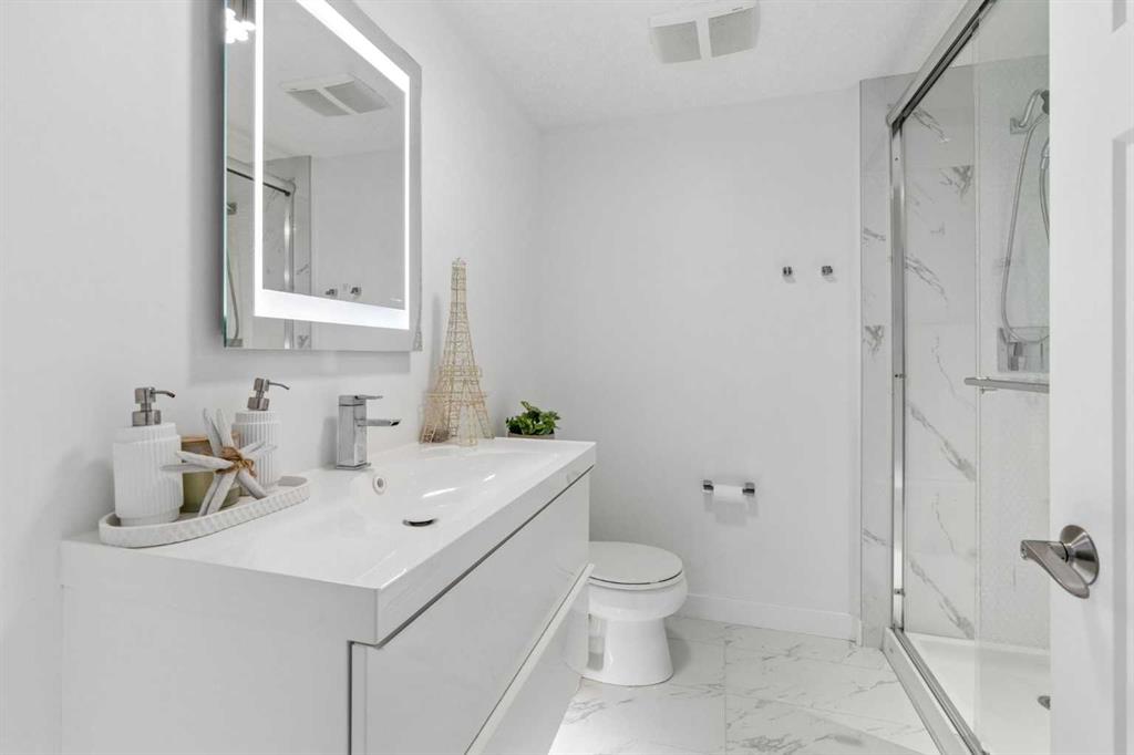 Location? Unbeatable. Custom Upgrades? Endless. This impressive home offers over 3,100 sq.ft. of fully finished living space in one of the most desirable areas of Mahogany. Just minutes from Mahogany West Beach, this property combines convenience, lifestyle, and quality craftsmanship throughout. Positioned on a quiet street directly across from a large green space and park, the home also provides incredibly easy access in and out of the community. Step inside and you’ll quickly see this is far from a typical home. Built with numerous custom features, the main floor showcases beautiful wainscotting, crown moulding, built-in shelving, and wide plank engineered flooring. The inviting living room with a gas fireplace flows into a spacious dining area perfect for entertaining. The dining space is highlighted by a skylight overhead that fills the room with an abundance of natural sunlight, creating a bright and welcoming atmosphere throughout the day. French doors off the dining room lead to the low-maintenance backyard, creating a seamless indoor-outdoor living space. The kitchen is designed to impress with a massive island offering additional seating, quartz countertops, stainless steel appliances, a smart fridge, corner pantry, and abundant cabinet and counter space. A charming beverage station complete with a wine fridge adds the perfect touch for morning coffee or evening drinks. Upstairs, the bright and open layout features a large primary retreat with a walk-in closet and a luxurious 5-piece ensuite with double vanities, glass shower, and relaxing soaker tub. Two additional spacious bedrooms—one with its own private balcony—plus a full bathroom and versatile flex space provide ideal room for a home office, kids’ play area, or additional lounge space. The fully finished basement continues to impress with 9-foot ceilings, a generous fourth bedroom with built-in wardrobes, and a beautifully finished 3-piece bathroom featuring heated floors, under-cabinet lighting, and a large glass shower. The cozy TV area with a second fireplace creates the perfect space for movie nights. The oversized heated garage with epoxy flooring is fully finished—perfect for storage, hobbies, or the ultimate man cave. Outside, the private backyard features mature trees along with upper and lower decks offering multiple seating areas to relax and entertain. With the lake, parks, and walking paths just steps away, this exceptional home offers the very best of lake community living in Mahogany. Your dream home awaits—schedule your private showing now!