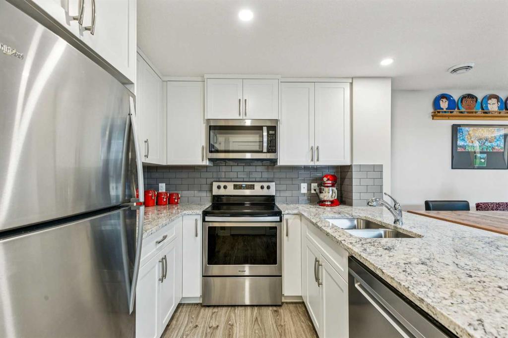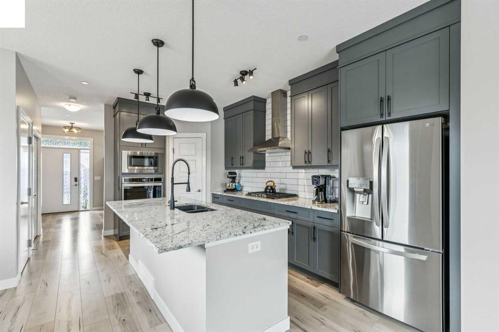 Welcome to 240 Lucas Avenue NW, a well-designed home in the growing community of Livingston that offers space, flexibility, and thoughtful upgrades throughout. Set on a corner lot, this property stands out right away with added privacy, extra light, and functional outdoor space—including a dedicated parking area perfect for a camper or additional vehicles. The double detached garage was built by the builder, matching the quality and design of the home. Inside, the main floor is bright and open with large windows and upgraded sliding doors that lead straight out to the deck—making it easy to enjoy indoor-outdoor living. The front room is currently set up as a home office but can easily flex into a playroom, sitting area, or formal dining space depending on your needs. The kitchen is a true highlight, featuring a gourmet upgrade with quartz counters, a large island, gas cooktop, built-in oven, and plenty of storage. It’s built for both everyday living and hosting. Upstairs, you’ll find three well-sized bedrooms, including a spacious primary retreat with a full ensuite, along with a bonus living area and convenient upper laundry. Downstairs, the legal suite—professionally developed by the builder—offers a great setup for rental income or multi-generational living. With its own separate side entrance, full kitchen, bedroom, bathroom, and no carpet throughout, it’s clean, durable, and low maintenance. Additional features include central A/C, a projector that stays with the home, and a fully fenced yard. Livingston is one of Calgary’s most sought-after newer communities, known for its incredible community hub, parks, playgrounds, and future amenities. The Livingston Hub offers year-round activities, skating, events, and space to connect—giving the area a real sense of community. You’re also close to major roadways, making it easy to get in and out of the city. For more information, photos, and a guided 360 tour, click the links below.