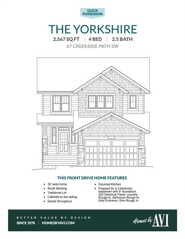 A TRIPLE CAR GARAGE USUALLY MEANS GIVING UP YARD OR SQUEEZING THE HOUSE. NOT HERE. This one’s done properly. Tandem on one side, single on the other—so you get three actual parking spots inside, without the footprint taking over the lot. The driveway still works too, which is rarer than it should be. Inside, the Yorkshire leans into space where it matters. The main floor is wide—noticeably so—and the kitchen sits right at the centre. A QUARTZ ISLAND people will actually use, with FULL-HEIGHT CABINETRY and DUAL PANTRY CABINETS doing the behind-the-scenes work. It’s clean, functional, and INCLUDES EVERYTHING YOU DESIRE - it doesn’t ask you to compromise. A 5-BURNER GAS COOKTOP, CHIMNEY HOOD FAN, built-in wall oven, and built-in microwave keep things streamlined, while the 3-PANEL PATIO DOOR pulls natural light deep into the dining area—making it feel like part of the home, not an afterthought. It’s beautifully open - Each space holds its own. The front entry has room to land, and the KITCHEN-TO-MUDROOM WALKTHROUGH just makes daily life easier. Upstairs is where this plan really delivers. Four bedrooms arranged around a CENTRAL BONUS ROOM that actually functions as a hub. The primary is set apart enough to feel like a reset, with an ensuite that gets it right: SOAKER TUB UNDER THE WINDOW, DUAL VANITY, and a TILED SHOWER WITH BENCH. The other three bedrooms are properly sized—no compromises—and the UPPER LAUNDRY WITH SINK AND CABINETRY is one of those upgrades you’ll appreciate constantly. And then the garage comes back into play—because it changes how the home actually lives. Storage, bikes, tools, seasonal bins… they finally have somewhere to go. Set in Sirocco At Pine Creek, with pathways through the coulees and quick access to Macleod, Stoney, and 22X, it strikes that balance between quiet and connected. Honestly, this is one you’ll want to walk through. It reads well on paper—but it lands even better in person. • PLEASE NOTE: Photos are of a DIFFERENT Spec Home of the same model – fit and finish may differ. Interior selections and floorplans shown in photos.