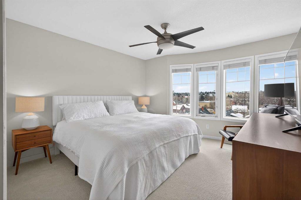 Why settle for an ordinary condo when you can have the space and feel of a townhouse without the townhouse price tag? This rare PENTHOUSE TOP FLOOR two-storey home in the vibrant community of Sunalta delivers the best of both worlds: the lock-and-leave convenience of a condo with the comfort and flow of a multi-level floor plan. This sunlit home blends inner-city convenience with everyday comfort. The main level invites connection and ease, with an open living and dining space featuring brand-new luxury vinyl plank flooring & neutral colour palette. This space is perfectly designed for cozy nights in by the fireplace or hosting friends before heading out to nearby restaurants and nightlife. The kitchen strikes a balance of stylish and practical with granite counters, maple cabinetry, and timeless subway tile - a backdrop equally ready for quick weekday dinners or weekend culinary experiments. Step out onto the south-facing balcony for your morning coffee or a glass of wine at sunset. This is the perfect urban retreat. Head upstairs and you’ll find brand new carpet with upgraded 8 lbs underlay that carries through two well appointed bedrooms tucked away from the bustle below, both with skyline glimpses that serve as a gentle reminder the pulse of downtown is just beyond your doorstep. A full bathroom connects the spaces, while smart design details keep the upstairs layout functional and inviting. Unlike most condos, this home surprises with a rare full laundry room - complete with extra storage, plus the peace of mind that comes with an updated furnace and hot water tank. Add in secure, heated underground parking and the exclusive feel of this smaller building, and you’ve got a property that stands out from the crowd. Set in a boutique building, you’re steps from the Sunalta LRT, 17th Avenue dining, shops, parks, and tennis courts. This home isn’t just a condo - it’s a lifestyle, with the urban energy you want and the space you didn’t think you’d find in the city.