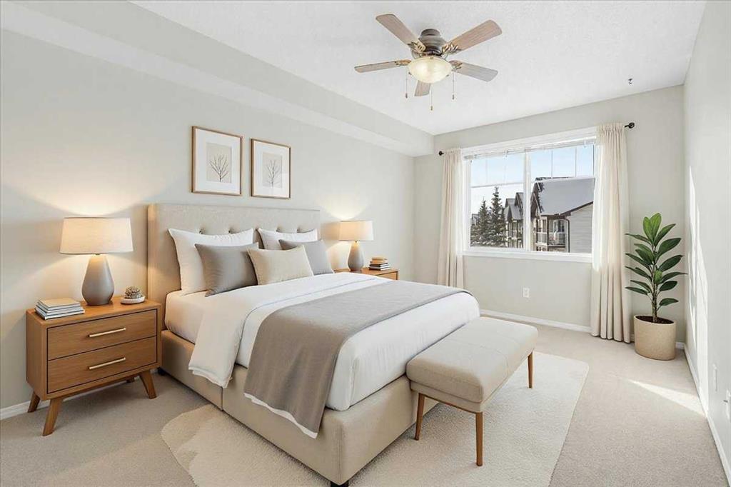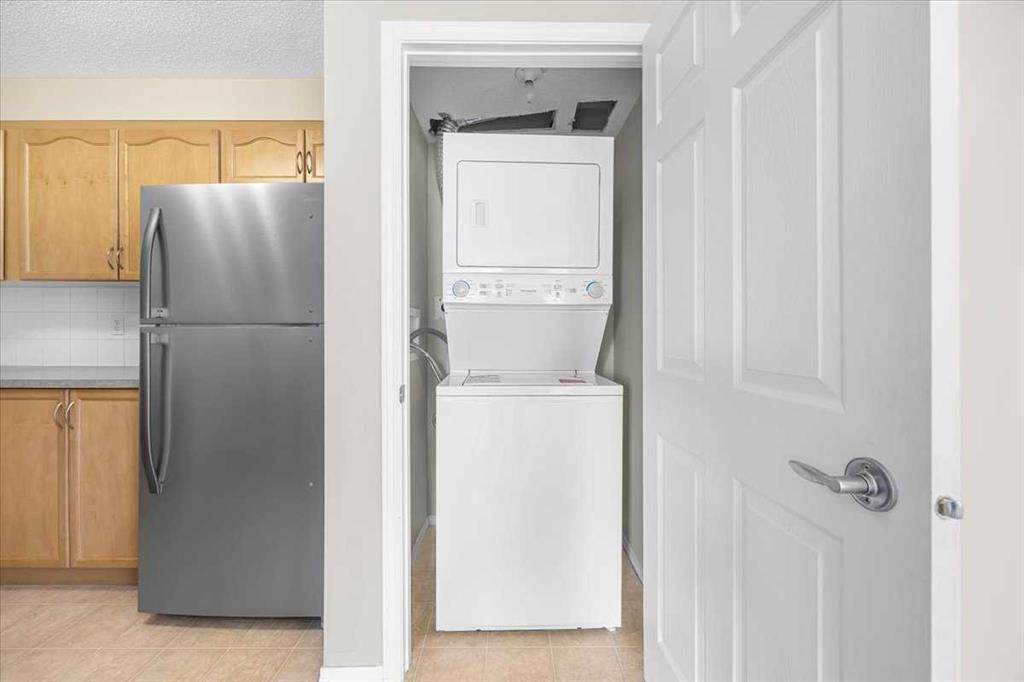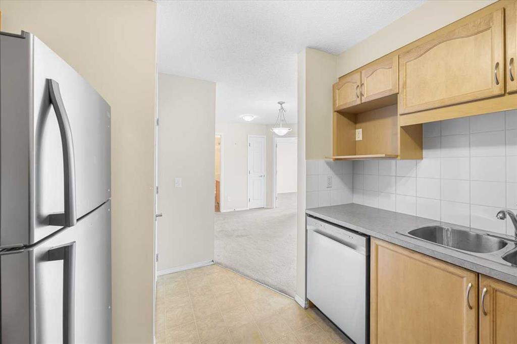 Welcome to Calvanna Village, a highly desirable 55+ community in the heart of Okotoks—perfect for those seeking a relaxed, low-maintenance lifestyle with a strong sense of community. This bright, south-facing one-bedroom condo is sure to impress! The spacious living and dining area is perfect for entertaining or enjoying quiet evenings, while large windows flood the home with natural light. The separate kitchen offers plenty of cabinet and counter space, and the convenience of in the suite laundry makes everyday living easy. The versatile Den is ideal for a home office, hobbies, or storage. Step out onto your private balcony with gas hookup—perfect for summer BBQs and soaking up the sunshine. Enjoy the peace of mind of secure underground parking with extra storage, plus there is lots of outdoor parking for guests. The clubhouse is a true highlight, featuring a social room, games room with pool tables, library, and exercise equipment—ideal for staying active and connecting with neighbours. Excellent location - walk to shopping, dining, and essential services. This well-managed complex offers everything you need right at your doorstep. Quick possession is available—come see for yourself why this could be your next home!