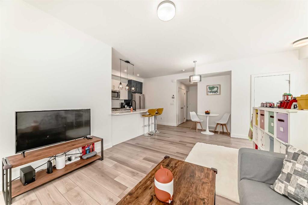 Stunning Corner-Unit Townhouse in Springbank Hill SW – Aspen Springs Over 1,100 sq. ft. of modern, thoughtfully designed living space in a nearly-new home backing onto a peaceful green space. One of the largest floor plans in the complex, this townhouse blends style, comfort, and functionality. Highlights: Versatile office/den – ideal for remote work or study Sun-filled open-concept living and dining area Chef-inspired kitchen with quartz countertops, stainless steel appliances, tiled backsplash, and central island Spacious private balcony with gas hookup for summer BBQs Two generous bedrooms upstairs, including a primary retreat with walk-in closet and ensuite Contemporary full bathroom and convenient upper-level laundry Luxury vinyl plank flooring throughout Additional Features: Private attached single garage Retail plaza within the complex and minutes to Aspen Landing Close to top private schools: Webber Academy, Calgary Academy, Rundle College Easy access to downtown Calgary, Stoney Trail, and 69 Street LRT station Move-in ready with thoughtful upgrades, this townhouse is perfect for families, young professionals, or investors seeking a refined home in one of Calgary’s most sought-after communities.