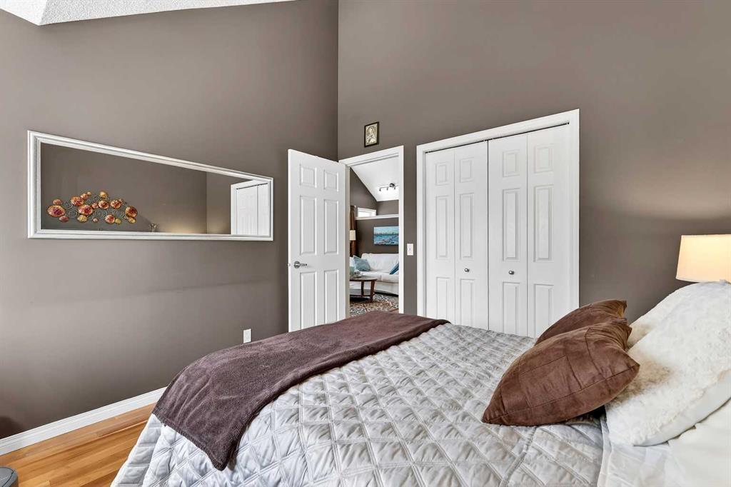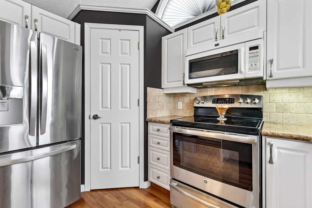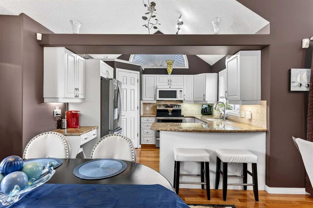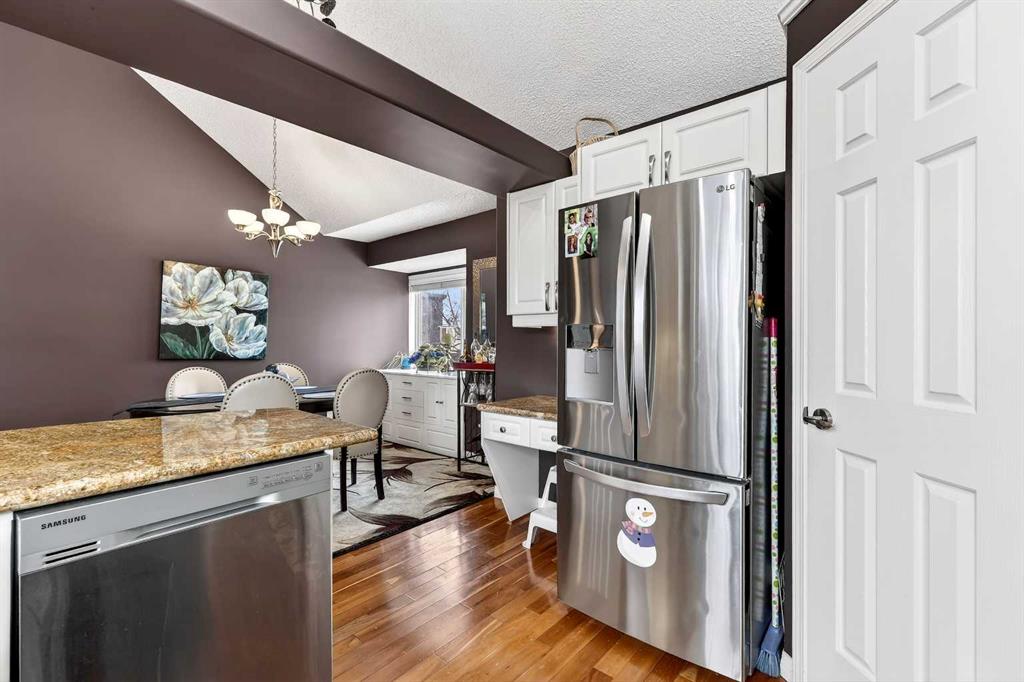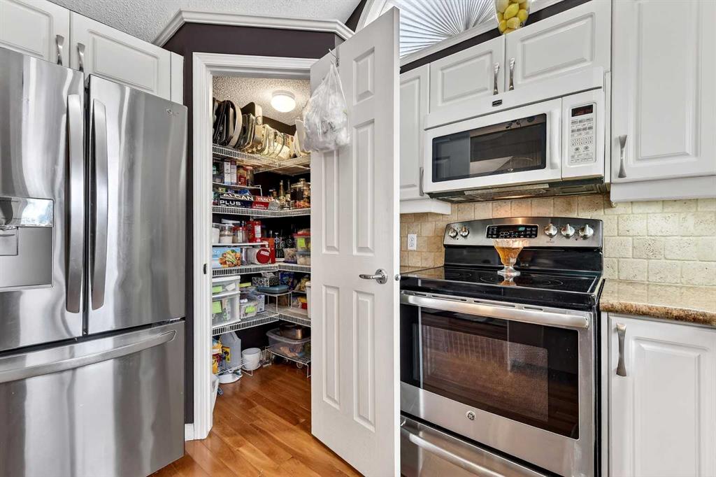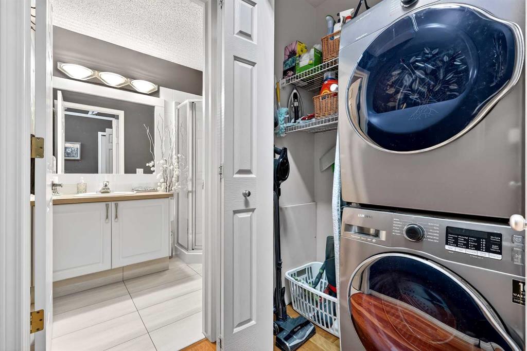 ***A Stunning Must See!*** Fantastic 2 bedroom, 2 bathroom end unit with attached (heated) garage in the highly desirable "Lookout at Christie Park!!" Enjoy unparalleled convenience that is merely a short walk to Sirocco LRT Station, Sunterra Market, shopping, a variety of restaurants, top-rated schools, parks and more. Icing on the cake is that it is a very quick commute to downtown...and an easy escape to the mountains from this coveted location! The unit itself offers over 1000 square feet developed with an amazing layout and soaring vaulted ceilings. A huge benefit is that no-one lives above...or below you! Updated flooring is comprised of cherry hardwood and luxury vinyl plank. Other items of note are granite kitchen countertops, a breakfast bar, clean/white cabinetry, stainless steel appliances and a feature gas fireplace in living room with granite facing. You'll absolutely LOVE the spacious bedrooms! The primary bedroom has a walk-in closet...plus 4 piece private ensuite. The 2nd bedroom has built-in cabinetry and is conveniently located near the main 3 piece bathroom. Dining area also has attractive built-in cabinetry. Main floor laundry too! ALL appliances included. The private west-facing balcony will bring peaceful enjoyment during the warm summer days/evenings. The Lookout is very well maintained with mature trees, visitor parking and near walking pathways. Units of this caliber rarely become available at such an affordable price. Don't miss out...call your favorite agent and come take a look!