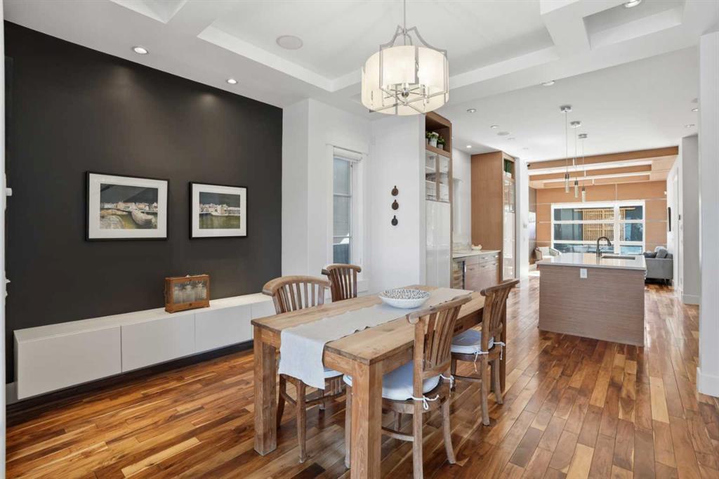 Welcome to an exceptional Altadore residence where refined design meets everyday comfort in one of Calgary’s most coveted inner-city communities. Positioned on a highly desirable north/south exposure, this home offers the perfect blend of lifestyle and location—just moments from Flanders Park and a short stroll into the vibrant heart of Marda Loop, known for its boutique shopping, dining, and community energy. Inside, the home unfolds into a beautifully curated main level that balances sophistication with livability. From the moment you walk in you can feel how well this home has been cared for. The open-concept design creates a seamless flow, anchored by a stunning living space featuring a contemporary tiled fireplace that adds both warmth and architectural interest. Thoughtful additions like a functional mudroom and main floor powder room ensure the home is as practical as it is polished, while rich hardwood flooring ties everything together with timeless elegance. The kitchen is nothing short of impressive—designed to elevate both everyday moments and making entertaining effortless. Custom-built cabinetry, sleek quartz surfaces, and an expansive island create a striking focal point. Premium stainless steel appliances—including a gas cooktop, a built-in microwave (2023), a silent dishwasher with a third rack (2023), and a beverage fridge—offer both performance and style. Upstairs, the home continues to impress with high ceilings, three grandly scaled bedrooms, a full bathroom, and a dedicated built-in workspace—perfect for modern family life or working from home. The primary suite feels like a private escape, complete with a spa-inspired 5-piece ensuite and a spacious walk-in closet. Plush new carpeting (2023) enhances comfort throughout the entire upper level. The fully finished lower level expands your living space intentionally, offering a large recreation area ideal for entertaining or relaxing, a sleek wet bar with a beverage fridge, a fourth bedroom, and a beautifully appointed full bathroom. With new carpet installed in 2023, this level feels fresh, inviting, and ready to enjoy. This home has been meticulously cared for and thoughtfully upgraded over time. Upgrades include a newer roof (2017), furnace and water softener (2020), full interior repaint (2023) with touchups done (2026), and a brand-new 75 gallon hot water tank (2024), ensuring stress-free years ahead. Outdoors, the south-facing backyard is designed for both relaxation and connection. Featuring a raised seating area, and an electric retractable awning for added comfort, the space transitions effortlessly from daytime lounging to evening entertaining. Ambient string lighting completes the setting, creating a warm and inviting atmosphere long after the sun goes down. Whether for a morning coffee or evenings with friends this spacious backyard offers just what you are looking for! This is more than just a home—it’s a complete lifestyle opportunity in one of Calgary’s most desirable neighborhood!