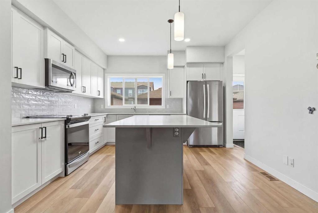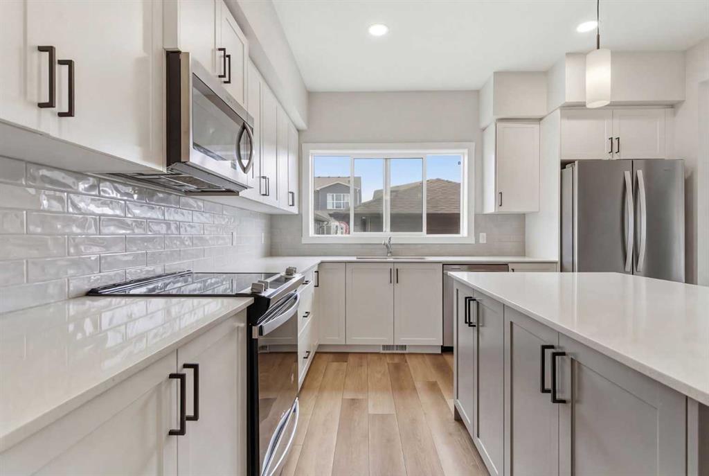 Welcome to this beautifully designed semi-detached home with a legal secondary suite, ideally located in the sought-after community of Legacy in southeast Calgary. Offering a perfect blend of modern finishes, functional layout, and income potential, this property is an excellent opportunity for both homeowners and investors alike. The main floor features a bright, open-concept layout with a spacious living area that flows seamlessly into the dining space and contemporary kitchen. The kitchen is thoughtfully finished with quartz countertops, stainless steel appliances, a large central island, and a generously sized pantry—perfect for everyday living and entertaining. A convenient 2-piece bathroom completes the main level. Upstairs, you’ll find a versatile bonus room, ideal for additional living space, a home office, or a play area. The primary bedroom offers a comfortable retreat with a walk-in closet and private 3-piece ensuite, while two additional well-sized bedrooms and a 4-piece bathroom provide plenty of space for family or guests. Upper-level laundry adds everyday convenience. Step outside to enjoy the private, fully fenced backyard with a deck, along with a double detached garage. The charming front porch adds to the home’s curb appeal and provides a welcoming space to relax. The legal basement suite is accessed through a separate side entrance and is beautifully finished with a bright and modern kitchen, spacious living area, a large bedroom with walk-in closet, a 4-piece bathroom, and its own in-suite laundry, making it ideal for rental income or multi-generational living. Located in the vibrant and family-friendly community of Legacy, you’ll enjoy access to walking paths, green space and nearby amenities within the community. This is a fantastic opportunity to own a versatile property in one of Calgary’s most desirable southeast neighbourhoods.