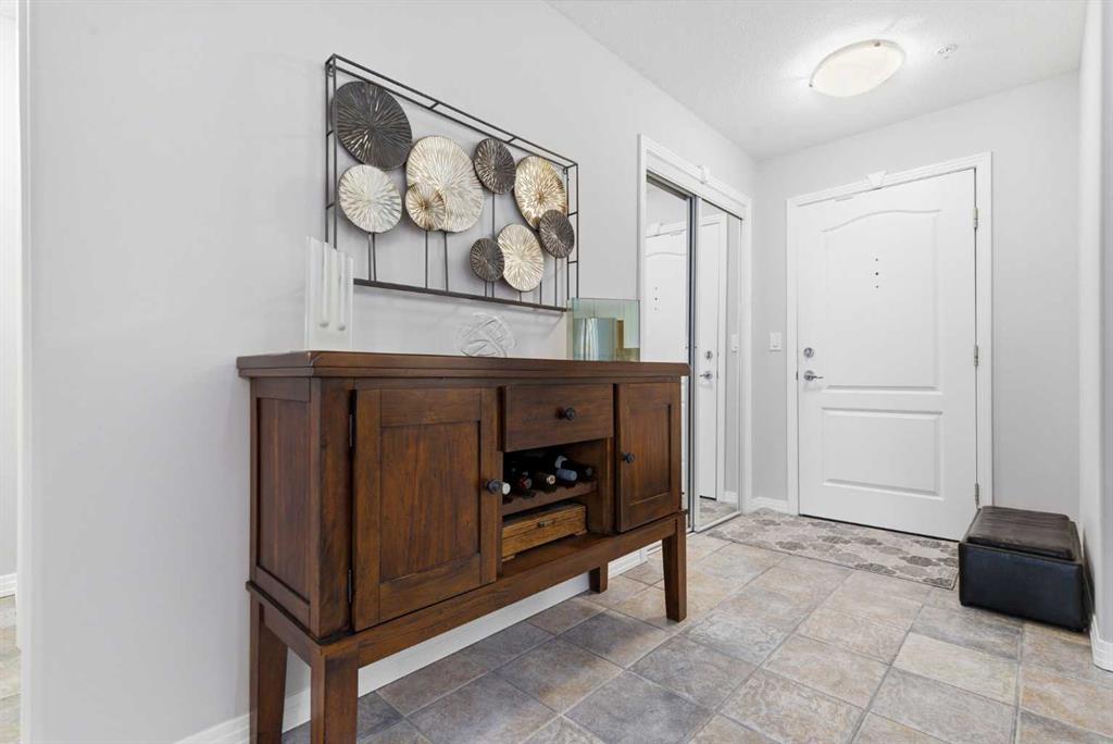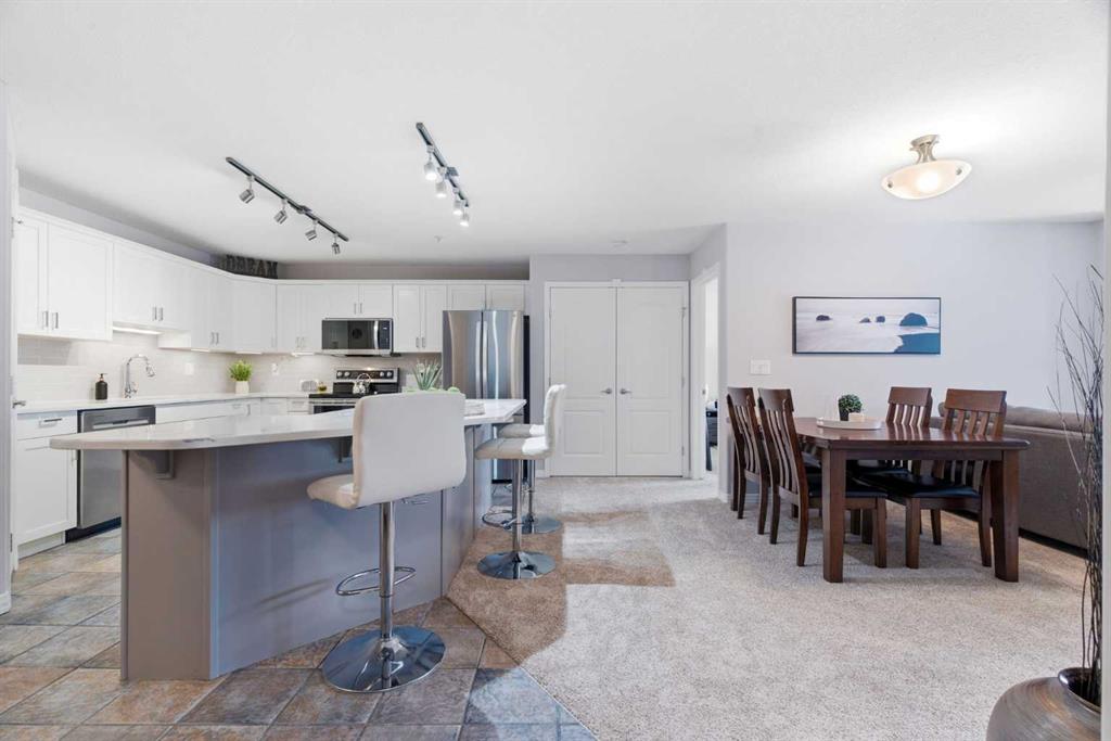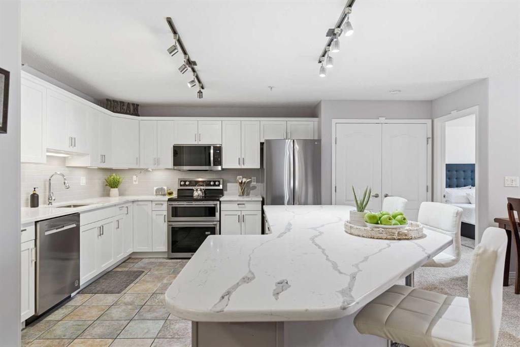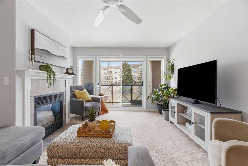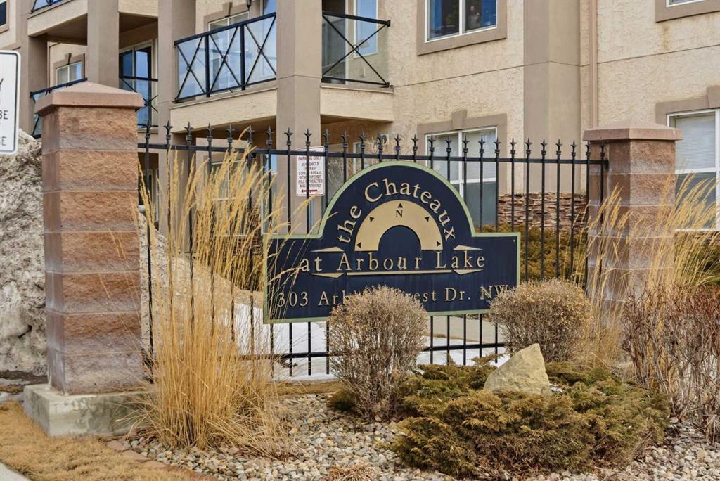 Welcome to the Chateaux of Arbour Lake — where comfort, community, and convenience come together in one beautifully updated home. Nestled within an exclusive adult 18+ complex surrounded by single-family homes, this stunning 2-bedroom, 2-bathroom corner-style unit offers 1,217 sq ft of thoughtfully designed living space in one of the building's most coveted locations — overlooking the serene courtyard and fountain. Step inside and feel right at home. The fully renovated kitchen is a true showstopper, featuring a large island with eating bar, a walk-in pantry, and updated cabinets, all complemented by brand new appliances purchased within the last two years. Whether you're cooking for yourself or entertaining friends, this kitchen delivers. The open-concept living and dining area flows effortlessly to your large private balcony, where you can relax with your morning coffee and enjoy the peaceful fountain views below. A cozy gas fireplace with tile surround makes the living room the perfect place to unwind on cooler evenings. The generous primary bedroom features a walk-through closet leading to a beautiful 4-piece ensuite with soaker tub and tiled floors. A well-sized second bedroom and full 3-piece bath make this ideal for hosting guests or creating a dedicated home office. Fresh new paint throughout gives the entire unit a bright, move-in-ready feel. And the practical details? They're just as impressive. Two titled underground parking stalls — a rare and valuable find — plus two titled storage units, and in-suite laundry round out everything you need for easy, lock-and-leave living. The Chateaux community itself is truly special, offering a fitness center, recreation room, car wash bay, and a beautifully landscaped private park setting with gazebo. All of this just steps from the lake, parks, schools, shopping, and walking paths. This is the lifestyle upgrade you've been waiting for. Welcome home