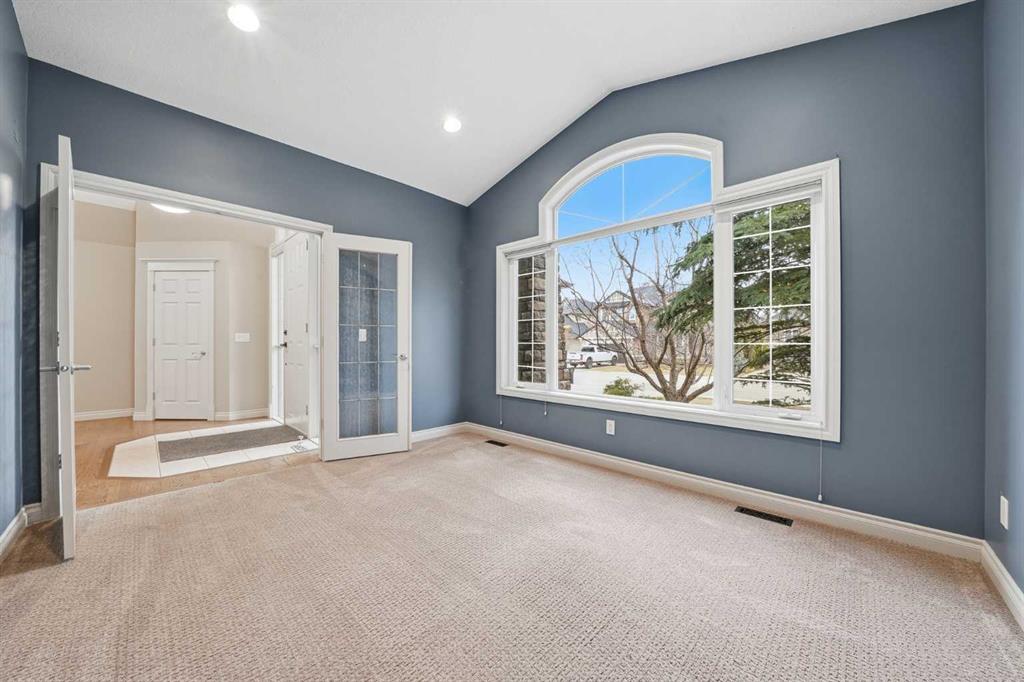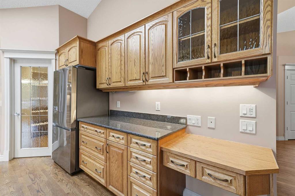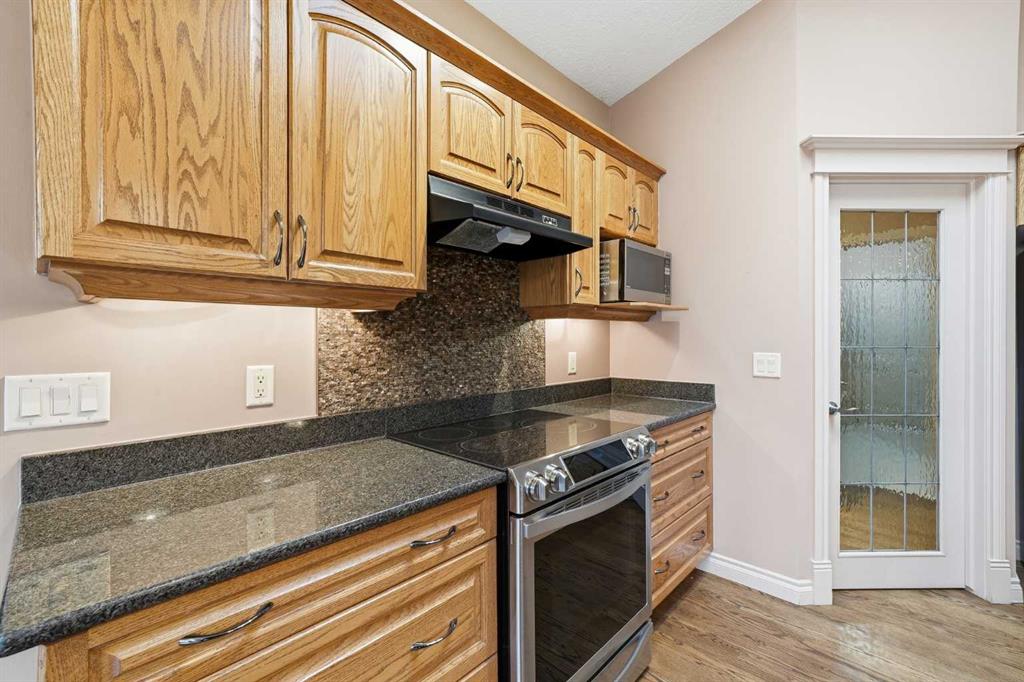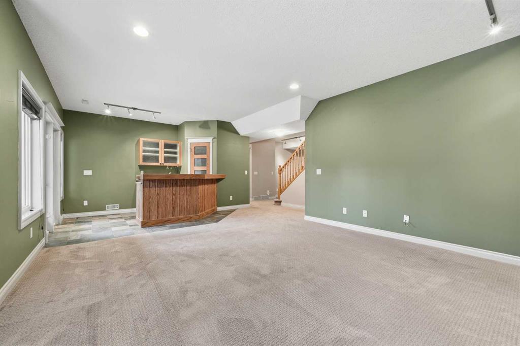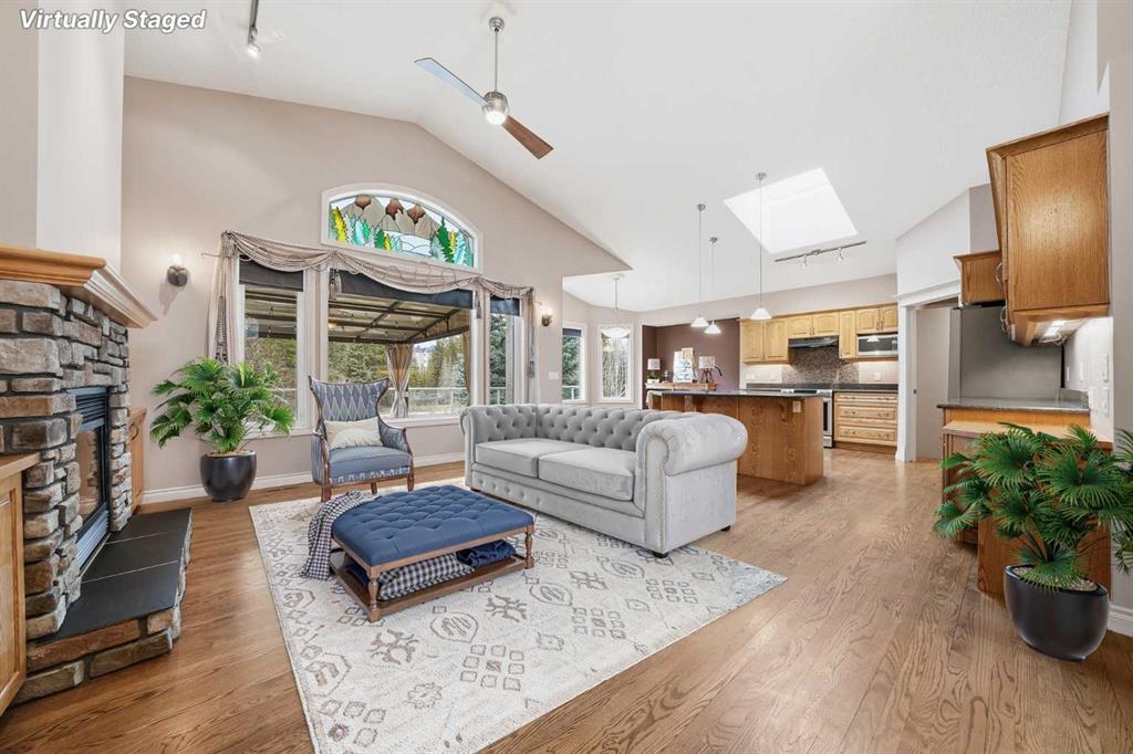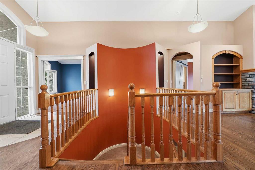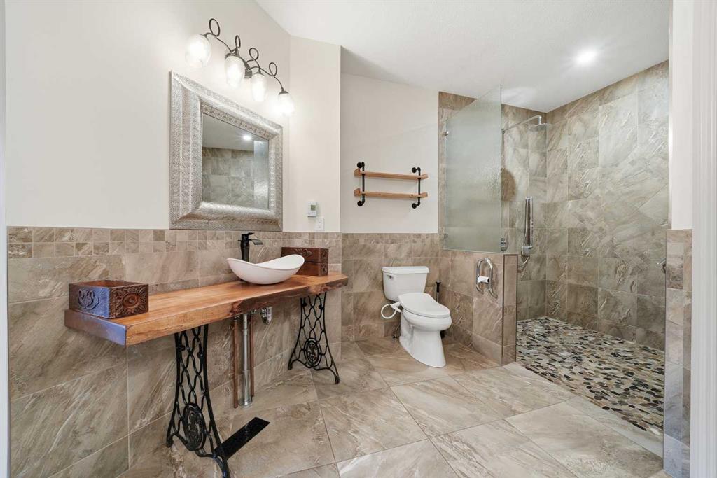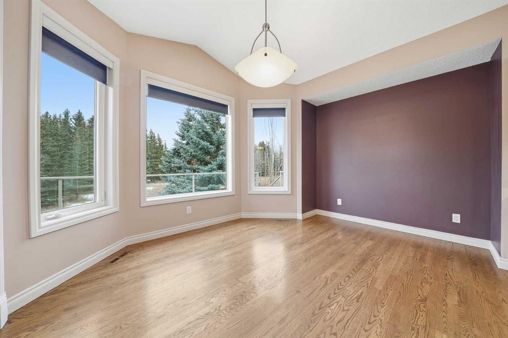 Welcome to 19 Discovery Ridge Cove SW, a remarkable bungalow that delivers the perfect balance of tranquil natural beauty and refined modern living. Nestled against lush green space with walking paths and the river just a short stroll away, this home offers a lifestyle defined by privacy, serenity, and convenience—all within one of Calgary’s most sought-after communities. From the moment you arrive, pride of ownership is evident throughout this thoughtfully designed residence. The main floor is highlighted by a spacious primary suite, complete with a stunning five-piece ensuite where antique sewing machine stands support a beautiful wood slab vanity, accompanied by a deep soaker tub and a generously sized shower—a truly distinctive touch of character and craftsmanship. Gleaming hardwood flooring guides you through the open-concept living spaces, where a vaulted ceiling amplifies the sense of light and space, and a gas fireplace flanked by built-in bookshelves creates a warm and inviting focal point. The chef’s kitchen is equally impressive, featuring a large island, granite countertops, stainless steel appliances, and an induction stove, while a convenient walk-through pantry leads to a well-appointed mudroom with lockers and a laundry room complete with a sink, cabinetry, and counter space. The walkout basement expands your living area with three additional bedrooms, a four-piece bathroom, a wet bar, and a second gas fireplace with built-in bookshelves—all offering endless possibilities for a recreation room, media space, or guest retreat. Step outside to the west-facing backyard, where a patio provides the ideal setting to unwind while overlooking the pond and waterfall feautre, the wooded green space, walking trails, and nearby wetlands. With a new furnace installed in October 2025, two water tanks, and central air conditioning, this home is truly move-in ready. Whether you are seeking a peaceful sanctuary or a space designed for effortless entertaining, this property delivers on every level. Experience the unmatched setting and exceptional details of this beautiful Discovery Ridge home for yourself—schedule your private viewing today.