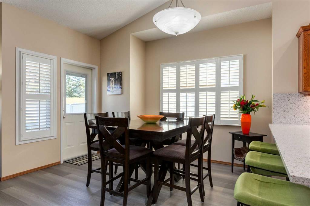OPEN HOUSE Friday March 20th from 4 to 6 PM. This UPDATED and FULLY DEVELOPED BUNGALOW in the established SW Millrise neighbourhood has almost 2500 square feet of developed space over two levels. There is a long list of extensive and quality interior and exterior improvements completed in past 5+ years. Nicely located on a quiet CUL-DE-SAC with a pie shaped lot backing onto GREEN SPACE, the home has abundant curb appeal with an exterior update by Lummerding Exteriors in 2022, including “heavy wall vinyl” and “class 4” hail impact roof shingles. The double attached garage is heated and finished with “Trimlight” LED lights on front & back of home. The main floor is an open concept layout with VAULTED CEILINGS in primary bedroom, foyer, living, dining, and kitchen areas, plus a skylight. Interior features include updated luxury plank vinyl flooring, custom window coverings, quartz countertops, several updated windows, chrome finish hardware, and updated light fixtures. The kitchen includes a pantry with stainless appliances and adjacent dining area plus eating bar. The exterior door off the living & dining area opens onto a HUGE DECK and PIE SHAPED backyard siding onto GREEN SPACE with walking paths. There is a large, newer window in the family room with a gas fireplace with fan. The primary bedroom offers a walk-in closet and 5-piece ensuite bath with jetted tub and separate shower. The main floor also includes a bright den, convenient half bathroom, and laundry room with newer washer & dryer and back hall closet. The lower level includes a four piece bathroom, two spacious bedrooms and recreation room, each with walk-in closets. This home is in a QUIET LOCATION and in MOVE-IN CONDITION. Millrise offers easy access to both Stoney and Macleod Trail, Fish Creek Park, LRT and numerous restaurants, recreation and retail amenities.