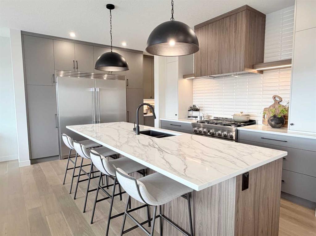 Welcome home to 406 Crimson Ridge Place NW—an exceptional Lupi Luxury Homes residence perched on the ridge in sought-after Crimson Ridge, offering breathtaking city, pond, and mountain views. Designed to impress, this stunning home blends elegance with everyday functionality, featuring 5 bedrooms and 3.5 bathrooms, including 3 generously sized bedrooms upstairs—each complete with its own walk-in closet. A spacious 3-car garage adds both convenience and curb appeal. Step inside to discover a bright, open-concept layout enhanced by triple-pane Low-E² windows that flood the home with natural light. The gourmet kitchen is a true showpiece, boasting full-height modern cabinetry to the 9-foot ceiling, an oversized island, and a premium appliance package including a built-in stainless steel double fridge/freezer, upgraded gas range, dishwasher, microwave, hood fan, and bar fridge—perfect for both entertaining and everyday living. A butler’s pantry adds extra prep space and storage. The expansive great room centers around a striking fireplace, creating a warm and inviting atmosphere. From here, step out onto the large deck—ideal for relaxing or hosting while soaking in the panoramic views. Upstairs, the luxurious primary suite offers a private retreat with a spa-inspired ensuite featuring a curb less walk-in shower, deep soaker tub, dual vanities, and a spacious walk-in closet. Additional highlights include: • Main floor den—perfect for a home office • Wide plank hardwood flooring throughout • Custom-built lockers/mudroom storage • Powered window coverings and integrated security system • Dual high-efficiency furnaces for optimal comfort The fully developed lower level expands your living space with a fifth bedroom, full bathroom, large recreation room, and dedicated media area—plus ample storage in utility and storage rooms. An elegant open staircase with metal spindles and oak railing creates a grand first impression in the foyer, setting the tone for the craftsmanship found throughout. This is a rare opportunity to own a refined, move-in-ready luxury home in one of the area’s most desirable communities. Schedule your private showing today and experience elevated living at its finest.