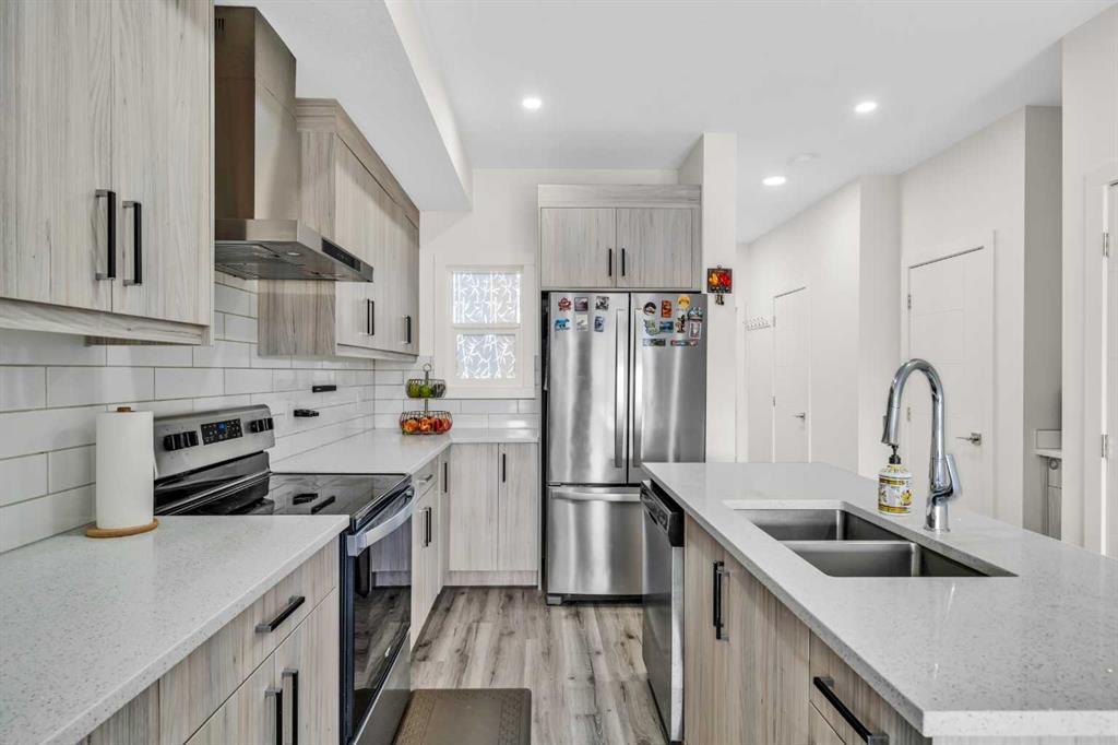 Welcome to this beautifully designed 2-storey townhome in the Saddleridge community—where comfort, style and location come together effortlessly. Thoughtfully laid out with fewer stairs leading to the upper level, this home offers both convenience and functionality for modern family living. Backing directly onto a picturesque green space, park and playground, this home provides year-round enjoyment—whether it’s sledding and snow fun in the winter or endless outdoor play in the summer months. It’s truly a setting that families will cherish. The main floor features a single attached garage along with a bright and inviting living room filled with natural sunlight throughout the day. The open-concept layout flows seamlessly into a spacious dining area and a modern kitchen complete with quartz countertops and stainless steel appliances. A convenient half bath completes this level. Upstairs, the primary bedroom offers a serene retreat with beautiful park views, abundant sunshine, a walk-in closet and a well-appointed 4-piece ensuite. Two additional generously sized bedrooms and a stylish 3-piece bathroom with upgraded tile work provide ample space for family or guests. The unfinished basement offers endless potential—ideal for storage, a future entertainment space, or development to accommodate extended family living. Perfectly located in a family-friendly neighborhood, this home is just steps from a playground and school and only minutes to the airport, shopping centers and everyday amenities. Enjoy the perfect balance of peaceful surroundings and urban convenience in one of Saddleridge’s best-located townhomes. Don’t miss this exceptional opportunity to own a home that truly has it all!