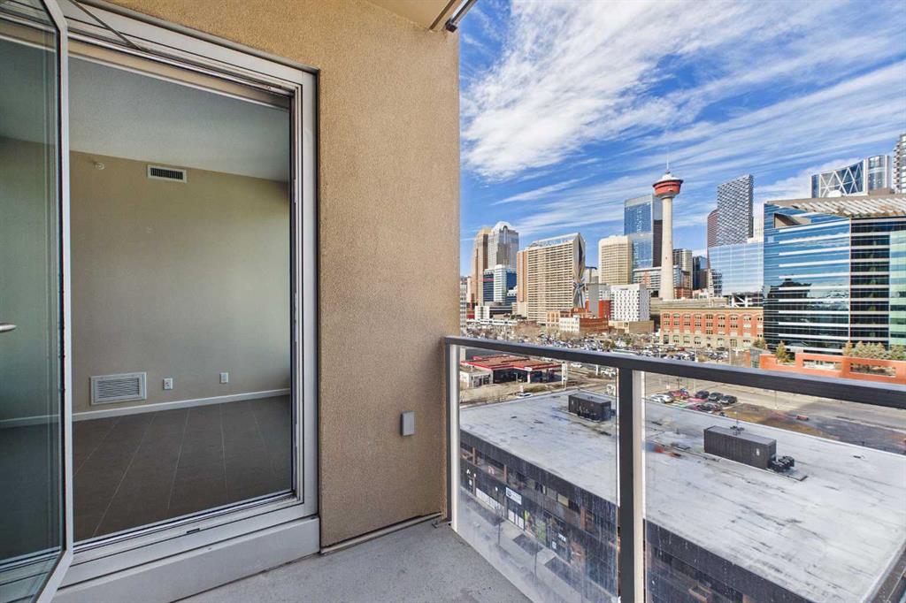 Welcome to Nuera—ideally located near shopping, dining, entertainment, and the vibrant boutiques and restaurants of Victoria Park. This contemporary residence features a spacious, open-concept floor plan, thoughtfully designed with modern finishes and a refined color palette throughout. The unit offers 9-foot ceilings, ceramic tile flooring, floor-to-ceiling windows, and central air conditioning. It includes two well-appointed bedrooms, an open kitchen, a formal dining area, and a convenient built-in desk—perfect for a home office. The bright and expansive living room features French doors leading to a private balcony. Additional highlights include a 3-piece main bathroom, a 4-piece ensuite, in-suite laundry, and a Titled heated underground parking stall. The primary bedroom is filled with natural light and showcases floor-to-ceiling windows, a walk-through closet, and a private 4-piece ensuite. Enjoy sweeping downtown views from this exceptional home. This well-maintained concrete building offers excellent security and concierge service, impressive fitness centre, a rooftop patio, and is ideally situated just steps from the Stampede Grounds, MNP Sports Centre, Sunterra Market, H-Mart, coffee shops, and the C-Train. A truly outstanding opportunity for refined urban living!