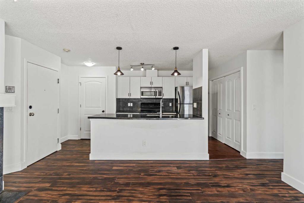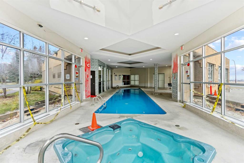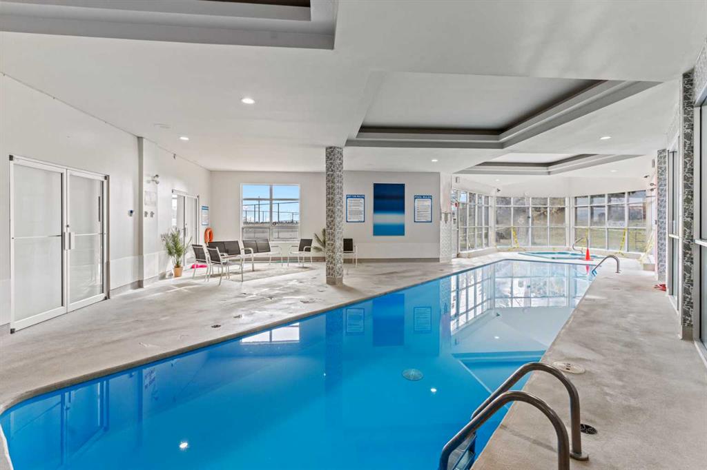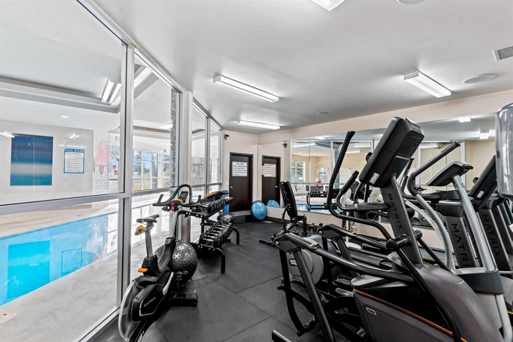 Resort-style living all year round awaits in this beautifully updated main-floor 2-bedroom, 2-bathroom condo with underground parking. This bright and spacious home features a modern open-concept layout with a stylish kitchen complete with granite countertops, tile backsplash, stainless steel appliances, and a large pantry—perfect for both everyday living and entertaining. The inviting living room offers generous space to relax, highlighted by a cozy wood-burning fireplace and easy access to your private patio, ideal for enjoying your morning coffee or unwinding outdoors. The large primary bedroom includes a spacious closet and a 3-piece ensuite, while the second bedroom and additional full bathroom provide flexibility for guests, family, or a home office. A versatile den/office or dining area, along with in-suite laundry, adds to the functionality of this well-designed floor plan. Residents enjoy exceptional amenities included in the condo fees, featuring a beautiful indoor pool, hot tub, fully equipped fitness room, and tennis courts, creating a true resort-style lifestyle right within the complex. Ideally located close to dog parks, scenic ridge pathways, shopping, and everyday amenities, with quick access to downtown, this home offers the perfect balance of convenience, comfort, and lifestyle.
