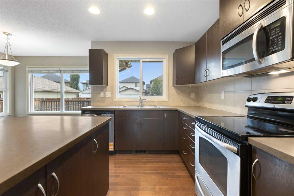 Great Family Home near parks and schools. 3-bedroom 2.5-bathroom 2 story. Covered front porch. Open concept main floor with dark maple HARDWOOD throughout. Stately FIREPLACE in the Livingroom. Kitchen has a sit up ISLAND with room for 3-4 stools and lots of prep space for the aspiring chef. Main floor also has a half bath. Access to the large back deck and a spacious back yard. The second floor has 3 bedrooms. The primary has a nice 4 piece ensuite bath and room for a king bed. The other 2 bedrooms have lots of space for the growing family. The basement is unfinished and has potential for 2 more bedrooms, rec room space and is roughed in for a full bathroom. There is a parking pad that is perfect for the potential new double garage. Some photos have been virtually staged to demonstrate the potential use of space.