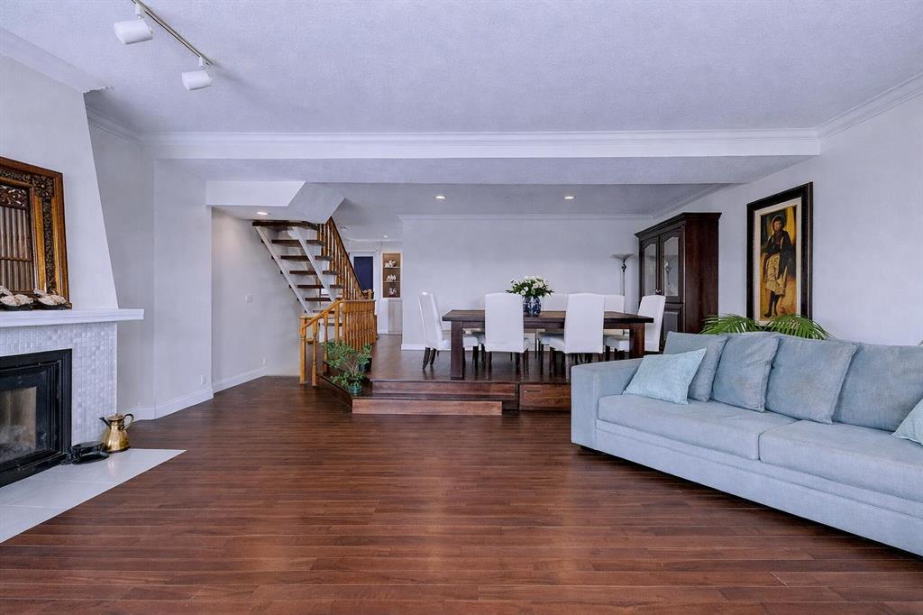 Proudly presenting this bright, beautifully renovated townhome in the highly sought-after community of Varsity Village, offering over 2,100 sq ft of developed living space designed for comfortable, connected living. Step inside to a sun-filled main floor featuring rich hardwood flooring, a spacious living room with 9 foot ceilings and a cozy wood-burning fireplace, and a wall of windows that flood the home with natural light while providing seamless access to your private deck—perfect for enjoying Calgary’s sunny days. The expansive dining area easily hosts large gatherings, while the thoughtfully updated kitchen showcases stainless steel appliances, ample storage, pantry space, and a charming dining nook for everyday living. Upstairs, retreat to the generous primary bedroom with a 4-piece ensuite and walk-in closet, complemented by a spacious second bedroom and a versatile bonus room ideal for a home office, family room, or flex space. The lower level sets this home apart with a rare and highly functional additional bedroom/office, - perfect for guests, a private workspace, or multigenerational living, along with a welcoming entryway, laundry, and access to the oversized attached garage. Extensive upgrades including hardwood flooring, triple pane windows, patio door, furnace, electrical panel, refinished deck, and a new garage door provide peace of mind and true turn-key convenience. Additional parking is available directly in front of the unit. Located in the well-managed, pet-friendly Landmark Estates III, residents enjoy access to scenic ponds, parks, and pathways, all just minutes from the University of Calgary, Market Mall, University District, Foothills and Alberta Children’s Hospitals, and excellent schools—offering an exceptional lifestyle in one of Calgary’s most established communities.