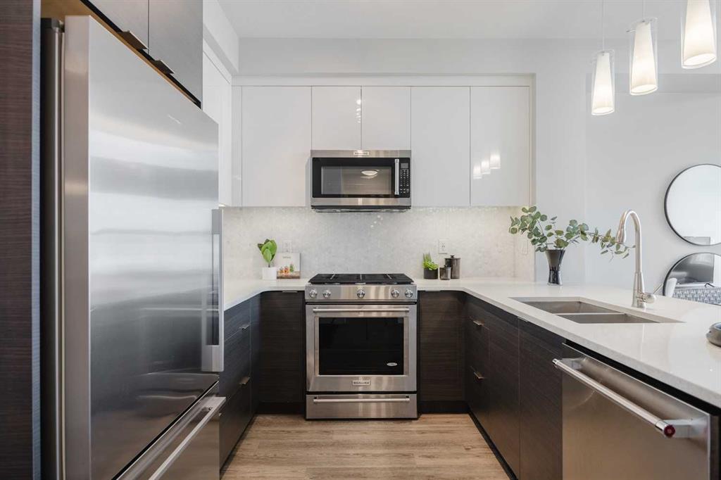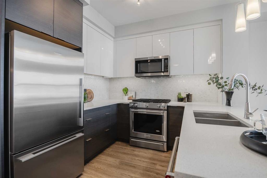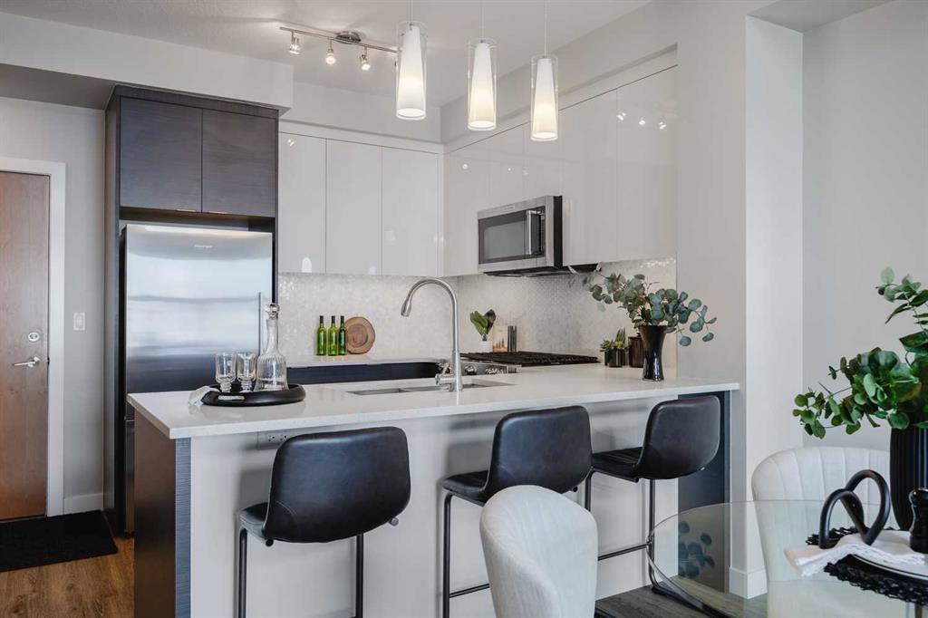 Live TOP FLOOR LUXURY in the heart of trend-setting Currie Barracks. This immaculate, open-concept 1 bedroom, 1 bathroom condo features soaring ceilings & oversized windows that only the rarely available top floor units provide. A contemporary color palette is accentuated by modern cabinetry, quartz counters & upgraded stainless steel appliances. Enjoyment also comes from the west facing balcony with BBQ gas line, in-suite laundry, heated underground parking for you AND your Guests, a private storage unit, secured bike storage, and the convenient on-site car wash. Live steps from trendy pubs, parks, and Mount Royal University, with only a 5 minute drive to Downtown. Don't miss your chance to live a life elevated to the top floor!