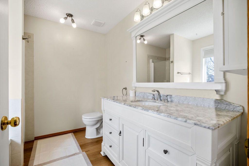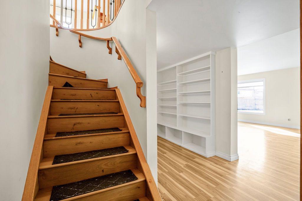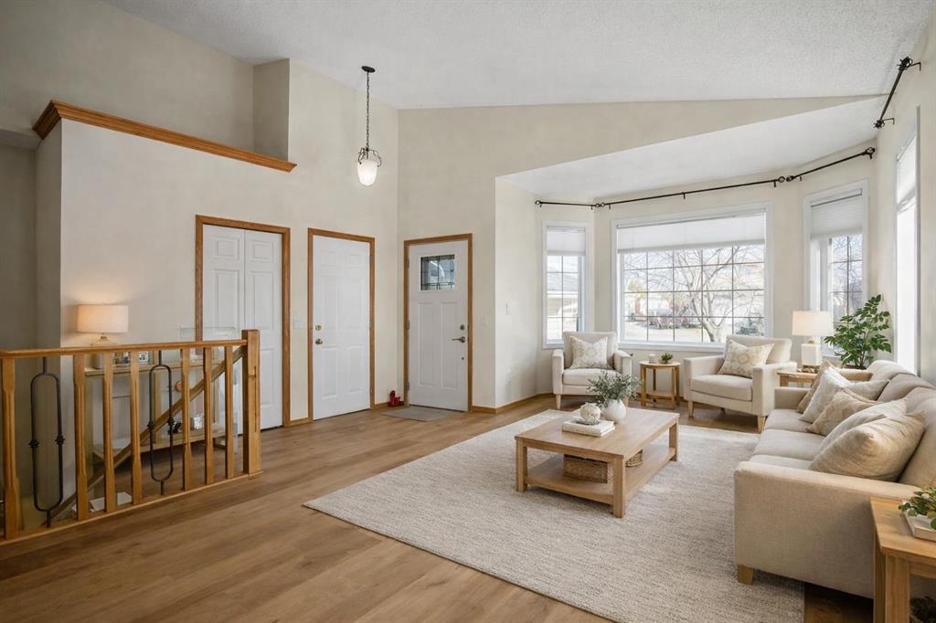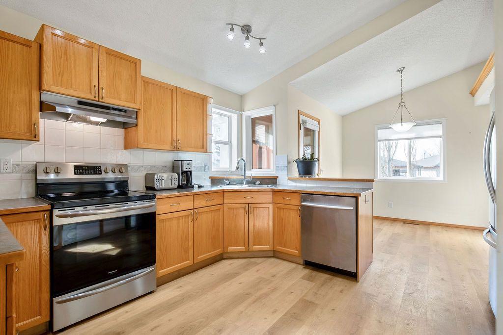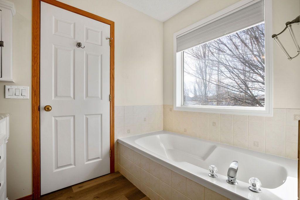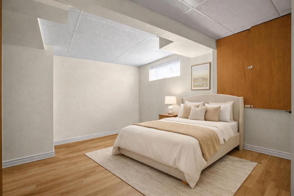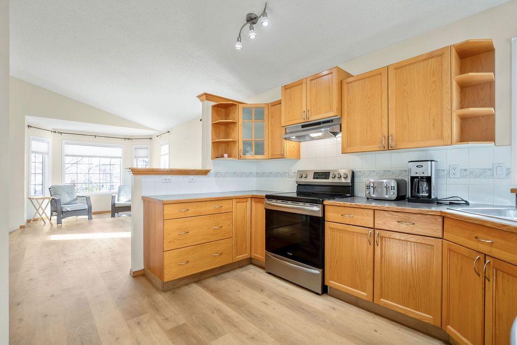 Extremely well cared for 1206 sq/ft bungalow with WALKOUT basement on a massive beautifully landscaped lot in the corner of a cul de sac. Upon entry you notice the vaulted ceiling that stretches from the front living room all the way to the back of the dining room. The kitchen offers generous counter space and cabinets for dinner prep. An enclosed deck off of the dining area has been fully permitted and inspected. The master retreat is large with vaulted ceiling and has a walk-in closet, 4pc ensuite bath including a soaker tub and stand alone shower. There are 2 more bedrooms and a second full 4pc main bathroom on the main floor. The spiral staircase leads to the basement where you are welcomed by a spacious family room with large windows and a door to the enclosed sunroom and backyard. The well appointed backyard space has stone patio and an outdoor fireplace surrounded by mature trees and shrubs. There are 2 garden sheds for storing all of your seasonal supplies. The basement also offers 2 more guest bedrooms where one has a cheater door to a 3rd full 4pc bathroom. Laundry is located in the mechanical room in the basement. There is room on the west side of the home to store a modest sized holiday trailer. This property will appease to a vast array of buyers. View this one today and make it Your Home, Your Castle!