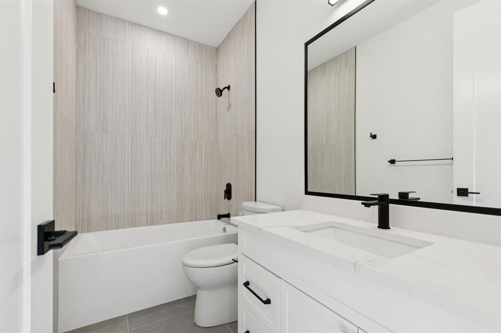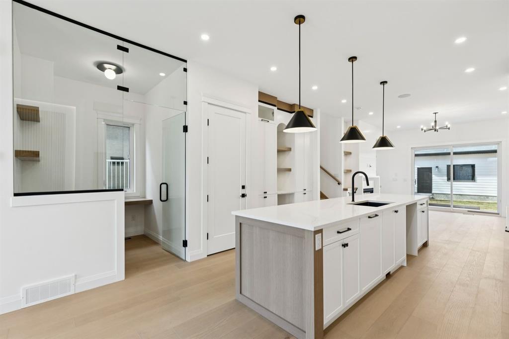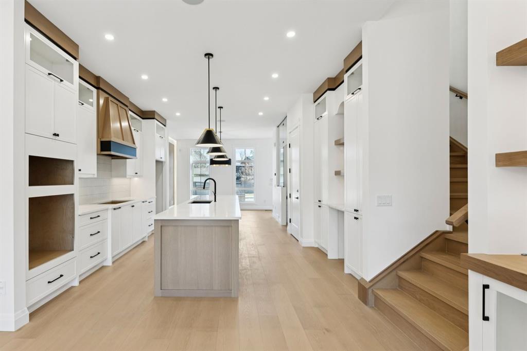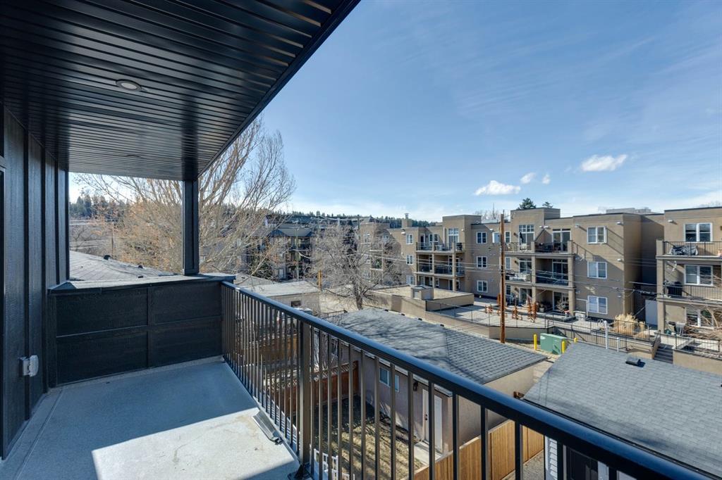 Situated just steps from the Bow River in the highly sought after community of Parkdale, this sophisticated modern residence offers over 3,600 sq ft of beautifully curated living space, blending elevated design with exceptional functionality. The bright, open concept main floor welcomes you with a spacious entry and a stunning front dining area, highlighted by an illuminated feature wall that adds warmth and architectural interest. A glass enclosed office provides a perfect work-from-home setting, while the heart of the home, an exquisite designer kitchen, impresses with an expansive 10’ quartz waterfall island, built-in wall oven and microwave, gas cooktop, and sleek cabinetry. Striking glass panelled black fronts anchor the cooking space, complemented by crisp white shaker cabinetry for a refined modern aesthetic. A thoughtfully designed pantry with bar area and beverage fridge enhances both form and function. At the rear, the airy living room with a contemporary gas fireplace opens effortlessly to the west facing backyard and low maintenance deck through sliding glass doors. The second floor offers three generous bedrooms, each with its own walk-in closet, a full bathroom, and a well appointed laundry room with sink. The primary sanctuary features floor-to-ceiling windows, a striking feature wall, and a custom walk-in closet. The luxurious 6pc ensuite boasts heated floors, a steam shower, and a deep soaker tub for a luxurious escape. The third floor loft is exceptional offering incredible versatility and elevated living. Enjoy a built-in desk area, convenient coffee bar, and a front balcony with downtown views. This level also hosts a second primary suite, complete with a private rear balcony, walk-in closet, and a lavish 6pc ensuite with heated floors, a deep soaker tub, and an oversized glass shower. The fully developed basement features a separate entrance leading to a legal suite. This thoughtfully designed space includes two spacious bedrooms, a 4pc bathroom, its own laundry, and a stylish kitchen with warm wood cabinetry, eat-up island, and full appliance package. The inviting living room is anchored by a modern media wall, while access to the utility room reveals a tankless hot water system. Outside, the landscaped yard offers ample green space for kids and pets, and leads to a double detached garage. Additional upgrades include rough-ins for security, AC, and central vacuum, along with exposed aggregate steps and walkways. Ideally located, you’re just steps to Foothills Medical Centre, and only minutes from Alberta Children's Hospital and the vibrant University District, offering an incredible mix of dining, shopping, and everyday amenities. Surrounded by parks, pathways, cafés, and the natural beauty of the Bow River, this exceptional home delivers the perfect balance of luxury, comfort, and convenience.