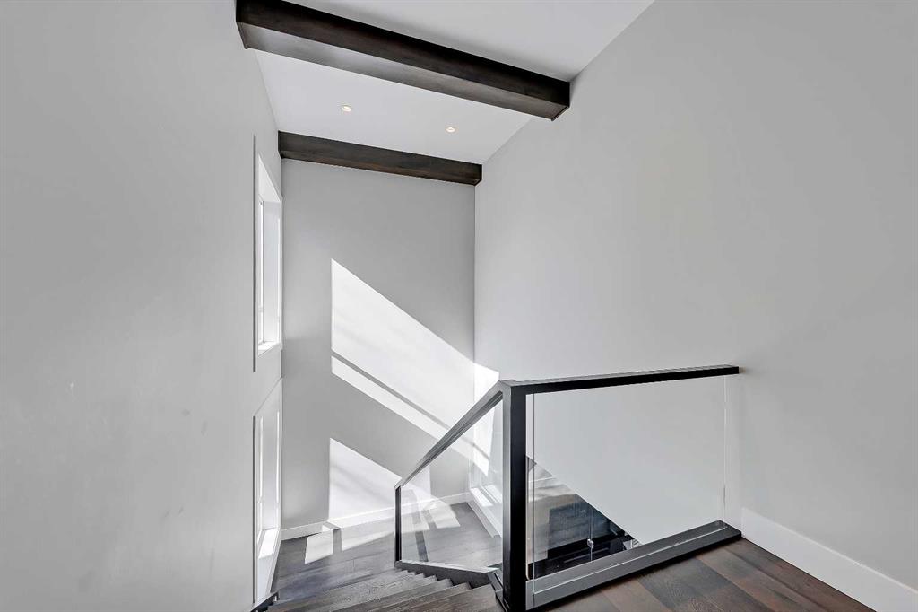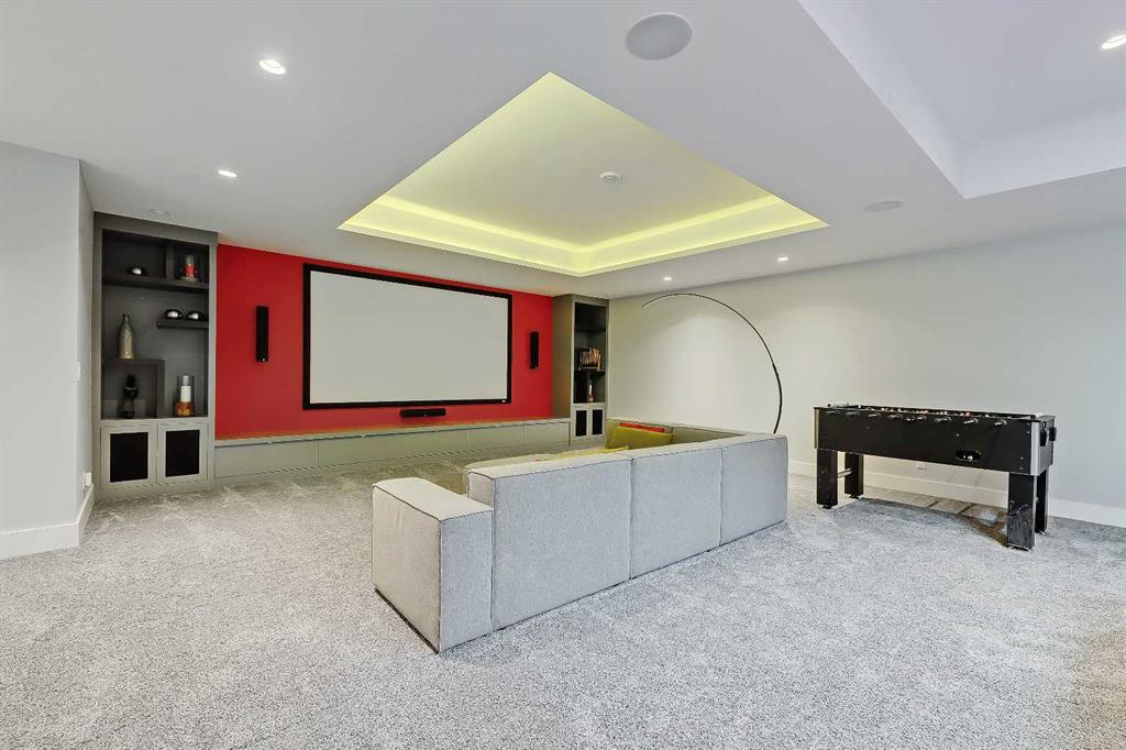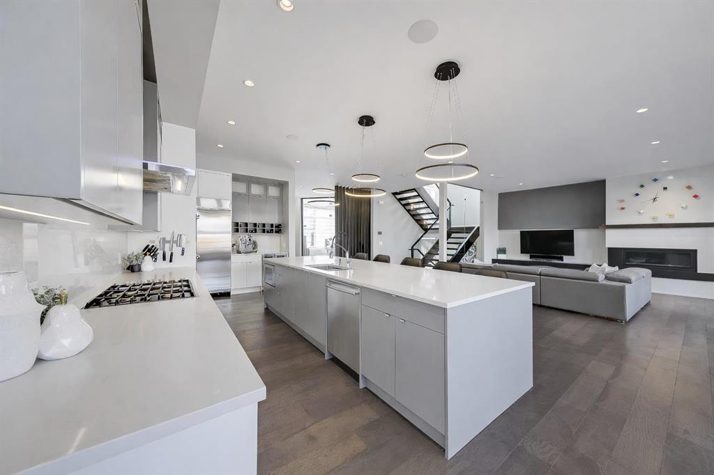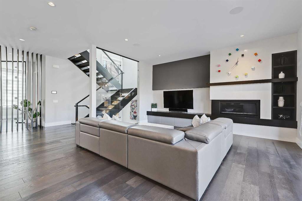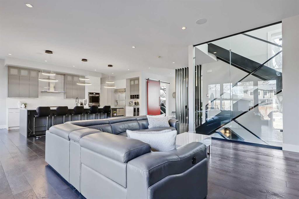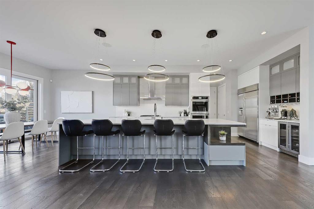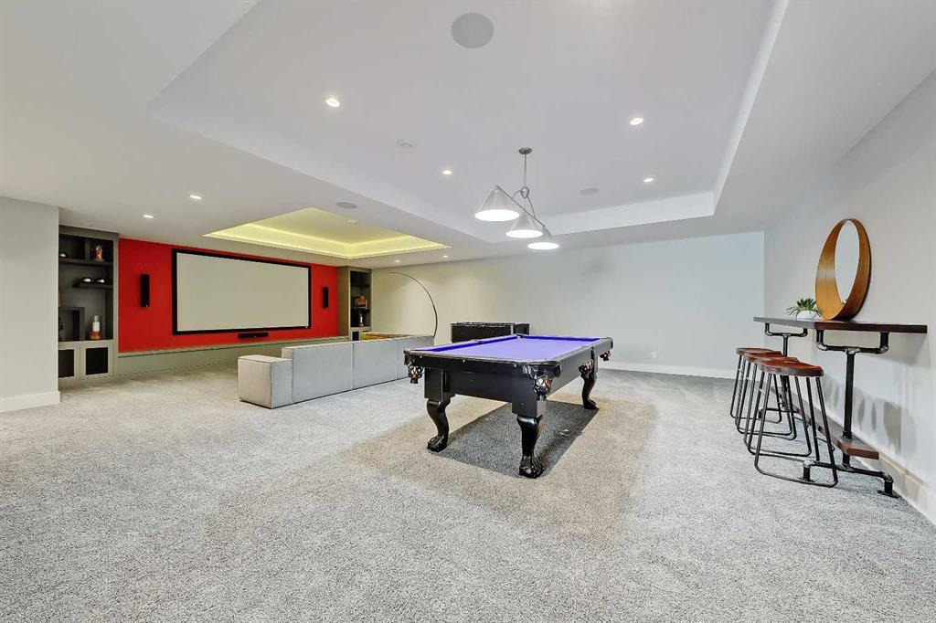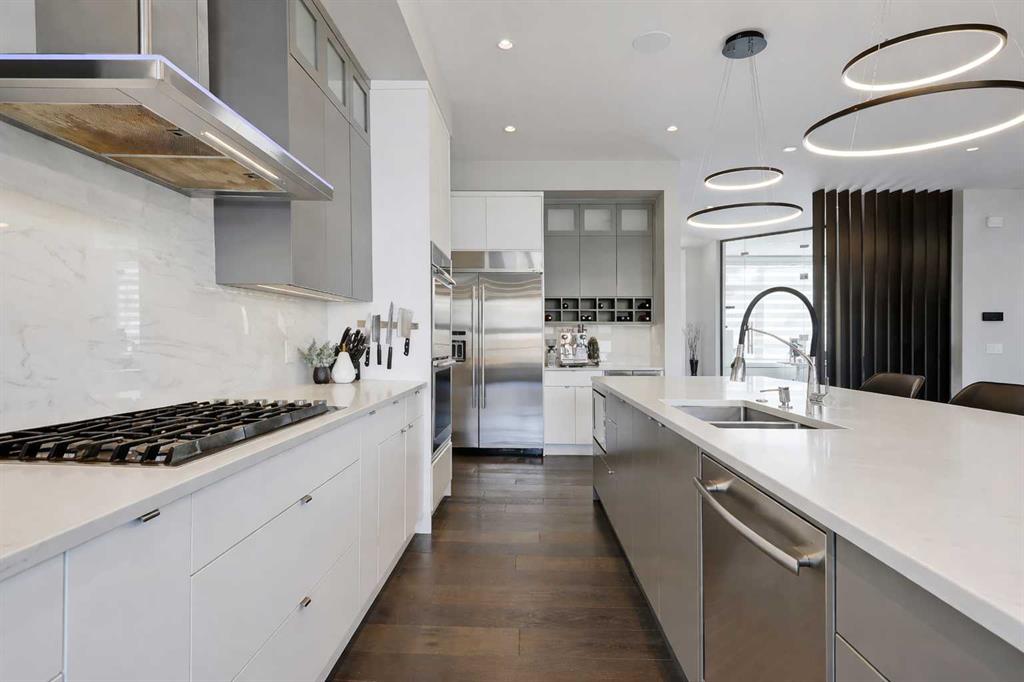 Experience elevated living in this exceptional custom-built luxury home in North Glenmore Park, offering over 3,400 sq ft, 6 bedrooms, and 4.5 bathrooms. Designed with a seamless blend of modern architecture, high-end finishes, and everyday functionality. As you enter, you're greeted by a spacious foyer that flows effortlessly into a stunning open-concept main floor, defined by soaring ceilings, expansive windows, and abundant natural light. At the heart of the home is a chef-inspired kitchen featuring custom cabinetry, premium Jenn-Air appliances, quartz countertops, and an oversized island—perfect for both everyday living and sophisticated entertaining. The adjoining dining area and elegant living room, anchored by a sleek linear fireplace, create a warm yet refined atmosphere. Designed for today’s lifestyle, the main floor also offers a glass-enclosed office and an additional private den with built-in millwork, giving you a dedicated space to work or play room that doesn't take up the whole house. A well-appointed mudroom with 5 custom lockers provides exceptional storage and direct access to the heated oversized double garage. Upstairs, the primary suite is an absolute dream. The walk-in closet is spacious, and the ensuite feels like a spa, with dual showerheads (including a rain shower and spray nozzle), a steam shower, and in-floor heating. It’s pure luxury. The other THREE beds are generously sized, with one enjoying a private 3-pc ensuite and the other two sharing a lovely 5-pc Jack-and-Jill ensuite with a skylight. The fully developed lower level is designed for entertainment & wellness. The media room is set up for movie nights or big game days with a 120” projector screen and built-in surround sound for an immersive experience. There's also a gym OR 6th bed, a games area with pool table, a wet bar, in floor heating, and the integrated whole-home audio enhances both indoor and outdoor experiences. Step outside to your private outdoor oasis, complete with a covered deck with built-in heater, outdoor speakers, built-in BBQ station, irrigation system, and ambient gemstone lighting—perfect for year-round entertaining. The oversized double garage (27 Wx 23 D) with a heater provides more than enough space for your cars, plus extra storage. The home also has all the smart tech you could want plus multi-zone air conditioning, a VacuFlow system on all three floors, and motion-sensor lighting. Ideally located just minutes from the vibrant shops and dining of Marda Loop, Glenmore Reservoir's scenic walking & cycling paths, top-rated schools including Altadore School (K-6), private specialized learning at Rundle Academy and Master's Academy & College, along with nearby options like Lycée international de Calgary and Central Memorial. This home offers the perfect balance of luxury, lifestyle, and location. A rare opportunity to own a turnkey luxury residence in North Glenmore Park—where sophisticated design meets everyday living.