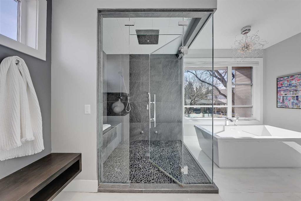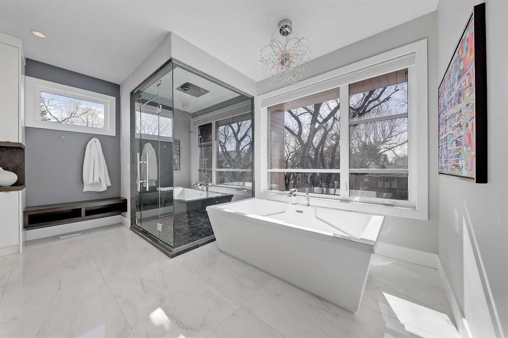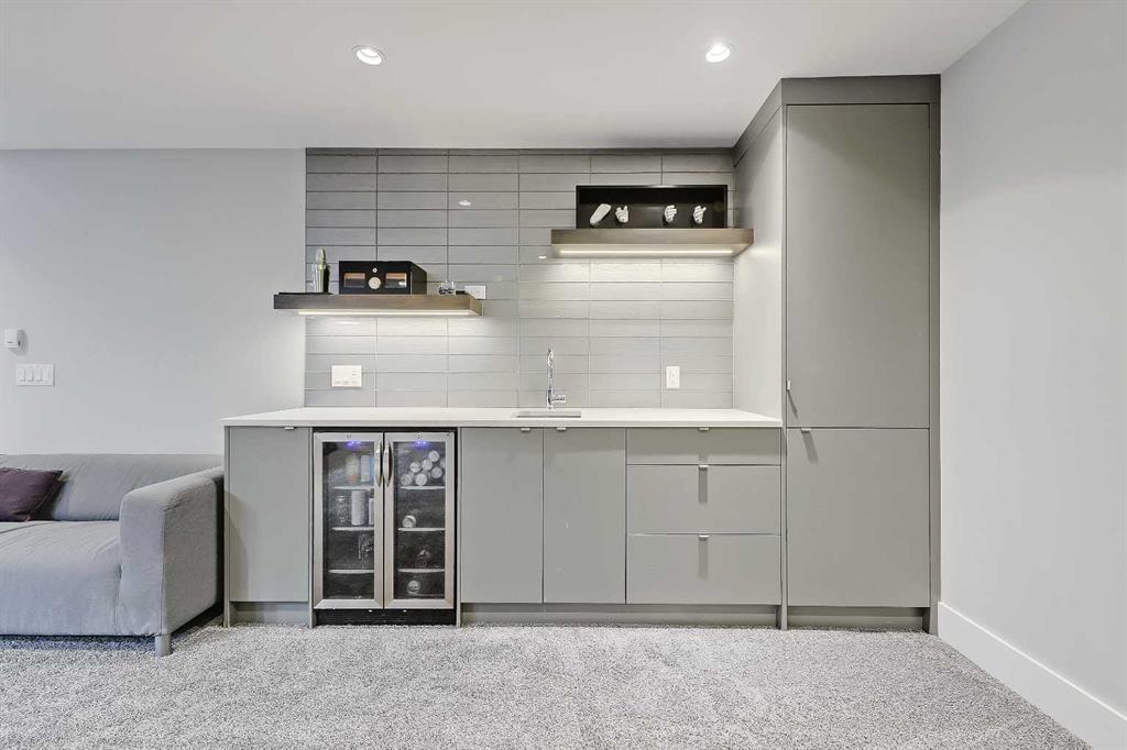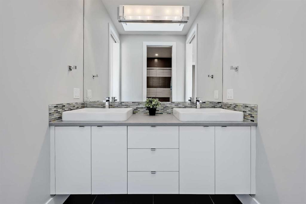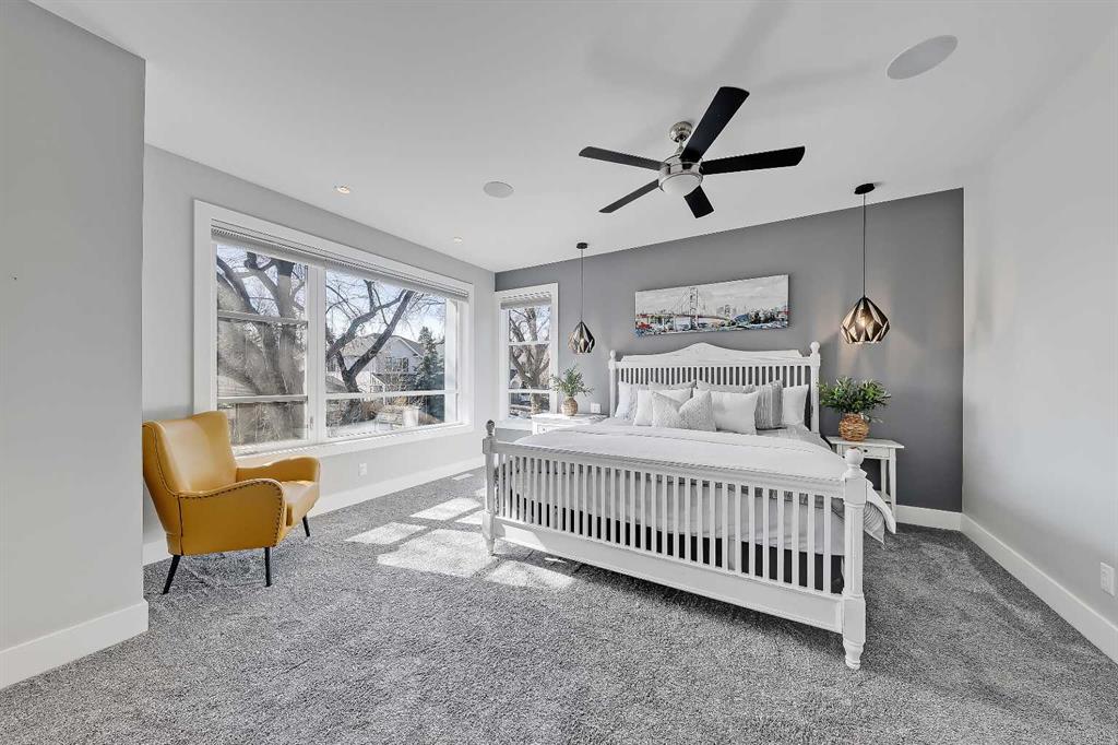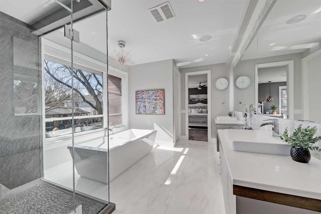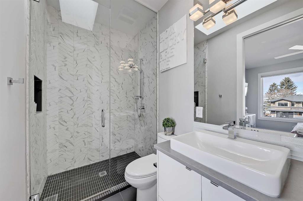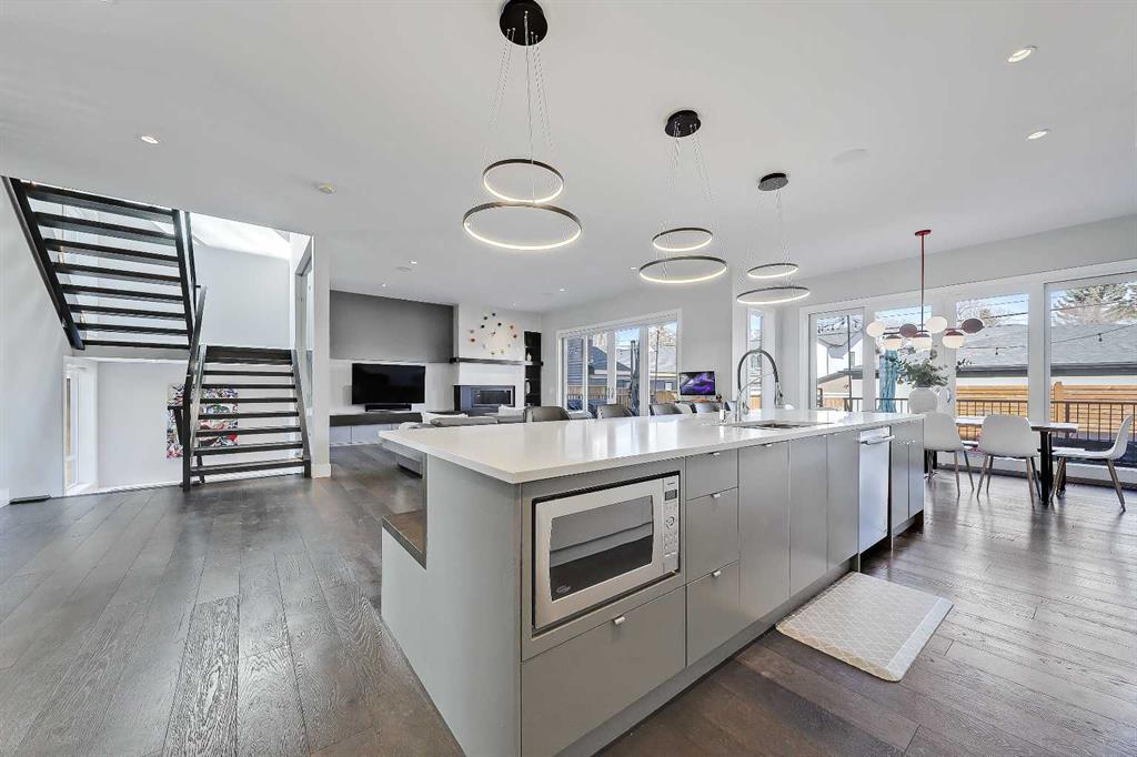 Experience elevated living in this exceptional custom-built luxury home in North Glenmore Park, offering over 3,400 sq ft, 6 bedrooms, and 4.5 bathrooms. Designed with a seamless blend of modern architecture, high-end finishes, and everyday functionality. As you enter, you're greeted by a spacious foyer that flows effortlessly into a stunning open-concept main floor, defined by soaring ceilings, expansive windows, and abundant natural light. At the heart of the home is a chef-inspired kitchen featuring custom cabinetry, premium Jenn-Air appliances, quartz countertops, and an oversized island—perfect for both everyday living and sophisticated entertaining. The adjoining dining area and elegant living room, anchored by a sleek linear fireplace, create a warm yet refined atmosphere. Designed for today’s lifestyle, the main floor also offers a glass-enclosed office and an additional private den with built-in millwork, giving you a dedicated space to work or play room that doesn't take up the whole house. A well-appointed mudroom with 5 custom lockers provides exceptional storage and direct access to the heated oversized double garage. Upstairs, the primary suite is an absolute dream. The walk-in closet is spacious, and the ensuite feels like a spa, with dual showerheads (including a rain shower and spray nozzle), a steam shower, and in-floor heating. It’s pure luxury. The other THREE beds are generously sized, with one enjoying a private 3-pc ensuite and the other two sharing a lovely 5-pc Jack-and-Jill ensuite with a skylight. The fully developed lower level is designed for entertainment & wellness. The media room is set up for movie nights or big game days with a 120” projector screen and built-in surround sound for an immersive experience. There's also a gym OR 6th bed, a games area with pool table, a wet bar, in floor heating, and the integrated whole-home audio enhances both indoor and outdoor experiences. Step outside to your private outdoor oasis, complete with a covered deck with built-in heater, outdoor speakers, built-in BBQ station, irrigation system, and ambient gemstone lighting—perfect for year-round entertaining. The oversized double garage (27 Wx 23 D) with a heater provides more than enough space for your cars, plus extra storage. The home also has all the smart tech you could want plus multi-zone air conditioning, a VacuFlow system on all three floors, and motion-sensor lighting. Ideally located just minutes from the vibrant shops and dining of Marda Loop, Glenmore Reservoir's scenic walking & cycling paths, top-rated schools including Altadore School (K-6), private specialized learning at Rundle Academy and Master's Academy & College, along with nearby options like Lycée international de Calgary and Central Memorial. This home offers the perfect balance of luxury, lifestyle, and location. A rare opportunity to own a turnkey luxury residence in North Glenmore Park—where sophisticated design meets everyday living.