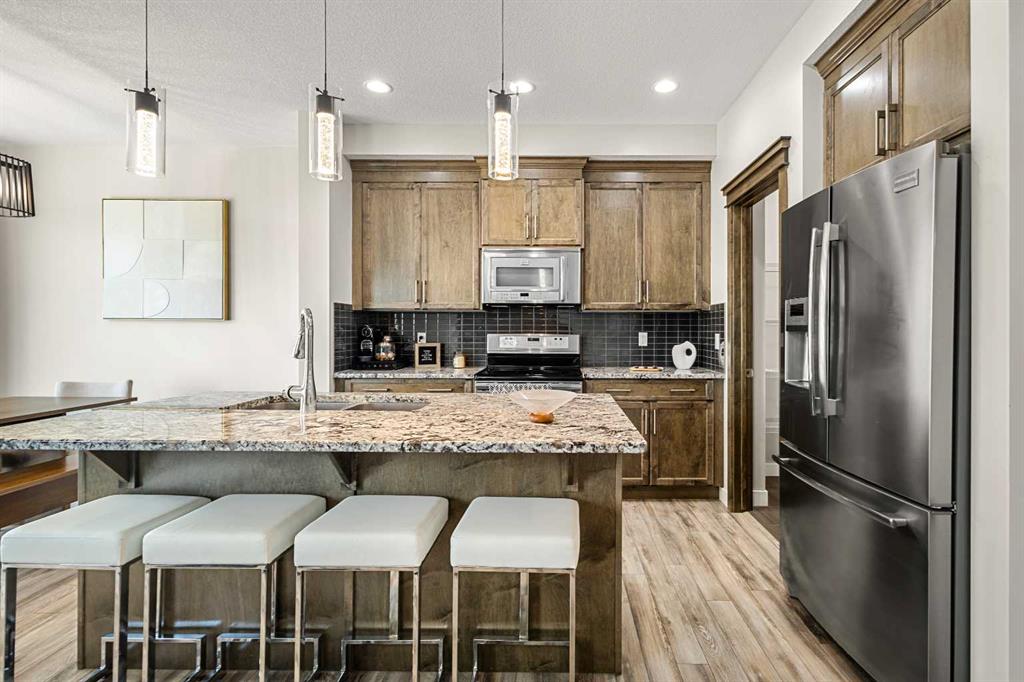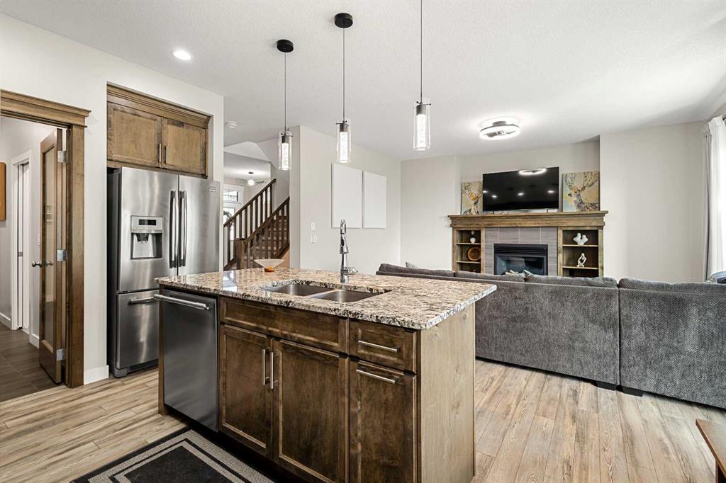 Welcome to this beautifully upgraded, fully finished 4-bedroom semi-detached home, perfectly positioned on a quiet street in the sought-after community of Evanston. Situated on a massive corner lot and backing onto a school playground and open greenspace, this rare setting offers exceptional privacy, open views, and an abundance of outdoor space—perfect for families and everyday living. This home stands out with 9-foot ceilings on all three levels, creating an elevated sense of space and light throughout. The main floor showcases a bright and inviting open-concept design, centered around a cozy fireplace that anchors the living area. Expansive windows flood the home with natural sunlight, while beautiful crown moulding throughout adds a refined, upscale touch. The kitchen is thoughtfully designed with granite countertops, upgraded stainless steel appliances, modern cabinetry, and a central island—ideal for both entertaining and daily living. Upstairs, you’ll find three well-appointed bedrooms along with a spacious bonus room—perfect as a secondary living area, home office, or kids’ retreat. The primary suite offers a true escape, featuring a generous walk-in closet and a spa-inspired ensuite complete with dual vanities and heated flooring. The fully finished basement extends your living space with an additional bedroom, a full bathroom with heated floors, and a large recreation area—perfect for movie nights, hosting guests, or creating your own personal retreat. A separate entrance adds flexibility and future potential. Step outside to enjoy the beautifully landscaped yard, enhanced by the oversized corner lot offering plenty of space for kids to play, family gatherings, or simply relaxing outdoors. Backing directly onto a school playground and open field, this setting provides a rare combination of space, sunlight, and privacy with no rear neighbours. Located just steps from walking paths, transit, schools, and everyday amenities, this home combines comfort, functionality, and an unbeatable location. A rare opportunity to own a move-in-ready home with standout features and an exceptional lot in one of NW Calgary’s most family-friendly communities.