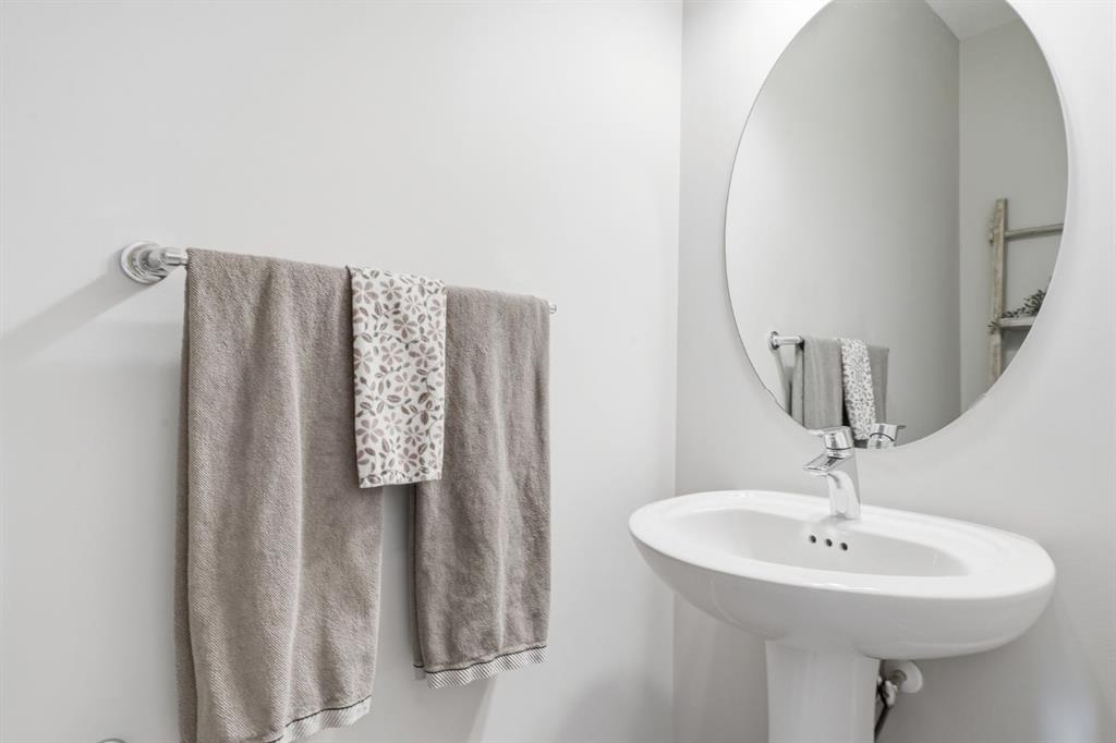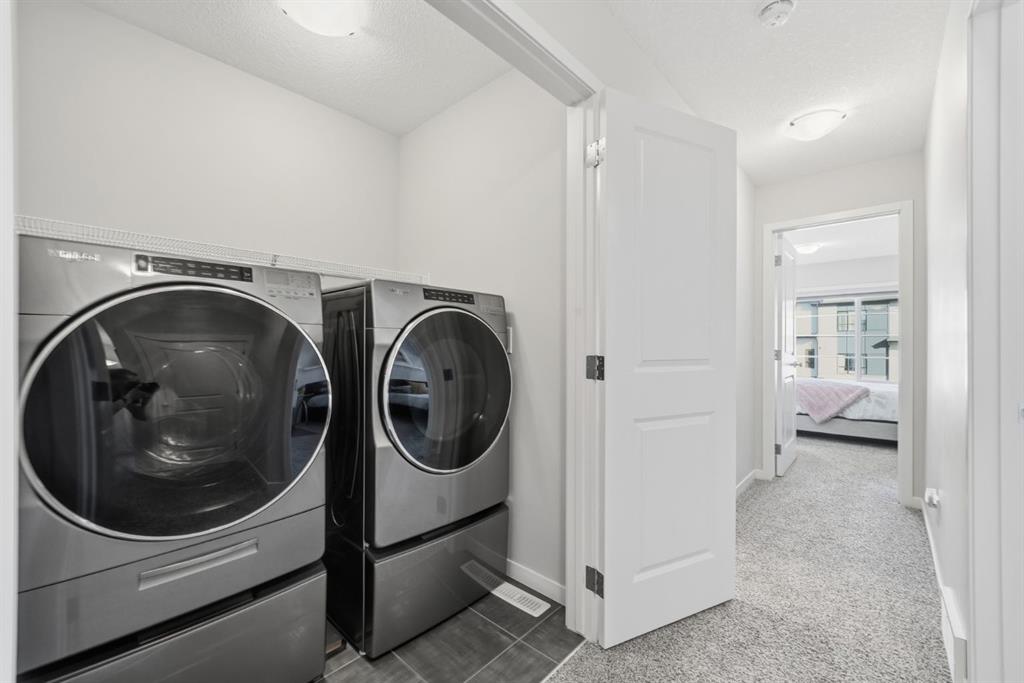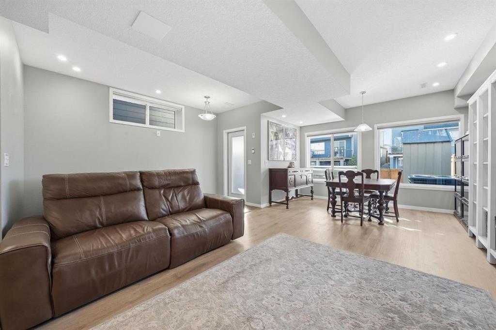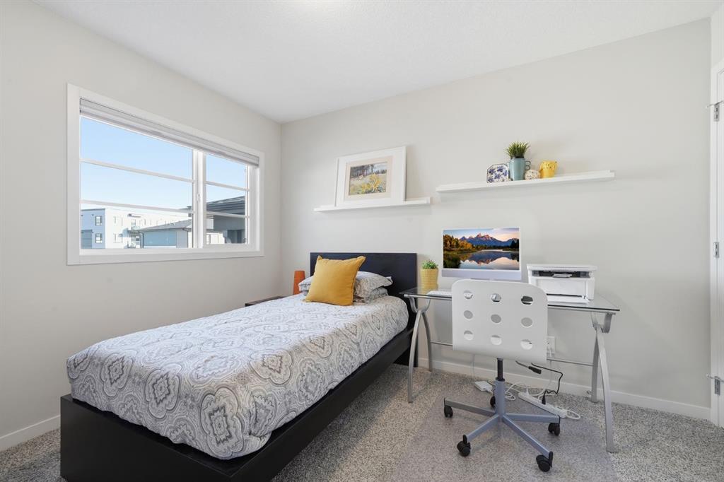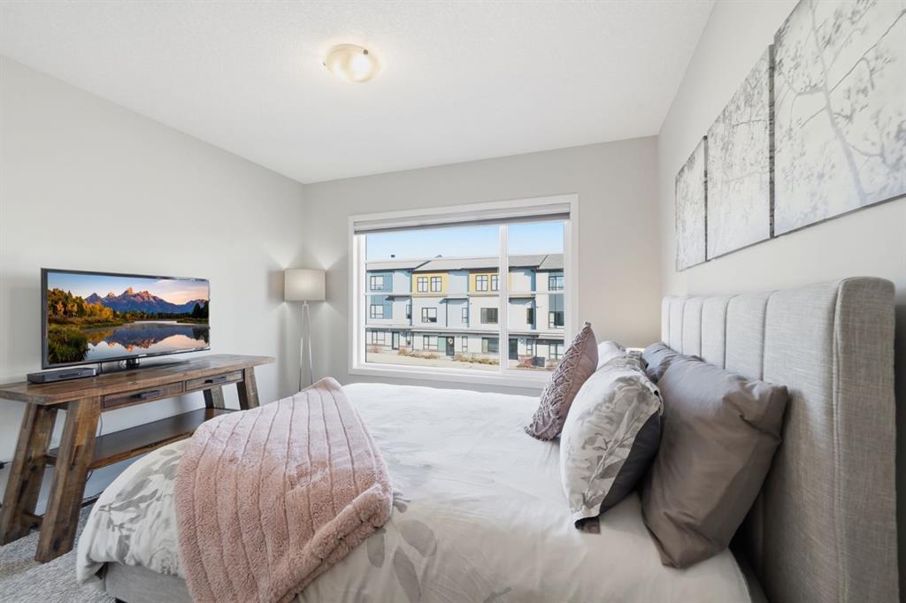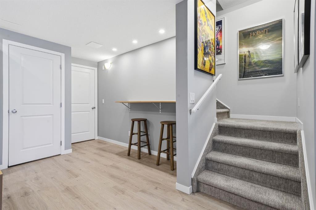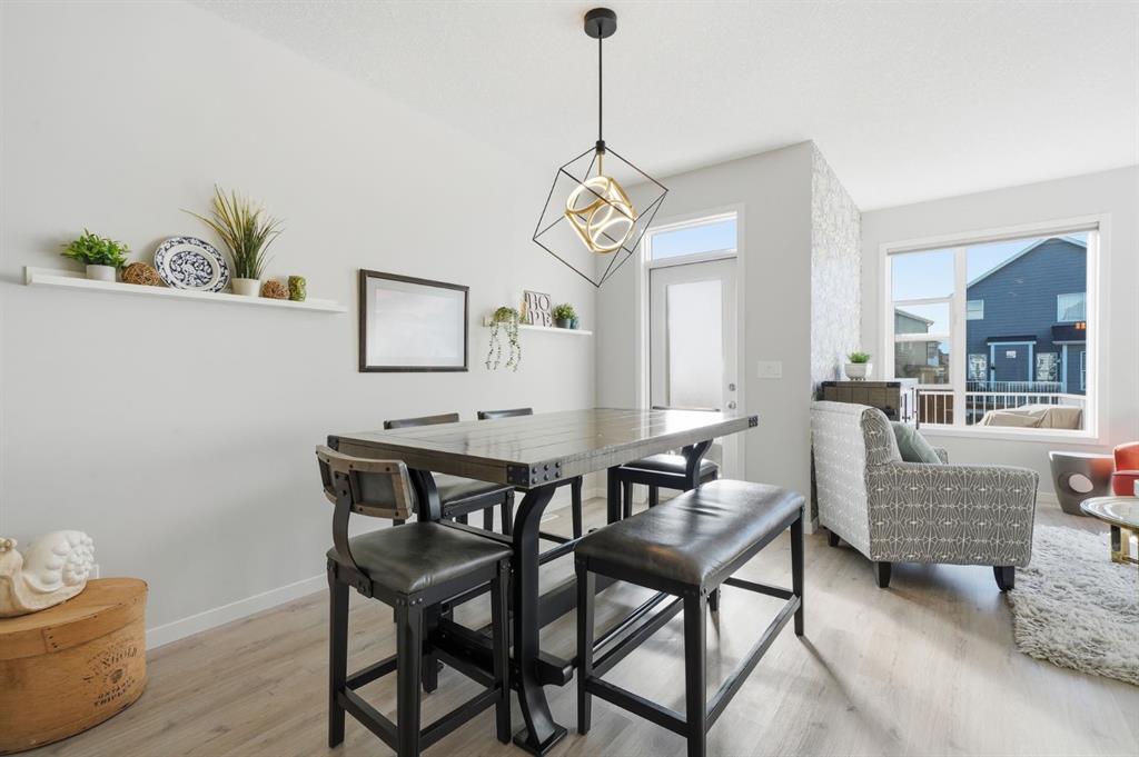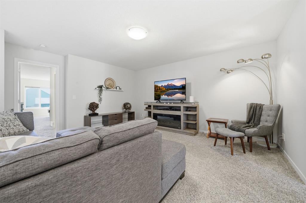 Built by Trico, this meticulously maintained two storey offers a rare combination of thoughtful design and exceptional storage throughout, creating a highly functional home from top to bottom. With a fully developed walkout basement and west facing backyard, this property is both practical and refined. The exterior showcases Hardie board siding and stonework, delivering strong curb appeal with lasting quality. Inside, laminate flooring extends through the main level and basement, complemented by upgraded lighting and window coverings throughout. The open concept main floor is anchored by a clean, modern white kitchen featuring granite countertops, subway tile backsplash, stainless steel appliances, range hood fan, a large island with seating, and extensive cabinetry along with a walk through pantry that enhances both storage and everyday convenience. The dining area opens onto an upgraded 12x12 patio, with a covered space below off the walkout level for additional outdoor living. The living room is bright and comfortable with west exposure and electric blinds, while the front attached single garage has been configured to maximize storage. A powder room completes the main floor. Upstairs, the primary suite offers a well organized walk in closet and a spacious five piece ensuite. A central bonus room provides separation and flexibility, with two additional bedrooms and a four piece bathroom located at the opposite end. Upper level laundry adds to the home’s efficiency. The fully developed walkout basement extends the living space with a three piece bathroom featuring in floor heating, along with enhanced soundproofing in both the ceiling and flooring, ideal for media, guests, or a quiet retreat or “Man Cave”. The west facing backyard is designed for low maintenance and year round enjoyment, complete with a covered patio, storage shed, and optional hot tub. Central air conditioning ensures comfort through the summer months. Well located in Cranston, close to pathways, parks, and everyday amenities.