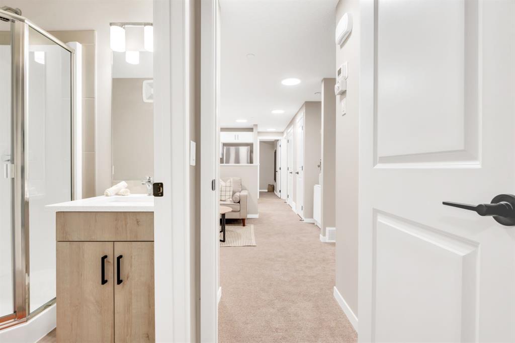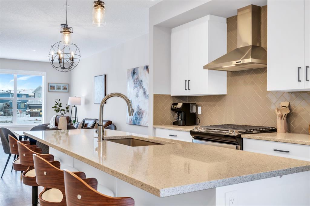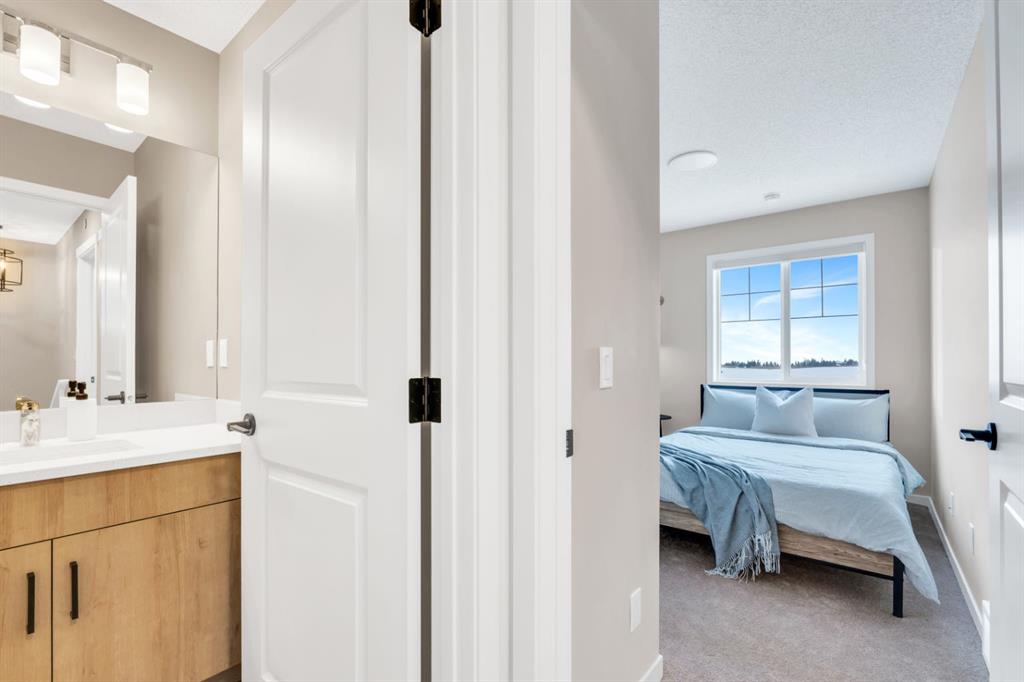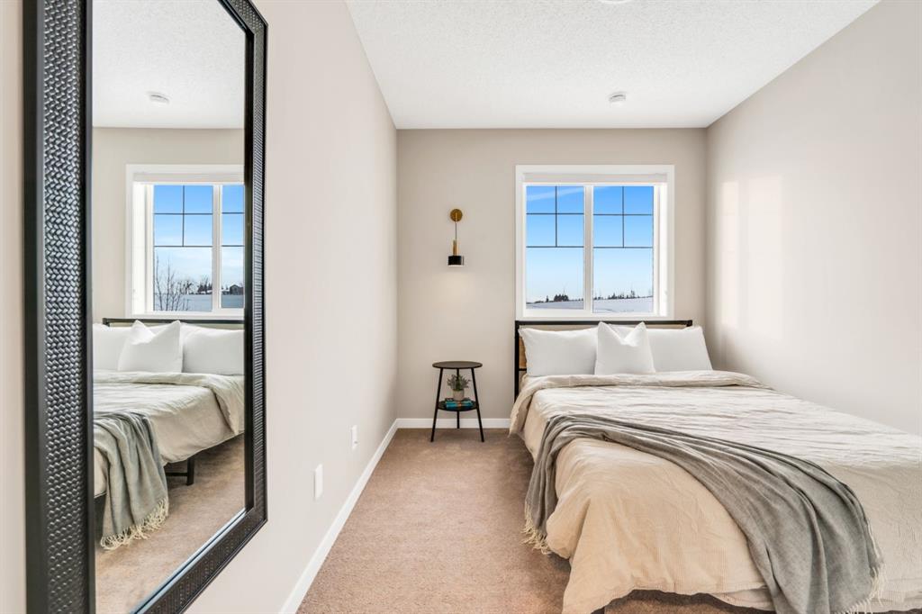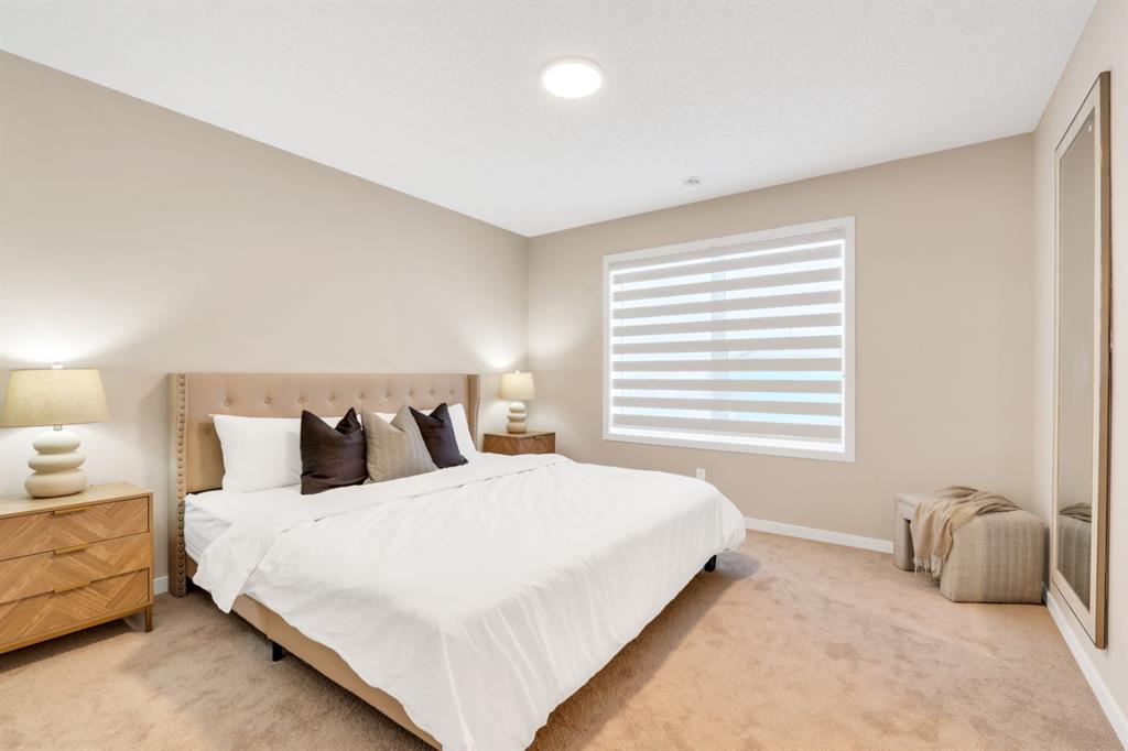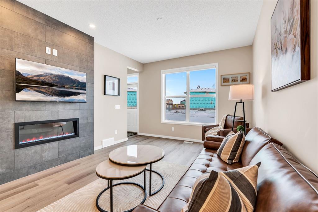 Welcome to this one-of-a-kind duplex located in the vibrant community of Hotchkiss in SE Calgary, offering an exceptional blend of luxury living, thoughtful design, and income potential. This beautifully upgraded home features a total of 5 bedrooms and 5 full bathrooms with a home office including a fully legal 2-bedroom basement suite—perfect for extended family or generating rental income. The main level showcases a bright open-concept layout with soaring high ceilings, creating an inviting and spacious atmosphere throughout. The large upgraded kitchen is truly a chef’s dream, complete with stainless steel appliances, a gas stove, chimney hood, built-in microwave, full-height cabinetry, and ample storage, while sleek quartz countertops add a modern touch to both the kitchen and bathrooms. Upstairs, you’ll find quality carpeting, a well-lit staircase with a generously sized window bringing in natural light, and a stunning primary bedroom featuring a large walk-in closet and a luxurious 4-piece ensuite with double vanities—it truly feels like a space found in a much larger home. With over $100,000 in high-end upgrades, along with features like a gas line for BBQ and a functional laundry area with sink, every detail has been carefully designed for comfort and convenience. Situated in Hotchkiss, one of southeast Calgary’s newest master-planned communities, this home is surrounded by wide-open prairie and mountain views, with quick access to Stoney Trail and Highway 22X for effortless commuting and just minutes from Mahogany and Seton for shopping, dining, and access to the South Health Campus. The community is centered around a stunning 30-acre natural wetland with boardwalks and pathways, part of an expansive green space network planned to include over 50 acres of parks and trails—perfect for outdoor enthusiasts. With future amenities including a K-9 school, neighbourhood retail, and family-friendly parks, Hotchkiss offers the perfect balance of nature, connectivity, and modern community living—making this property a rare opportunity to own a truly exceptional home. Builder Floorplan provided. Measurements are not in accordance with RMS . RMS Measurements will be uploaded once available.