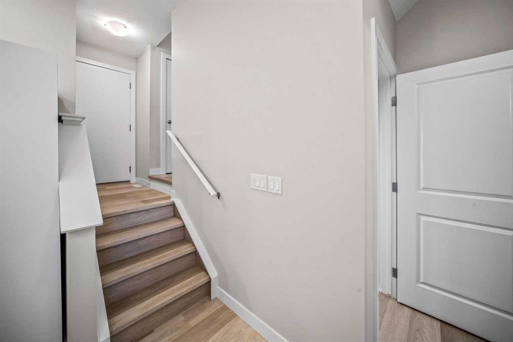 Discover elevated living in the prestigious & established community of Crestmont. Perfectly positioned in the heart of the complex, your private retreat overlooks a tranquil garden courtyard—the ideal backdrop for a morning coffee on the bench. This exceptional two-storey townhome perfectly blends a low-maintenance lifestyle with 10-foot ceilings and larger windows. Boasting 4 spacious bedrooms and 3.5 bathrooms, this home is thoughtfully designed with a fully finished basement and the comfort of A/C. Complete with a finished double attached garage, it offers the space of a detached house with the ease of condo living . Boasting 2,023 sq. ft. of thoughtfully designed living space, this beauty welcomes you with an inviting foyer, and an open-concept main floor that is ideal for both entertaining and everyday living, seamlessly connecting the living and dining areas to create a warm and functional gathering space. The well-appointed kitchen showcases a large quartz island and countertops, soft-close cabinetry with abundant storage, a built-in microwave, Bosch dishwasher, fridge with waterline and an electric stove (there is a gas line for a future upgrade to gas stove)—perfect for both casual meals and hosting guests. A gas line for BBQ is also located just outside the front door. A conveniently located half bath and direct access to the double attached garage along with a utility closet and shoe closet complete the main level. Upstairs, a bright and versatile nook for a home office or sitting area complements the wide hallways. The spacious primary bedroom comfortably accommodates a king-sized bed and features a private covered balcony with mountain views, a walk-in closet, and a 4 piece ensuite with dual quartz vanities. This level also includes a dedicated laundry room, a full 4-piece bathroom, and two additional bedrooms, each offering walk-in closets and large windows that fill the space with natural light. The fully developed lower level is ideal for a growing family or accommodating guests, offering a large recreation area with ample storage, a spacious fourth bedroom with built-in features in the walk-in closet, and a 4-piece bathroom with in-floor heating. Residents of Crestmont enjoy convenient access to an array of amenities, including nearby shopping at the Calgary Farmers' Market West, Calgary Climbing Centre, COP, Valley Ridge Golf course, outdoor recreation along the Bow River pathways, and proximity to destinations such as Canmore and Banff. The community itself offers a variety of exclusive amenities, including parks, playgrounds, walking and biking paths, a spray park, and Crestmont Hall.