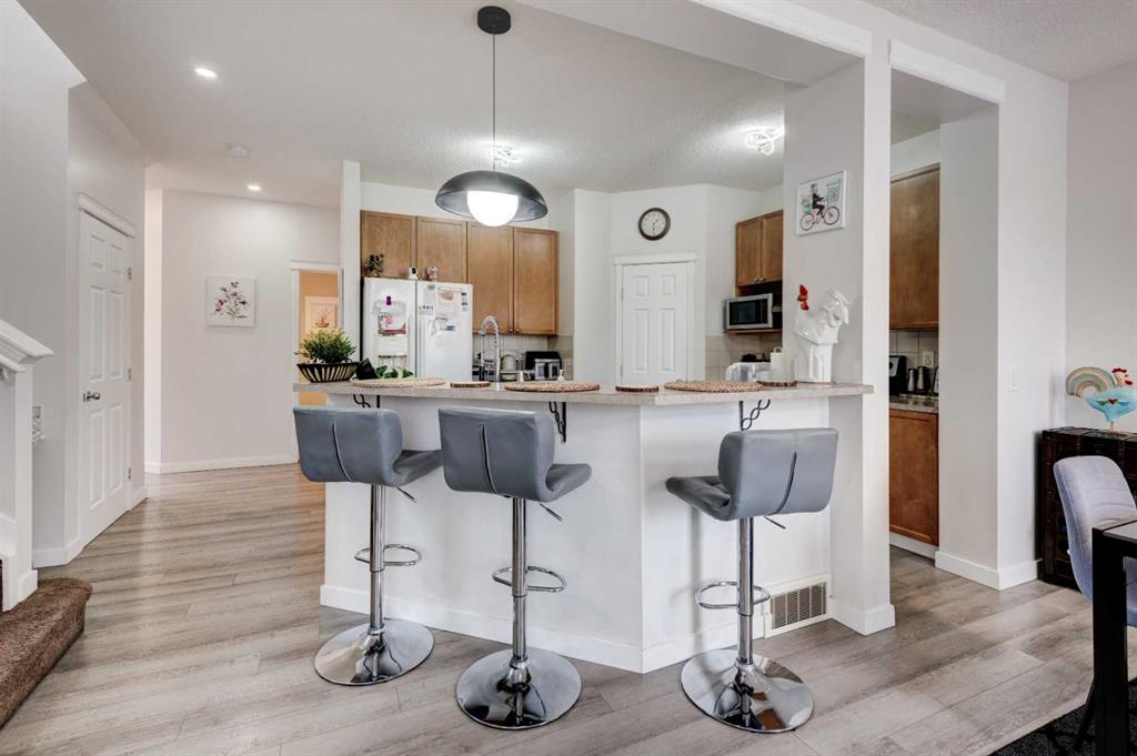 Welcome to beautiful 2- storey house , Conveniently situated across from a park in the family-oriented SW community of Bridlewood. With the open layout on the main floor, featuring a bright living room with a gas fireplace. The stylish kitchen with a large island boasting a breakfast bar, plenty of cabinet space, a walk-through pantry, and a welcoming dining /breakfast nook. Laundry room and a 2- piece bath also located in the main floor. Upstairs, the primary suite offers ample space, complete with a large walk-in closet and a 4 -piece ensuite bathroom featuring a stand-up shower and a relaxing soaker tub. The upper level also includes a charming bonus room with vaulted ceilings , 2 additional bedrooms, an office space, and an updated 3-piece bath. The fully finished lower level provides flexibility with a recreation room, 2 additional bedrooms, a den/office, Dining room/servery. Step outside to the oversized , landscaped backyard, siding onto a walking path, and featuring a 2-tiered deck with a convenient gas hookup and a storage shed. Features includes a double attached garage, and recent upgrade like flooring. Previous owner ,in 2023 or before , has done the upgrades like new siding, roof, garage door, washer/dryer, and dishwasher. Conveniently located close to all amenities, including shopping, public transportation, parks, schools, and major roads, This house delivers great value. Book your private viewing today!