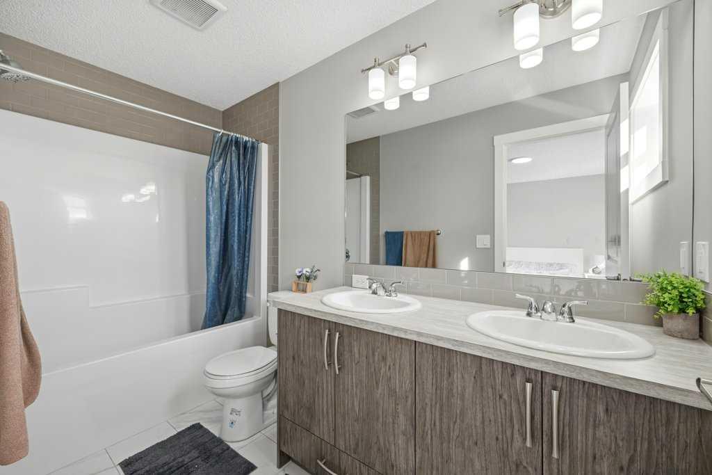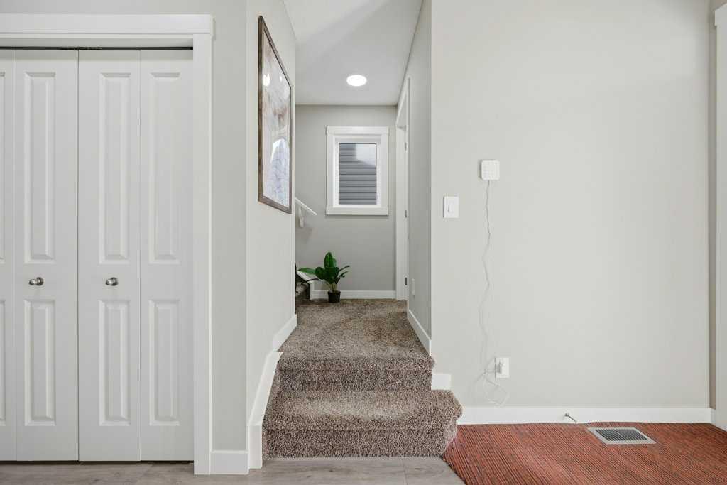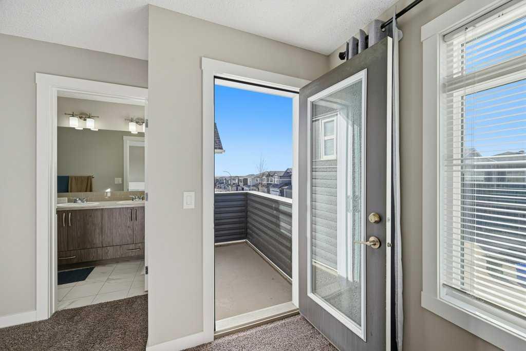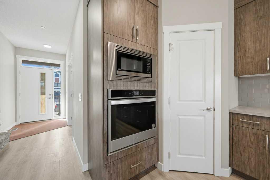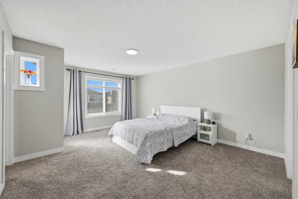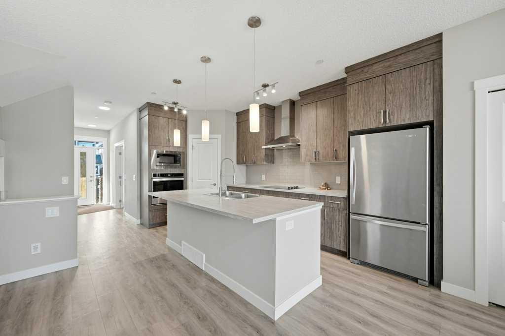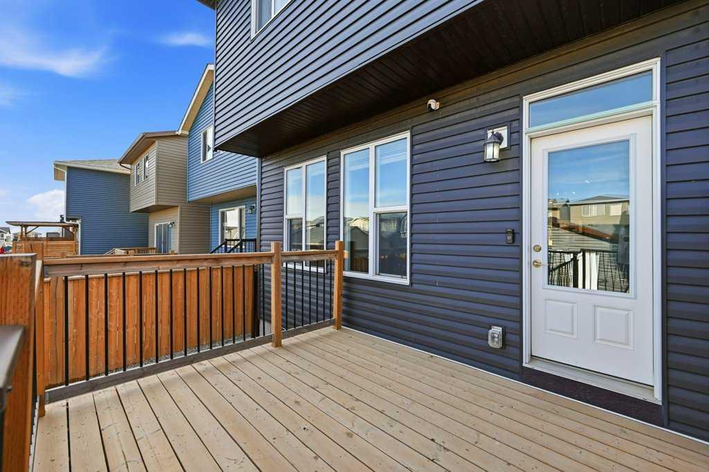 Welcome to this stunning detached home in the vibrant community of Livingston, offering no neighbours behind for added privacy! This beautifully designed home features a massive front porch and approximately 1,900 sq. ft. of living space above grade, with high 9-ft ceilings and luxury vinyl plank flooring throughout the main floor. The spacious foyer welcomes you with a large closet and leads to a bright front office with south exposure, filling the space with natural light. The chef-inspired kitchen is truly the heart of the home, showcasing elegant cabinetry in a modern cream tone, high-quality countertops, stainless steel appliances, electric cooktop, built-in oven and microwave, range hood fan, and a massive corner pantry. The adjacent dining area comfortably fits an 8-seat table and flows seamlessly into the cozy living room, highlighted by large windows that bring in an abundance of natural light. At the rear, you’ll find a spacious mudroom leading to a large deck, a low-maintenance backyard, and a double detached garage. Upstairs features a functional and family-friendly layout with plush carpeting throughout, a bonus/family room perfect for entertainment, and convenient upper-floor laundry. The primary bedroom offers ample space for a king-size bed, a luxurious 5-piece ensuite with double vanity, a walk-in closet, and the rare bonus of a private balcony access. Two additional well-sized bedrooms and a 4-piece bathroom complete the upper level. A standout feature of this home is the legal basement suite with a separate side entrance, complete with a full kitchen, spacious bedroom, large windows, and a 4-piece bathroom—an excellent opportunity for rental income (previously rented for $1,800/month) or multi-generational living. Located just minutes from Stoney Trail and close to shopping, amenities, and more, this home offers the perfect combination of comfort, functionality, and investment potential. Don’t miss your chance to own this exceptional property!