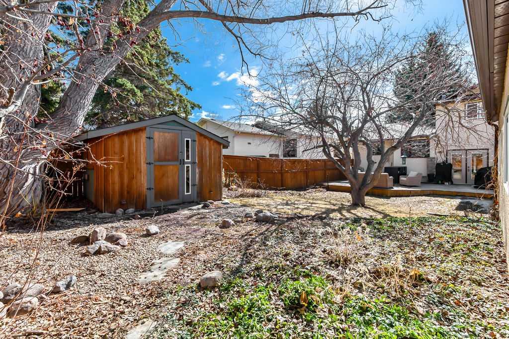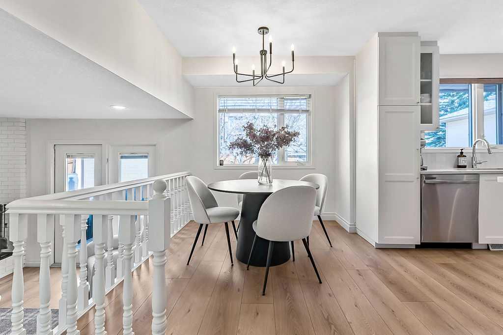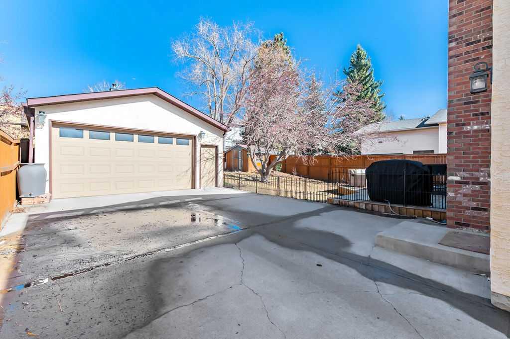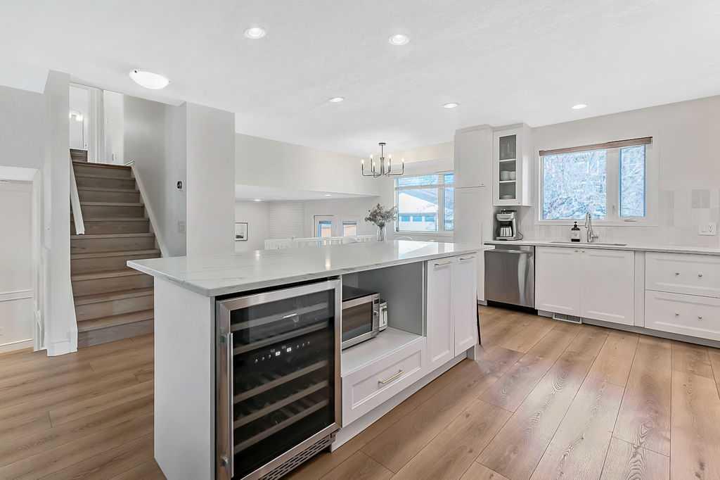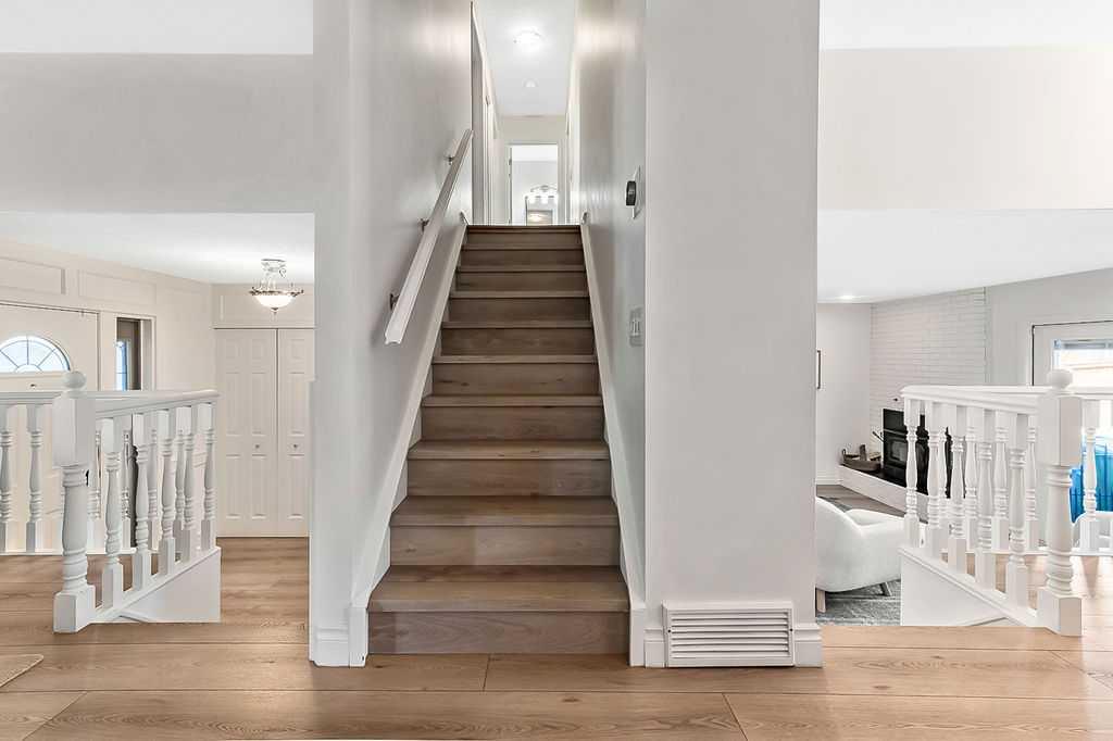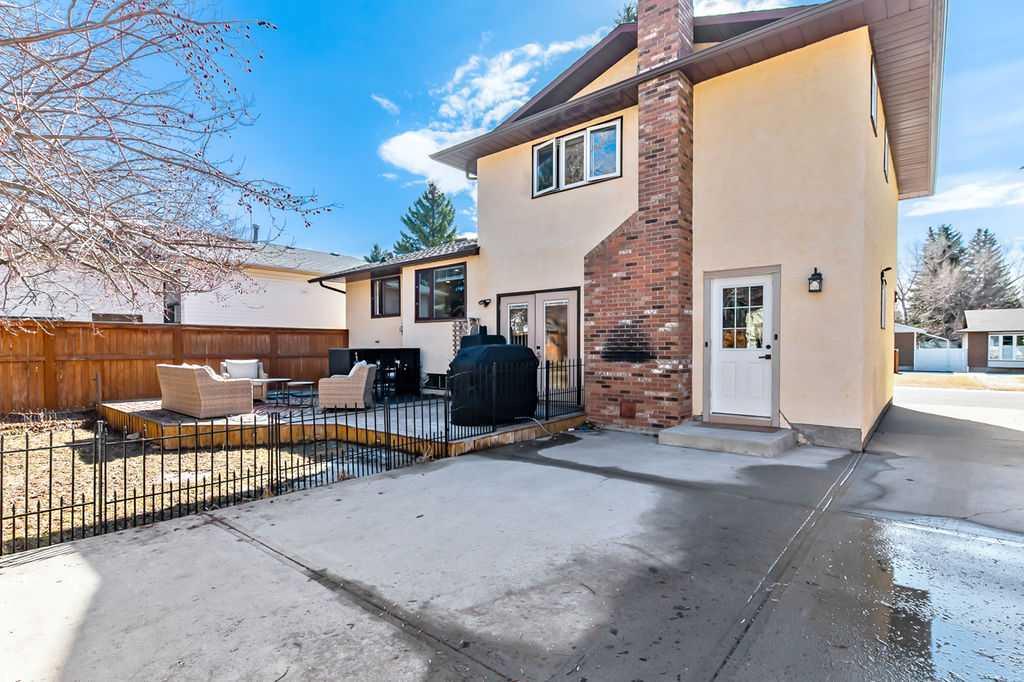 BEAUTIFULLY RENOVATED, WELL MAINTAINED 2 storey split on a quiet cul-de-sac in a premier spot in desirable Woodlands! Situated on a large, private lot (over 6300 sq ft) this home is located in a fantastic location - just a short walk down a path to Fish Creek Park, close to schools, shopping, transit and the ring road. The home offers over 2300 sq ft of developed living space with 4 bedrooms (one on the main floor that could be used as an office or den), 2 four piece bathrooms on the upper level and a two piece bathroom on the main level. The main floor was tastefully upgraded in 2023 with luxury vinyl plank flooring and a gorgeous spacious kitchen featuring a massive island, new refrigerator, new beverage fridge, new dishwasher & a classic Viking gas range. A well thought out floor plan provides perfect spaces for entertaining in either the kitchen, expansive main living room or in the cozy lower family room complete with a wood fireplace (which has a heatilator insert with an optional fan that can heat the home) & garden doors opening up onto the spacious deck & lovely back garden. A mudroom/laundry room which holds the stacked washer and dryer completes this level. The second level has hardwood throughout its 3 bedrooms. The primary bedroom has lots of storage with closet organizers and has a 4 piece ensuite. The other 2 bedrooms are spacious with one having a murphy bed for flexibility. The lower level offers an expansive recreation room and a separate storage area. There is a new hot water tank (2022), hook up for a Kinetico system, humidifier and water softner. The oversized heated double garage (with work bench!) is situated facing the street and is at the end of a side driveway that can accommodate extra vehicles. New shingles for the garage were installed in 2024. This home is a perfect blend of style, space and functionality and is move in ready. Rarely do homes with renovations of this kind come on the market in this desired community!