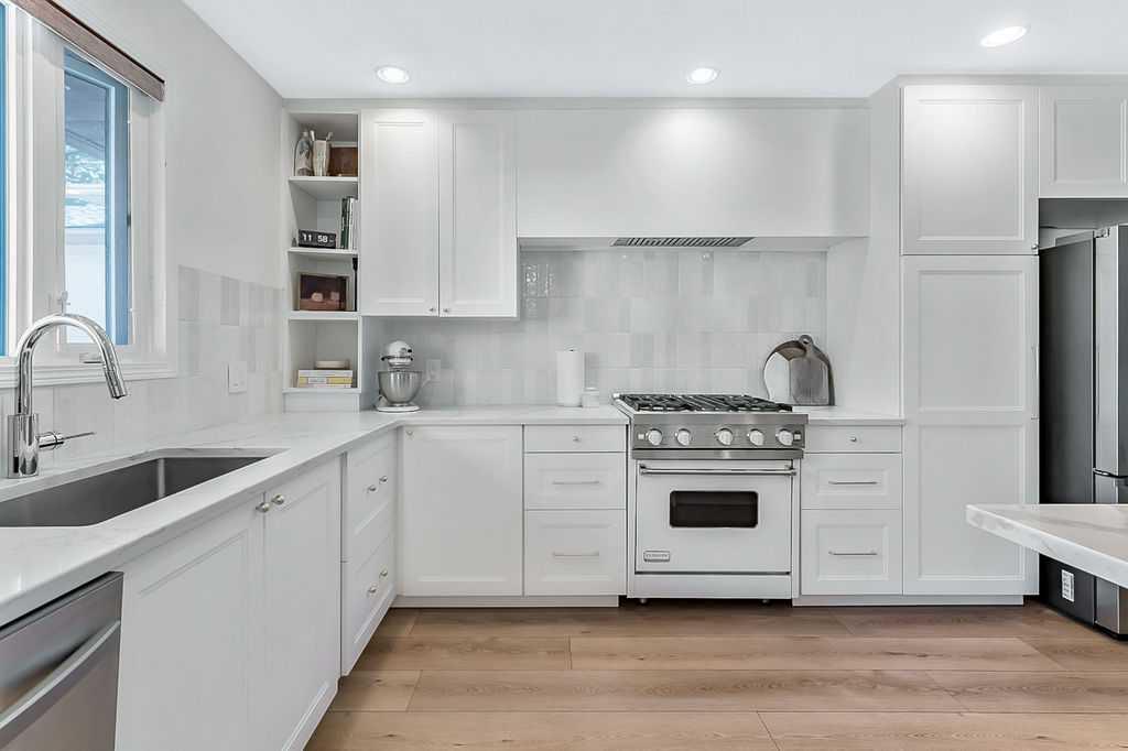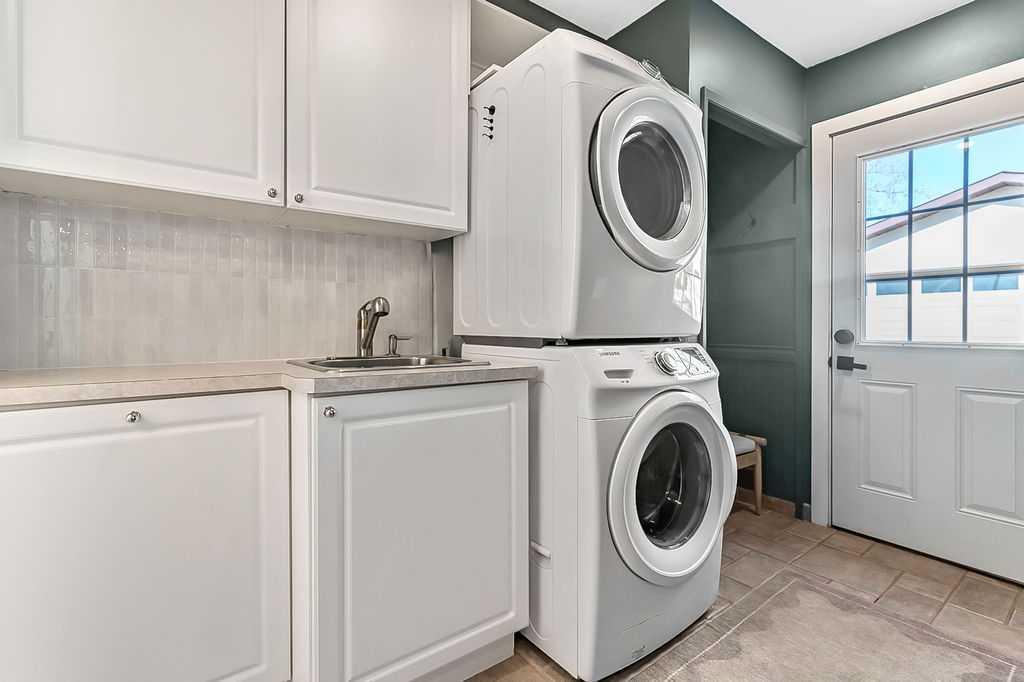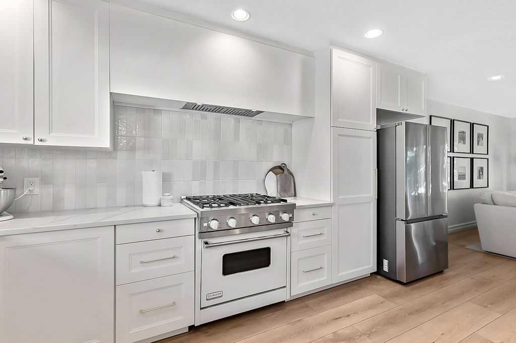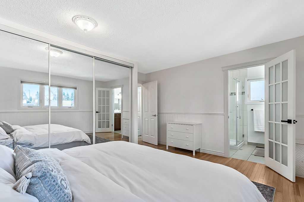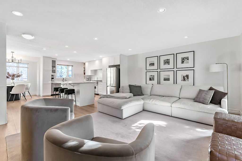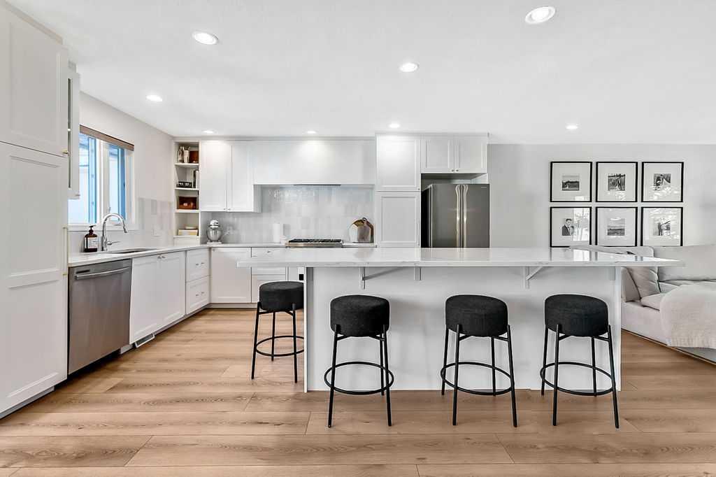 BEAUTIFULLY RENOVATED, WELL MAINTAINED 2 storey split on a quiet cul-de-sac in a premier spot in desirable Woodlands! Situated on a large, private lot (over 6300 sq ft) this home is located in a fantastic location - just a short walk down a path to Fish Creek Park, close to schools, shopping, transit and the ring road. The home offers over 2300 sq ft of developed living space with 4 bedrooms (one on the main floor that could be used as an office or den), 2 four piece bathrooms on the upper level and a two piece bathroom on the main level. The main floor was tastefully upgraded in 2023 with luxury vinyl plank flooring and a gorgeous spacious kitchen featuring a massive island, new refrigerator, new beverage fridge, new dishwasher & a classic Viking gas range. A well thought out floor plan provides perfect spaces for entertaining in either the kitchen, expansive main living room or in the cozy lower family room complete with a wood fireplace (which has a heatilator insert with an optional fan that can heat the home) & garden doors opening up onto the spacious deck & lovely back garden. A mudroom/laundry room which holds the stacked washer and dryer completes this level. The second level has hardwood throughout its 3 bedrooms. The primary bedroom has lots of storage with closet organizers and has a 4 piece ensuite. The other 2 bedrooms are spacious with one having a murphy bed for flexibility. The lower level offers an expansive recreation room and a separate storage area. There is a new hot water tank (2022), hook up for a Kinetico system, humidifier and water softner. The oversized heated double garage (with work bench!) is situated facing the street and is at the end of a side driveway that can accommodate extra vehicles. New shingles for the garage were installed in 2024. This home is a perfect blend of style, space and functionality and is move in ready. Rarely do homes with renovations of this kind come on the market in this desired community!