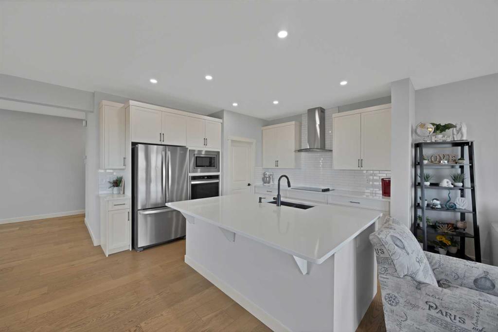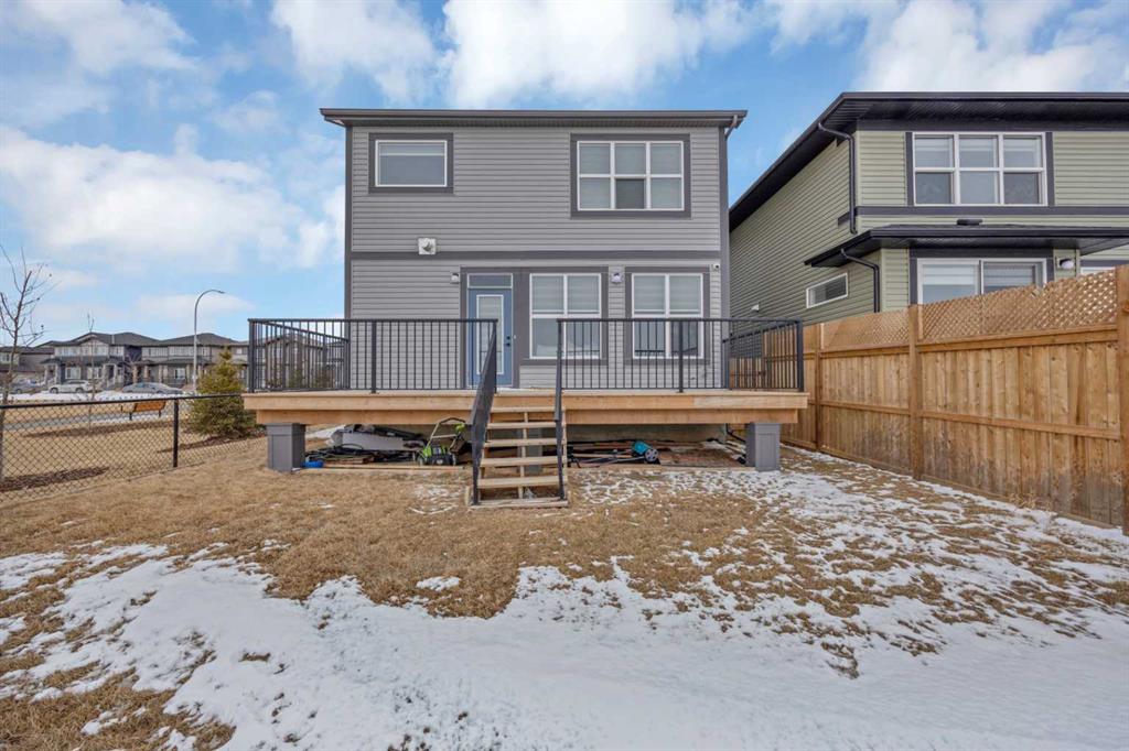 Welcome to this beautifully designed front garage home located in the highly desirable community of Cornerstone, Calgary, perfectly positioned on a premium corner lot backing onto tranquil pond-facing green space with additional green space along the side, offering exceptional privacy, scenic views, and an abundance of natural light throughout the day. This impressive property features a bright and spacious open-concept layout with a huge living area that is ideal for both entertaining guests and comfortable family living. The main floor showcases a modern kitchen complete with stainless steel appliances, granite countertops, ample cabinetry, and a dedicated spice kitchen, providing added functionality and convenience for everyday cooking. Large windows throughout the home create a warm and inviting atmosphere while maximizing the surrounding views. Upstairs, you will find four generously sized bedrooms, offering plenty of space for growing families, including a spacious primary retreat designed for relaxation. The thoughtful layout ensures both comfort and practicality in every corner of the home. Step outside to a full deck overlooking the peaceful green space, perfect for outdoor gatherings, summer barbecues, or simply unwinding in a serene setting. The corner lot location enhances curb appeal while providing additional outdoor space and flexibility. This home is ideally situated close to shopping plazas, parks, schools, and a variety of everyday amenities, making it a perfect choice for families seeking both convenience and lifestyle. With its prime location, functional design, and beautiful surroundings, this property presents a rare opportunity to own a stunning home in one of Calgary’s fastest-growing and most sought-after communities.