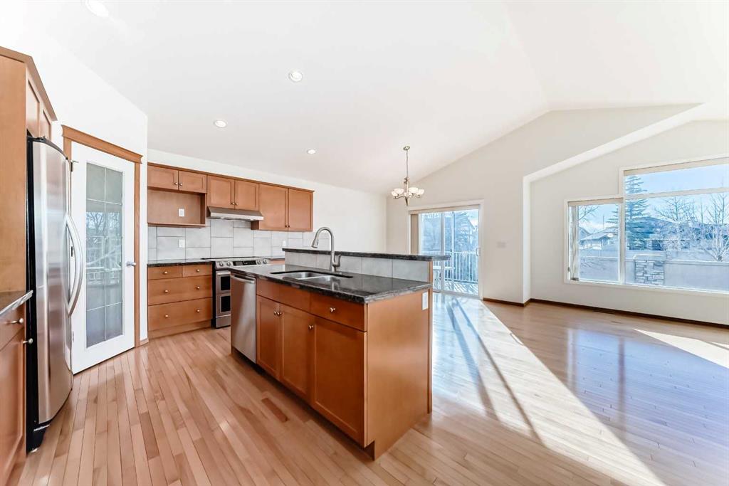 Welcome to this beautifully crafted Morrison-built bungalow nestled in the highly sought-after community of Cougar Ridge—where elegance meets comfort in a home designed for refined single-level living with exceptional room and space to live. Showcasing stunning curb appeal with a full stone front façade and a gardener’s dream backyard, this home impresses from the moment you arrive. Step inside to discover soaring vaulted ceilings and rich, light-toned hardwood flooring that flows seamlessly throughout the main living areas, creating a warm and inviting atmosphere. The open-concept design is both stylish and functional, centered around a chef-inspired kitchen featuring maple cabinetry, granite countertops, stainless steel appliances and a spacious center island with an eating bar—perfect for everyday living and entertaining. Adjacent to the kitchen, a sunlit breakfast nook opens onto a generous west facing deck and backyard, ideal for morning coffee, BBQs, and outdoor relaxation. The great room offers a cozy and welcoming ambiance with a custom-built gas fireplace, making it the perfect gathering space. Thoughtfully designed for convenience, the main level also includes a powder room and a mudroom/laundry area with access to a double attached garage. The spacious primary suite serves as a peaceful retreat, complete with a spa-inspired ensuite featuring a granite-topped vanity, large soaker tub, separate shower, and a walk-in closet. The fully finished basement is developed to the same high standards as the main floor and expands your living space with a second bedroom, a 4-piece bathroom, a large family room, and ample accessible storage. Located just steps from a beautiful park, this home is ideal for family outings and nature lovers alike. Cougar Ridge offers a perfect blend of natural beauty and urban convenience, with close proximity to recreation like Canada Olympic Park (COP), Eastland & Buffalo Hills hiking trails, golf as well as shopping, and top-rated schools. This is the bungalow lifestyle you’ve been waiting for!