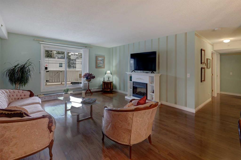 Step into this wonderful home and you are immediately struck by its openness and flow. Enter through a gracious foyer, accessing the office/den and the large dining room/living room, and you are immediately impressed with the expansive open plan space. The dining room and living room are welcoming and accommodating to any style or arrangement. There is still room to escape or get some work done as well with the spacious den/office just off the foyer. The updated kitchen is very functional. It has plenty of room to create and move around … and the appliances are immaculate. It has a passthrough to the dining room as well, which is quite convenient. Down the hall you will find the bright and sunny primary suite, which is very large. In addition to the well-proportioned bedroom, it offers a walk-in closet and 4-piece ensuite. The second bedroom is generous as well with plenty of room for furniture and to move around. Across the hall, a pleasant 3-piece bathroom and very functional laundry room complete the floor plan. One of the most stunning features of this home is the massive, 37’ x 12’11”, south facing patio. At 45% covered, this patio is ideal for entertaining, perfecting your green thumb, putting the dog out or simply relaxing. It expands your living space tremendously. With over 1,327 square feet of living space, plus another 410 sf of partially covered patio space, you’ve got room to roam! Click on the 3D Tour icon above and you will see what we mean! Another special and unique feature of this offering is the 2 underground parking spaces included with the unit, one of which is titled for your ownership. The other is assigned. A handy, assigned, storage locker is only steps away from your car park. South Calgary is a fantastic, walkable, community to live in. With easy access to shopping and parks, Marda Loop and downtown, this location is hard to beat. Units in Leaton Place don’t come available very often and this south facing unit is one of the largest in the building. Now is your opportunity to own this gem in one of the most sought-after buildings in the area.