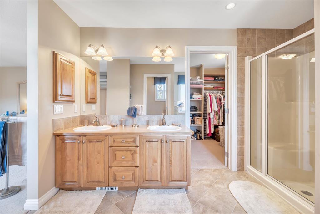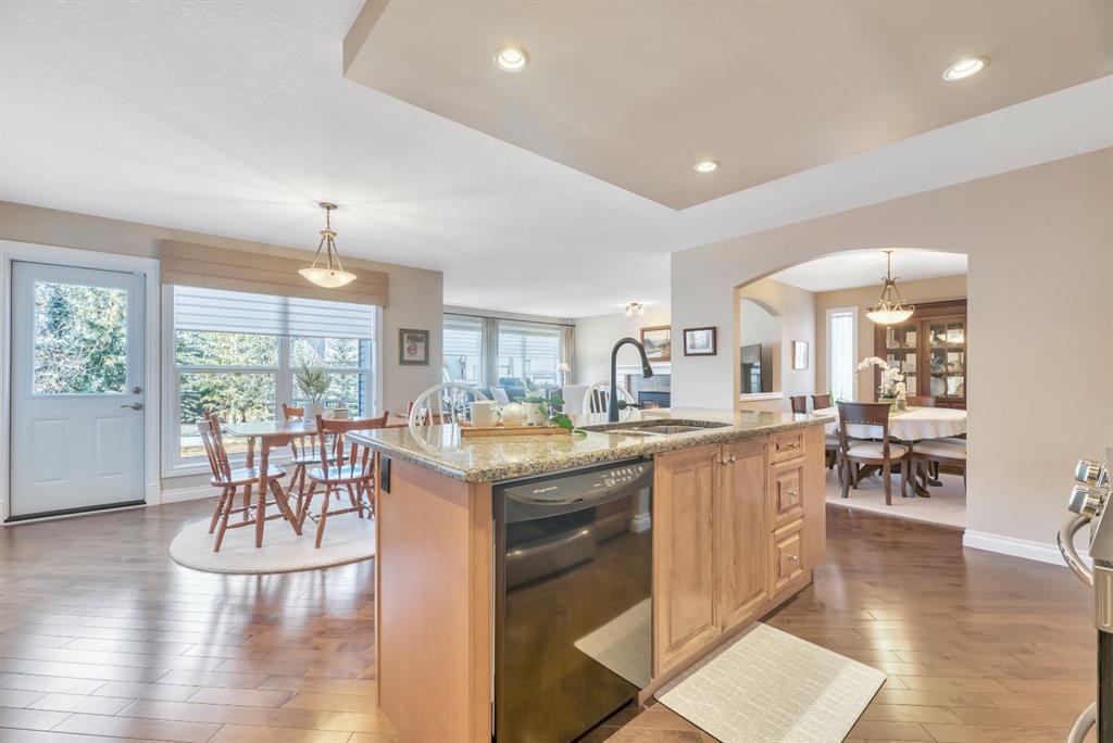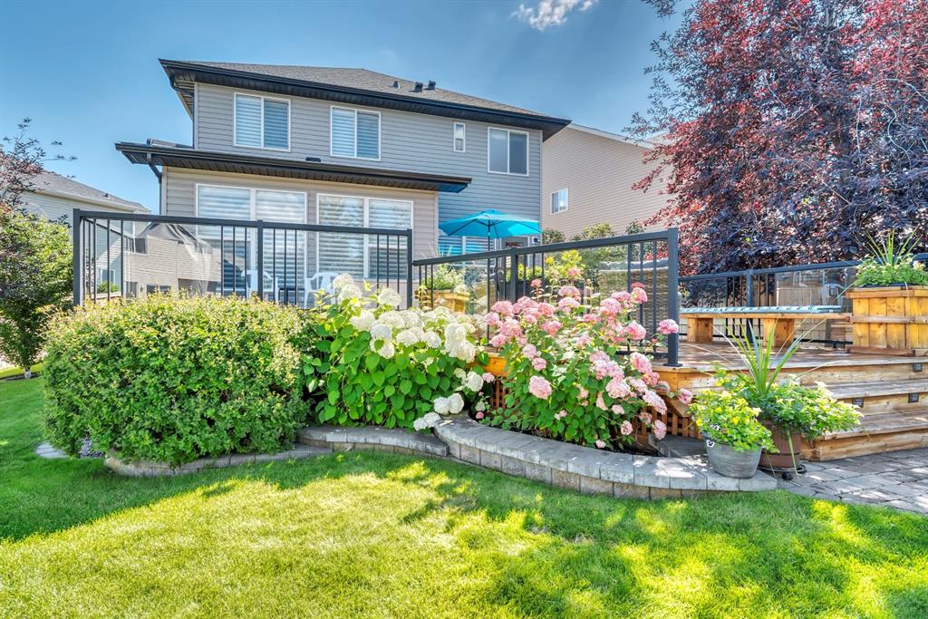 Welcome to this exceptional in the highly sought-after community of Evergreen SW, perfectly positioned on a very rare 8,223 sq ft private oasis lot surrounded by mature trees & professional landscaping inc. a large vegetable garden. Meticulously maintained, this custom Jager built 2-storey offers almost 3300 sq ft of refined living space & showcases pride of ownership at every turn. From the moment you arrive, the stunning solid oak front door sets the tone for the quality and craftsmanship found throughout. Inside, you’re greeted by a bright and elegant main floor featuring a versatile formal dining room/home office, expansive windows dressed with Hunter Douglas Pirouette blinds, and a warm, inviting living room anchored by a gas fireplace. High end flooring is throughout the home and has diagonally laid maple hardwood flooring for a timeless touch, complemented by plush carpeting for comfort & quality porcelain tile work.The beautiful kitchen offers maple cabinetry, a 6’ granite island with wine rack, undermount lighting, newer slide-in range and microwave hood fan, dishwasher, fridge and garburator. The heart of this home lies in the functionality. Step in from the double attached garage to the combo back entry/laundry room with dedicated wash sink. This space flows into a large walk through pantry with shelving on both sides offering unparalleled convenience for bringing in groceries & staying clean and organized. Speaking of clean, this home also has a central vac system. The backyard is your own private retreat—an incredible 550 sq ft two-tier cedar deck, freshly stained & complete with built-in bench seating, planters, gas line for BBQ (BBQ included), & under-deck storage. The beautiful landscaping is enhanced by a full irrigation & lighting system & includes a newer shed as well as 3 rain barrels, creating the perfect setting for a fabulous outdoor lifestyle! Upstairs, you’ll find a sunken bonus room, a full 4-piece bathroom, & a massive second bedroom with dual closets (easily converts into two bedrooms with the smart layout provided). The spacious primary suite overlooks the backyard & features a luxurious 5-piece ensuite with cozy in floor heat, dual sinks, soaker tub, separate shower, & a fully customized W/I closet.The basement has been developed with thought & care...includes great storage space, 3 piece bath with heated tile floor as well as tiled shower & walls. Enjoy family time, movie & sports nights with a wet bar on the way to the media room complete w/ built in speakers for max sound experience as well as a fireplace feature wall. Just behind is a great gym space (treadmill inc) with commercial carpet (& smart access to media receiver controls through the closet doors). The additional bedroom in the basement is a big bright space - comfortable for visitors or family members. Come and visit this home & see all the extras for yourself - truly a MUST SEE! Check 3D tour for all additional photos!