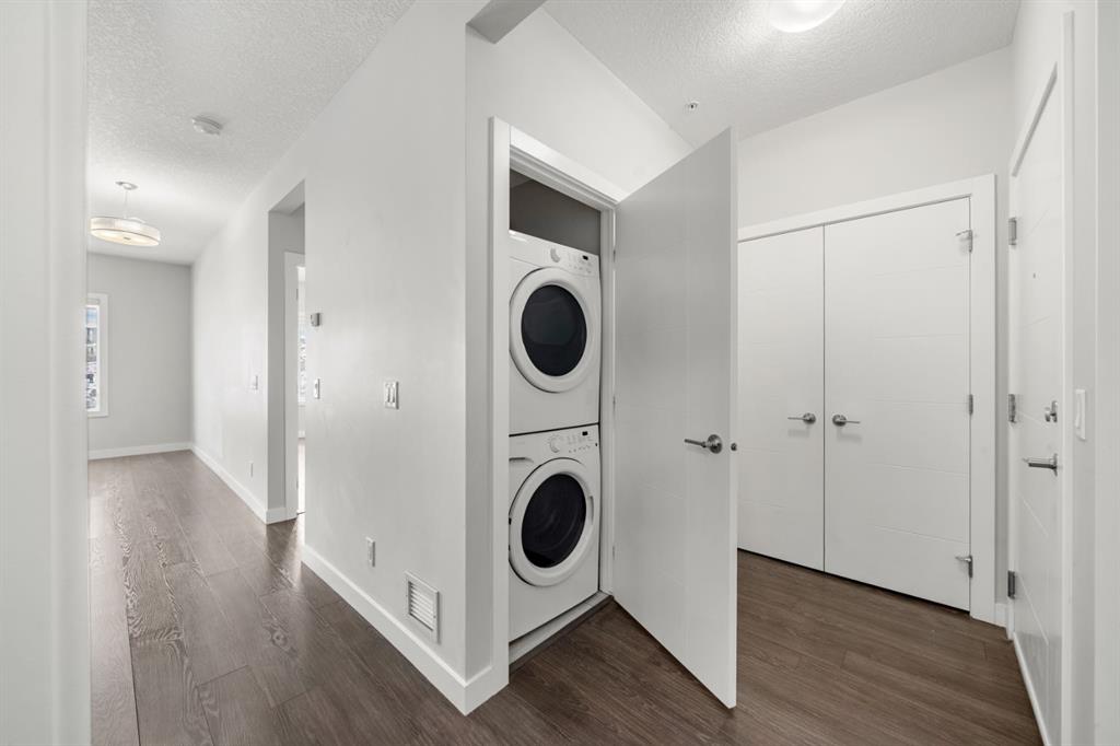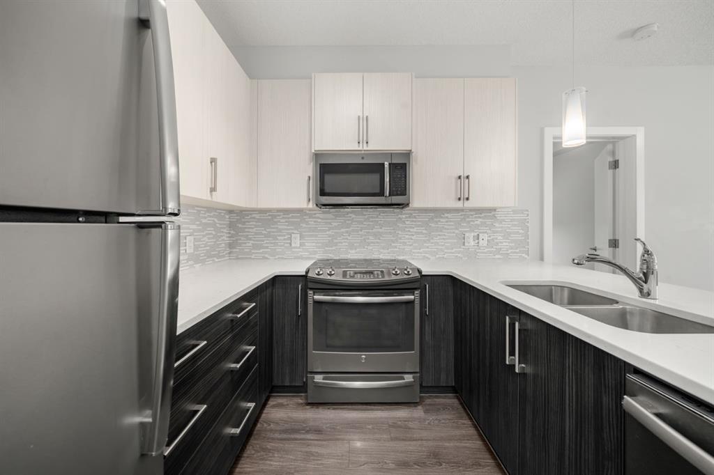 Welcome to this stunning corner-unit home at 121, 16 Sage Hill Terrace NW, where modern convenience meets an incredible sense of privacy. Upon entering, you are greeted by a versatile, oversized den that serves as the perfect home office or a massive storage solution—a rare find in condo living. As you move into the heart of the home, the space opens into a bright, open-concept floor plan tied together with beautiful luxury vinyl plank (LVP) flooring and large windows equipped with upgraded blackout blinds for ultimate comfort. The kitchen is a chef’s delight, featuring a large peninsula with seating for three that flows seamlessly into the dining and living areas, making it an ideal setup for hosting family and friends. This thoughtful layout offers two generous bedrooms and two full bathrooms adorned with classic tile flooring. The primary retreat is large enough to easily accommodate a king-sized bed and dressers, complete with a walk-through closet leading to a private 4-piece ensuite. The second bedroom is perfectly situated adjacent to the main 4-piece bathroom, offering a great setup for guests or roommates. What truly sets this home apart is its unique "elevated" ground-floor position; while you enjoy the effortless access of a main-floor entrance, the building’s natural slope perches the unit high above the ground level for added security and a private, peaceful view. Step out onto the balcony to take in the vast south and east views with your morning coffee. Completing this package is a titled, heated underground parking stall, all located just steps from Sage Hill’s premier shopping, dining, and scenic ravine pathways.