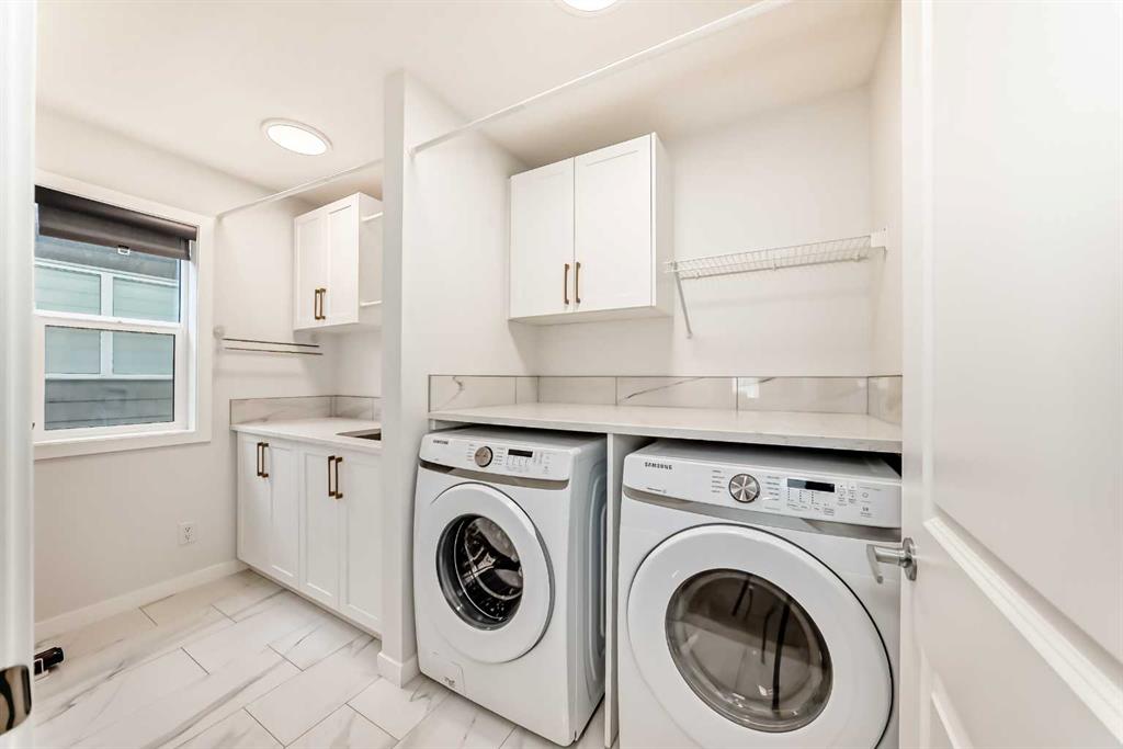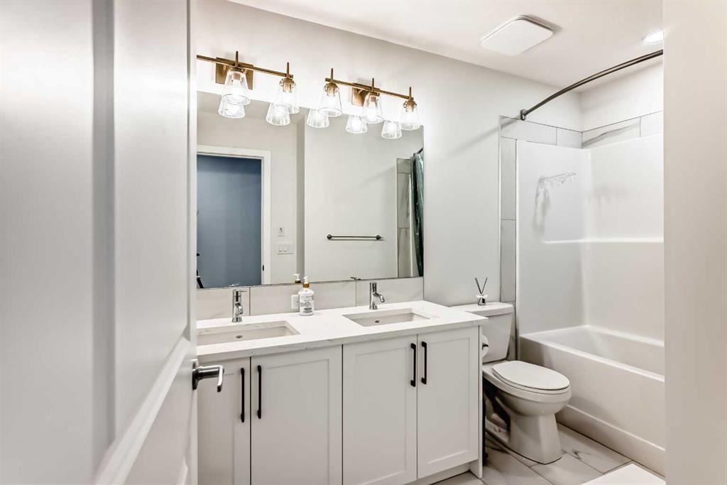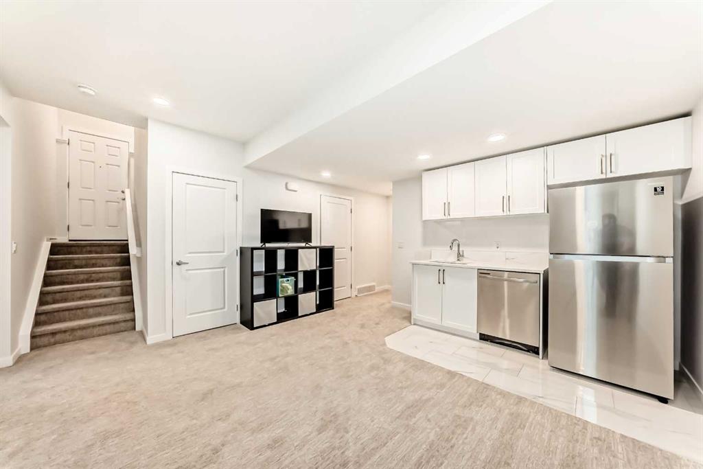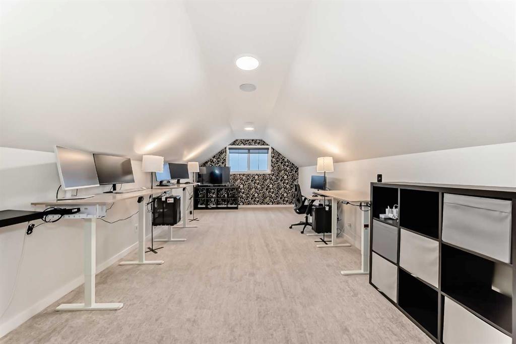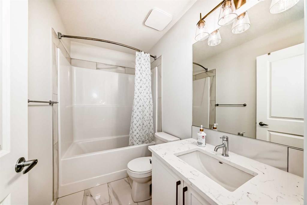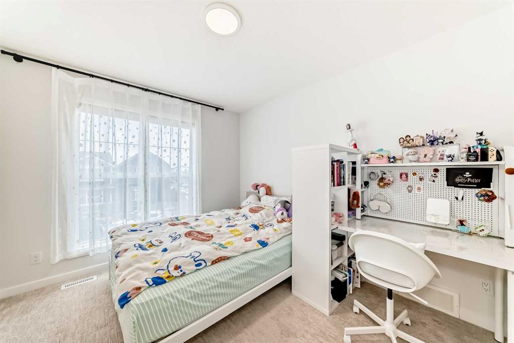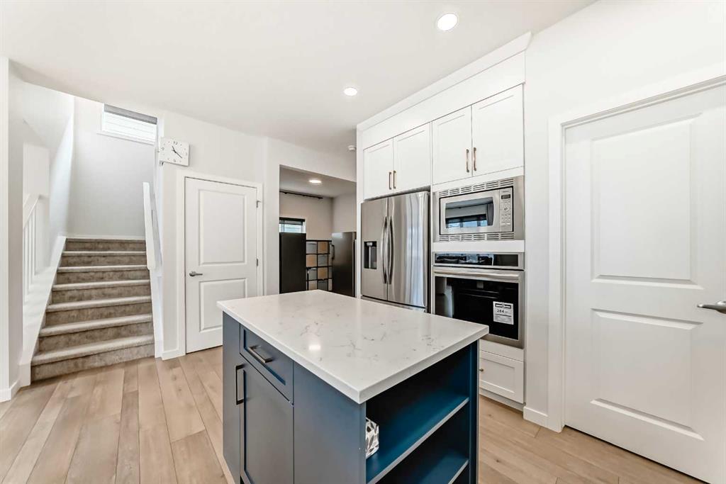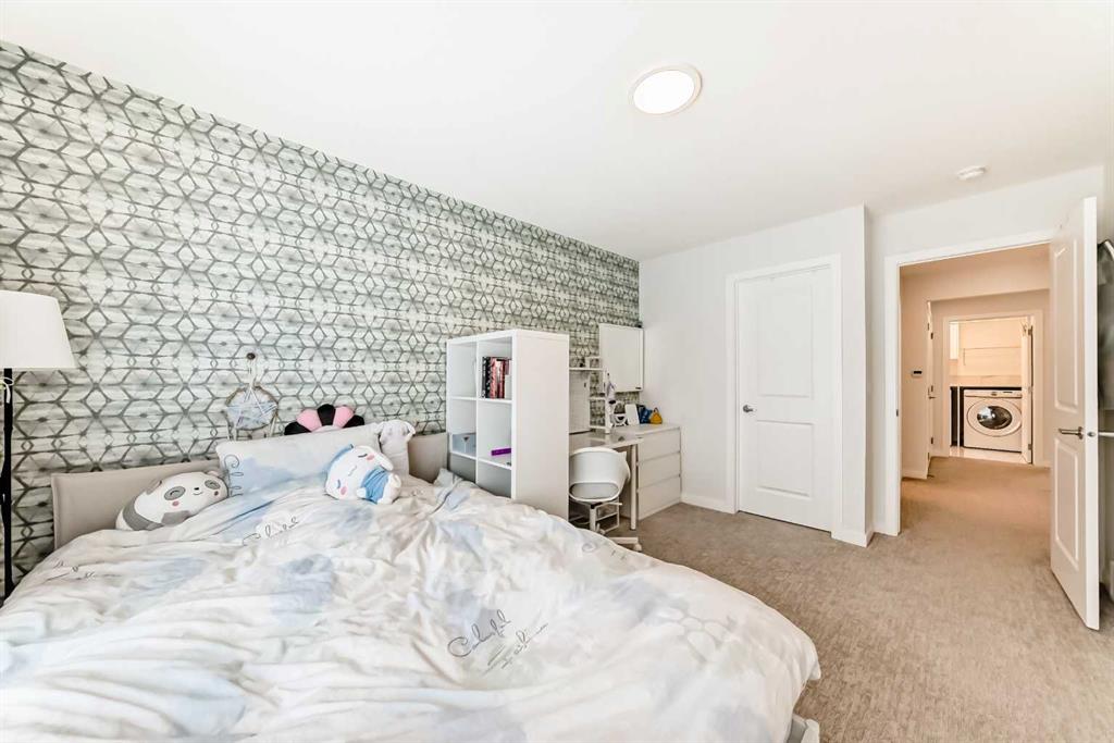 Welcome to this exceptional former show home, offering over 3,560 sq.ft. of beautifully developed living space in one of Calgary’s most sought-after lake communities. Enjoy year-round recreation just minutes from your doorstep — from skating in the winter to swimming, paddle boarding, and fishing in the summer. Designed with both comfort and functionality in mind, the open-concept main floor is perfect for everyday living and entertaining. The chef-inspired kitchen features full-height white cabinetry, soft-close drawers, and a bright stylish tile backsplash. A striking navy island with quartz countertops provides ample prep space, complemented by a gas cook top, built-in wall oven, microwave, and a spacious pantry. The bright dining area seamlessly connects to the backyard deck, while the inviting living room showcases a modern fireplace and abundant natural light. A versatile main-floor flex room offers the perfect space for a home office, formal dining room, or playroom. The mudroom with direct garage access adds everyday convenience for busy families. Upstairs, you’ll find three generously sized bedrooms, including a luxurious primary retreat complete with a walk-in closet and a spa-inspired ensuite featuring dual vanities, a deep soaker tub, and an oversized shower. A 5-piece main bathroom and an upper-level laundry room with additional storage and a bonus room complete this level. The rare third-floor loft is a standout feature, offering incredible flexibility as a guest suite, media room, home office, or private retreat for teens — complete with its own 4-piece bathroom. The fully developed basement expands your living space with impressive 9-foot ceilings, an additional bedroom, a full bathroom, and a spacious recreation area. A custom wet bar with built-in cabinetry makes it ideal for entertaining. The separate side entrance provides excellent flexibility for multi-generational living, a home-based business, or potential suite development (subject to approval). Additional highlights include air conditioning units for enhanced comfort and built-in speakers. Ideally situated on a quiet street, just minutes from parks, pathways, and the lake, this home offers the perfect blend of style, space, and location. Don’t miss this rare opportunity to own a truly exceptional family home. Home is under Certified New Home Warranty program.