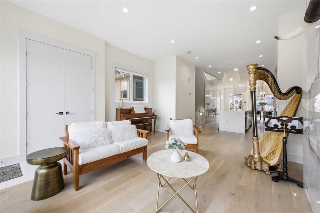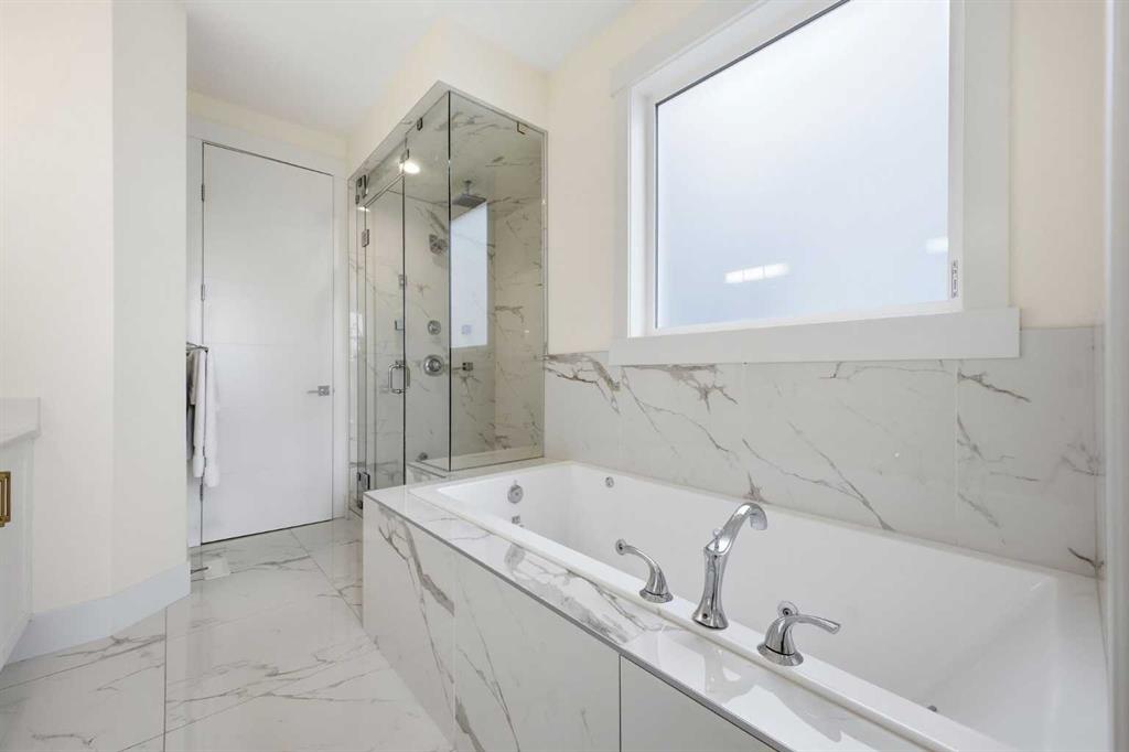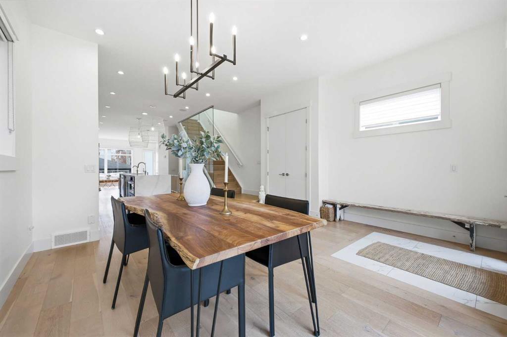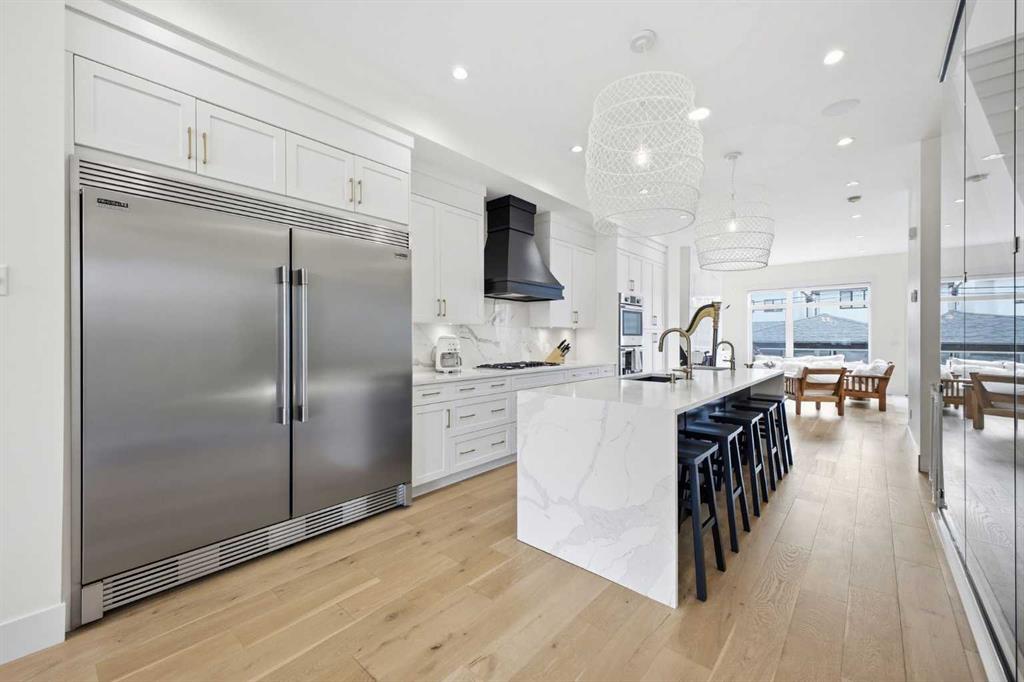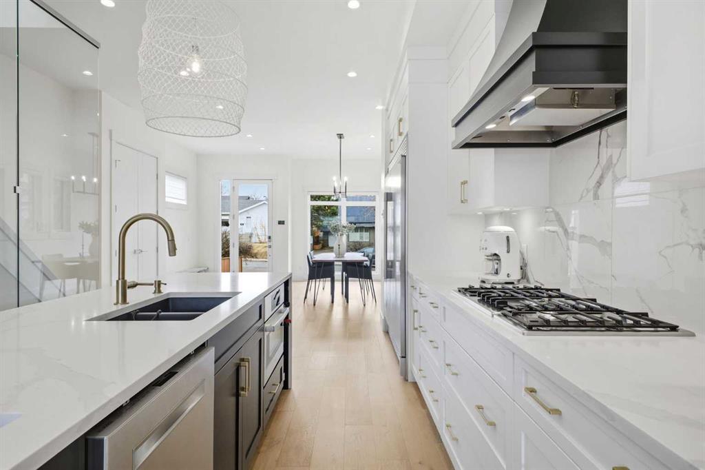 OPEN HOUSE SATURDAY, MARCH 28TH FROM 3-5 PM & SUNDAY, MARCH 29TH FROM 1-4 PM. Perfectly positioned in the established community of Shaganappi, this beautifully designed 3+1 bedroom home offers over 2,900 sq ft of modern, elegant living space. The open main level features vinyl plank flooring, lofty ceilings, and stylish lighting throughout. A spacious front dining room provides ample room to host family and friends and flows seamlessly into the chef’s kitchen, thoughtfully appointed with quartz countertops, a large island with both double and single sinks for effortless prep, custom designed rangehood, abundant storage, and stainless steel appliances. The inviting living room is anchored by a striking floor to ceiling fireplace, creating a warm focal point for everyday living. A 2 piece powder room completes the main level. A glass walled staircase leads to the second floor, where you’ll find three generous bedrooms, a 4 piece main bath, and convenient laundry facilities with a sink and storage. The luxurious primary retreat features a cozy fireplace, walk in closet, and a spa inspired 5 piece ensuite with in floor heat, dual sinks, a relaxing jetted tub, and a rejuvenating steam shower. The front bedroom enjoys access to a private balcony—an ideal spot for morning coffee. The fully developed basement extends the living space with a large recreation/media room complete with a wet bar, perfect for movie nights or game day. A fourth bedroom and 4 piece bath offer comfortable accommodations for guests. Additional highlights include central air conditioning, Delta and Aqua fixtures throughout, upgraded flooring, new HWT (2022), upgraded cabinet pulls/handles, Smart home capability, and built in speakers on the main level, basement, and in the primary suite. Outside, enjoy a spacious back deck—also equipped with built in speakers—and access to the double detached garage. This exceptional home is located directly across from Shaganappi Point Golf Course and is close to Edworthy Park, schools, shopping, public transit, and offers quick access to Bow Trail and 37th Street.