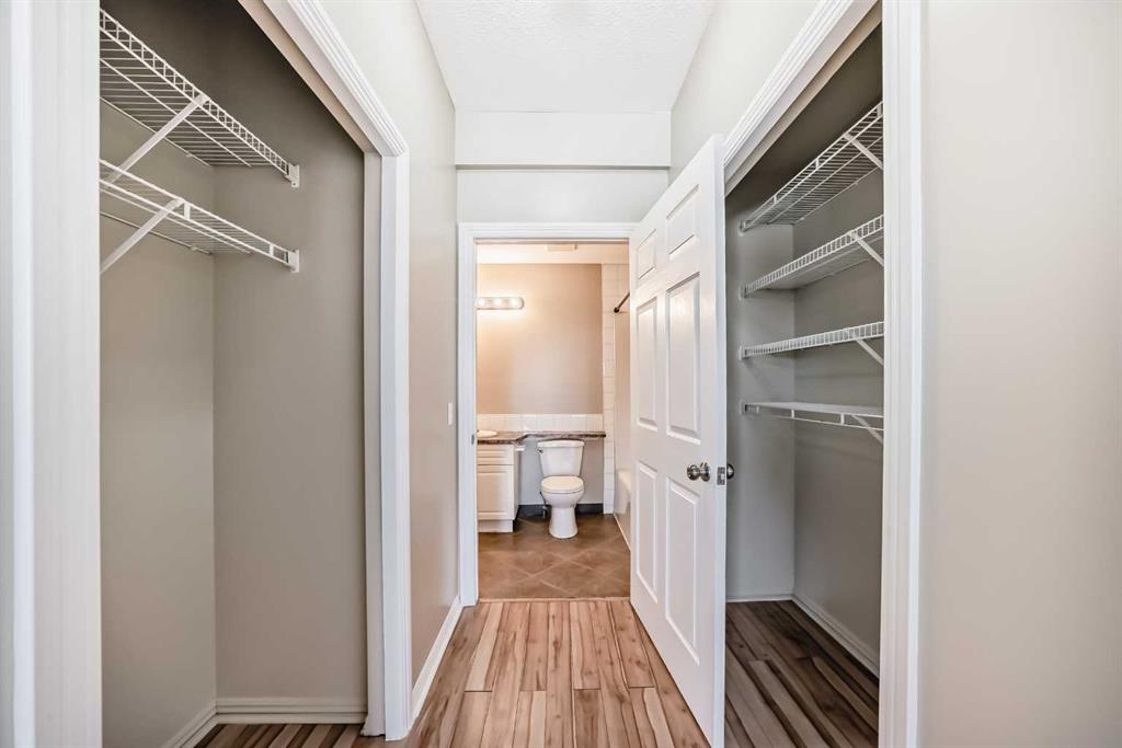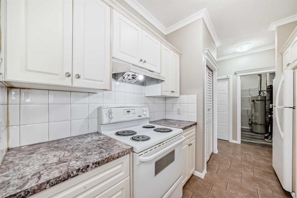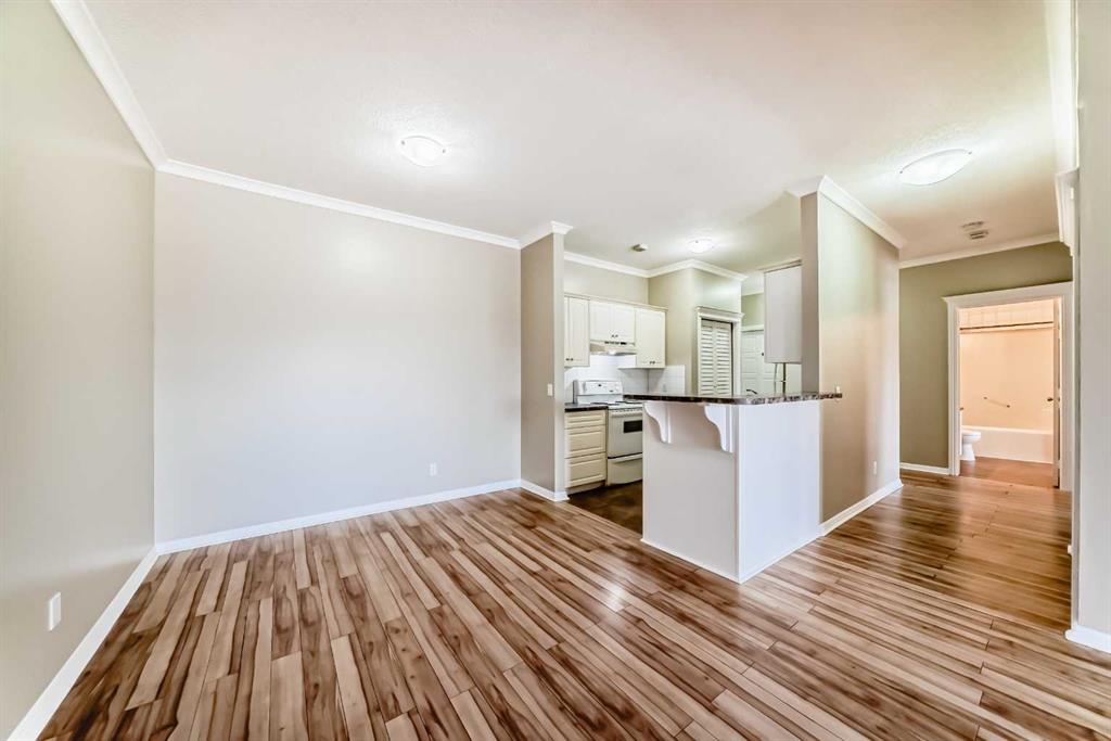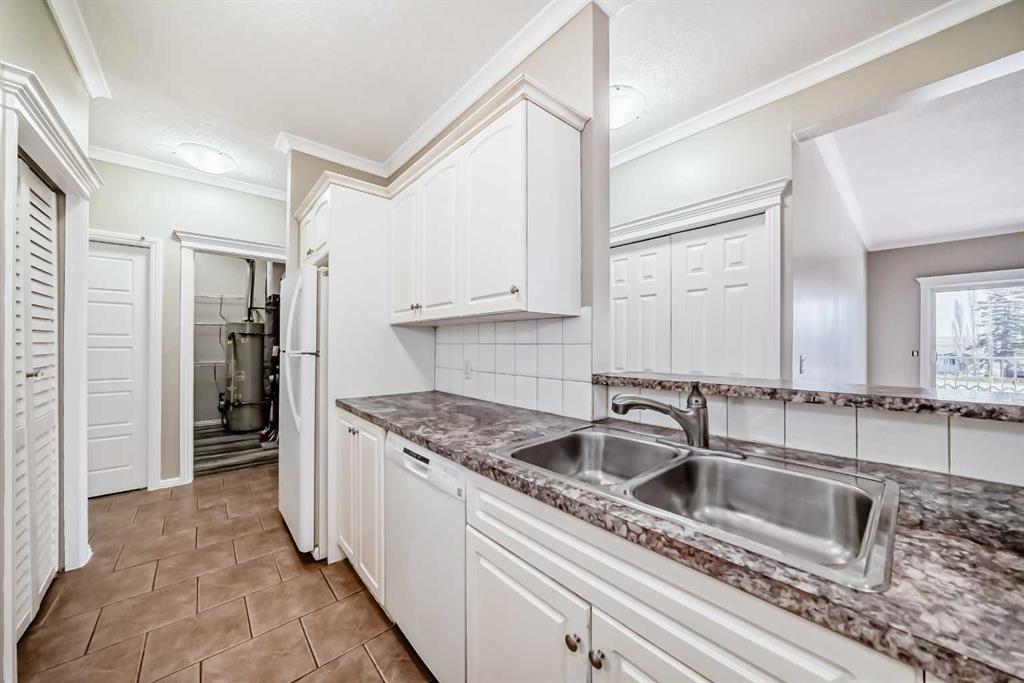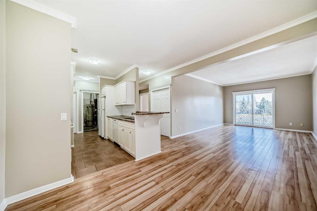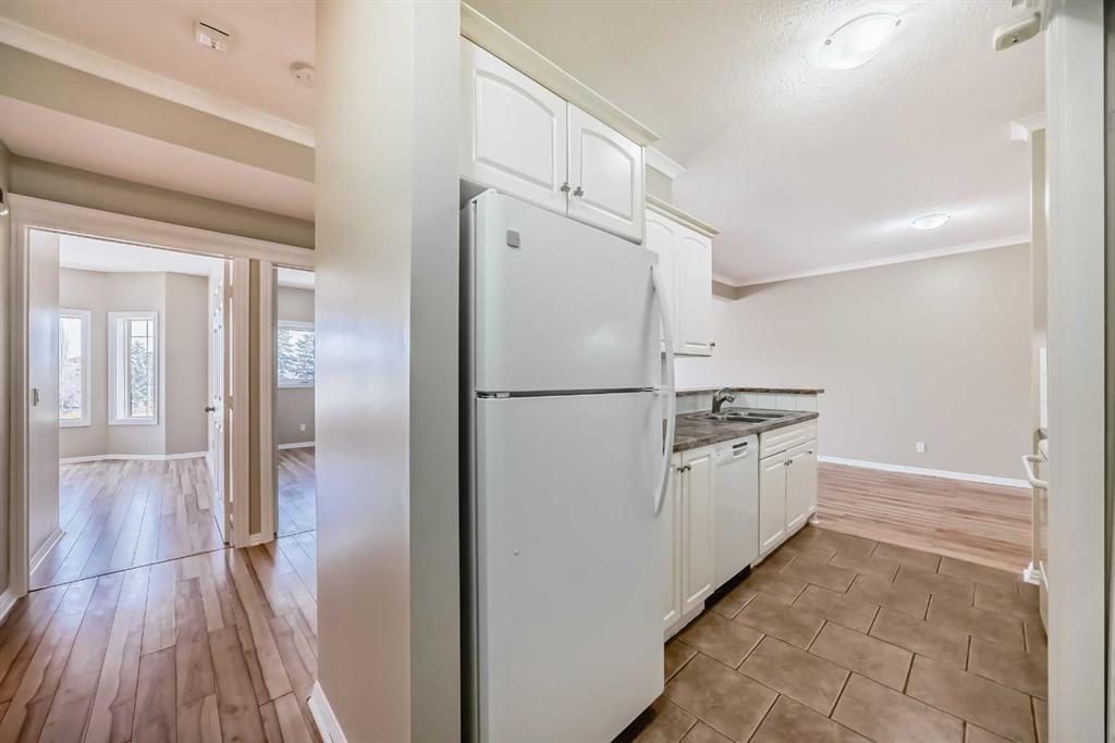 Large 2 bed/1 bath condo located walking distance to the unique shops and services in Okotoks Olde Town. Featuring in floor heat and nine foot ceilings, this home has a large primary bedroom with walk thru closet access to the 4 piece bath. The 2nd bedroom is also a nice size. There is a private east facing balcony to catch the morning sun and enjoy the afternoon shade in the summer. Other features include in-suite laundry, secure storage unit on the main floor and one covered parking stall. The home has just been professional painted and professionally cleaned. The building is very quiet and has only has 14 units with long term residents. There is a no smoking policy and dogs must be under 20 lb.