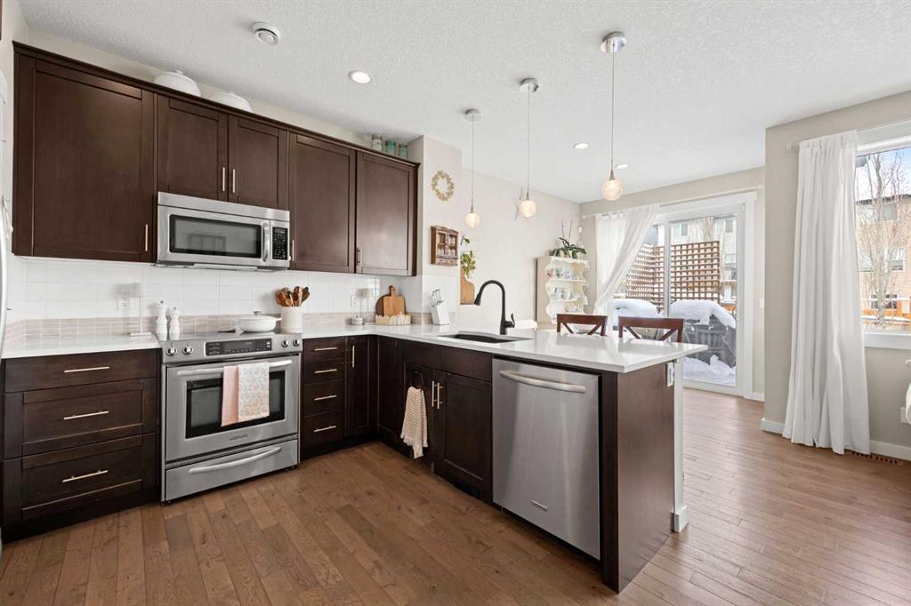 Welcome to a beautiful home in Northwest Calgary, offering great value at an affordable price point. With 3 bedrooms and 2.5 bathrooms, this is the perfect fit for a first-time buyer or a young family! A bright, open main floor layout is complemented by hardwood flooring throughout. The kitchen features quartz countertops, stainless steel appliances, and ample counter space. Just off the kitchen, the dining area is well-sized and makes everyday meals and hosting feel easy. Nearby, the living room offers a warm and inviting space with a natural gas fireplace, flowing seamlessly from the dining area. A powder room completes this level, while the single attached garage adds everyday comfort and convenience. Upstairs, you’ll find three well-sized bedrooms, including a primary bedroom with its own full ensuite, along with another full bathroom and convenient upper-floor laundry. Outside, the backyard stands out with a large deck perfect for entertaining, along with a greenhouse and planter beds for those who enjoy outdoor living. Rare alley access offers added flexibility and the option to build an additional garage if desired. Located within walking distance to the new K-9 school, grocery stores, restaurants, and everyday amenities—making it easy to grab groceries, meet friends for dinner, or walk the kids to school.
