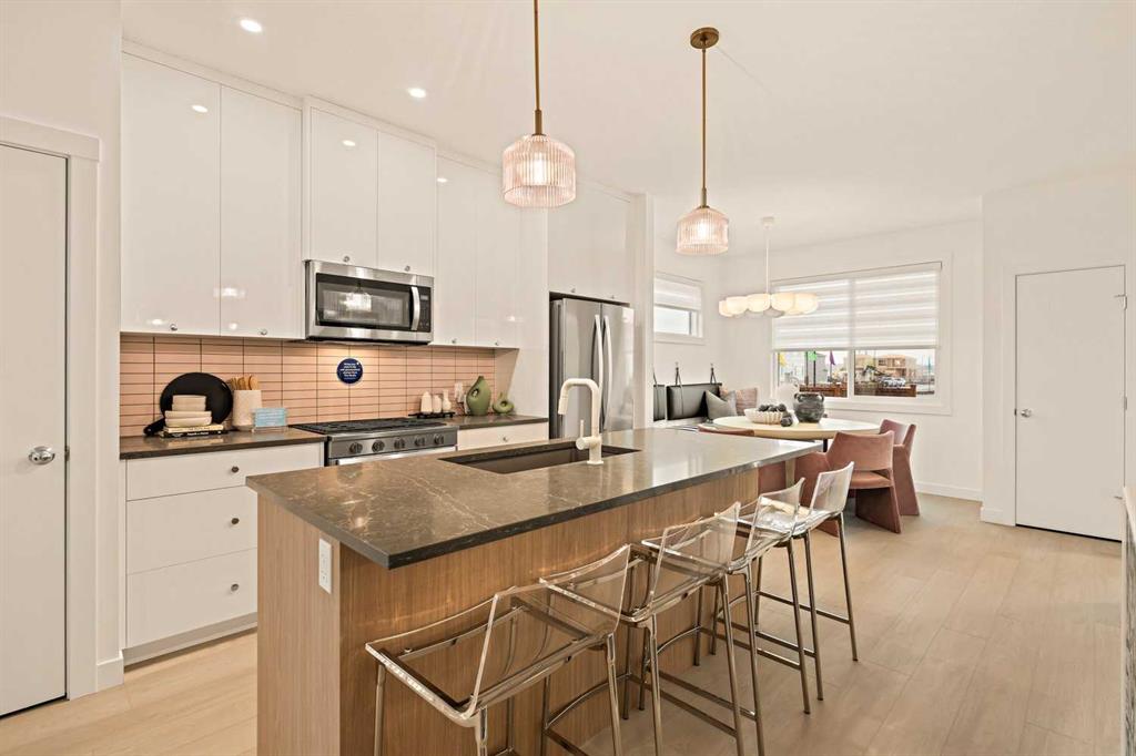 Welcome to The Elm by Brookfield Residential - a beautifully crafted, brand-new home that seamlessly blends modern design, everyday functionality, and exceptional flexibility. Offering over 1,500 sq. ft. of thoughtfully designed living space above grade, plus a fully legal 1-bedroom basement suite, this home is perfectly suited for families, multi-generational living, or those looking to offset their mortgage with rental income. Step inside to discover a bright and inviting main level, highlighted by expansive southwest-facing windows that flood the home with natural light throughout the day. The open-concept layout is both stylish and practical, featuring 9’ ceilings, a spacious living area, and a central kitchen that effortlessly connects to the dining and living spaces - ideal for both everyday living and entertaining. The chef-inspired kitchen is the heart of the home, complete with a large island with seating, stainless steel appliances including a chimney hood fan and built-in microwave, and a generous pantry for added convenience. The dining area overlooks the backyard, creating a seamless indoor-outdoor connection. A functional mudroom with rear access leads to the rear deck, perfect for summer evenings, and a 2-piece powder room completes the main floor. On the upper level, a centrally located bonus room perfectly separates the primary retreat from the secondary bedrooms, creating both privacy and versatility. The primary suite features a walk-in closet and a well-appointed 4-piece ensuite with a walk-in shower. Two additional spacious bedrooms, a full 4-piece bathroom, and an upper-level laundry room complete the upper floor. The fully legal 1-bedroom basement suite offers its own private side entrance and separate mechanical systems. Designed with comfort and independence, the suite includes a modern kitchen, an open living and dining area, a bedroom, a full bathroom, and in-suite laundry - making it an ideal space for extended family or a valuable income-generating opportunity. Outside, the backyard is ready for summer enjoyment with a rear deck and double parking pad, along with room to build a future detached garage. Located in the vibrant and amenity-rich community of Seton, you’re just minutes from the South Health Campus, Seton YMCA, and a wide array of shopping, dining, and entertainment options. Backed by builder warranty and Alberta New Home Warranty coverage, this is a home you can move into with confidence. **Please note: Photos are not an exact representation of the property for sale.