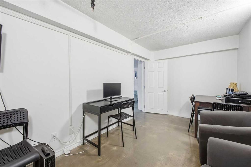 Have you ever dreamed of living or working in Manhattan? This is Calgary’s answer to that iconic urban lifestyle. With flexible zoning that permits both residential and commercial use, this exceptional two storey loft can be your home, your office, or a seamless blend of both. Currently configured as office space, the unit offers soaring 16’ ceilings and over 1,200 sq ft of living space that can easily be reimagined into a sophisticated loft residence. The main level features an expansive living/dining area with an industrial aesthetic, open to the kitchen for effortless flow. A convenient 2 piece powder room and generous storage complete this level. A striking staircase leads to the lofted upper floor, where you’ll find a spacious bedroom, a versatile den or office, and a 5 piece bath. Units 301 and 303 are being sold separately; however, if purchased together, they can be seamlessly connected to create a truly spectacular space. If only one unit is purchased, the access point between them will be professionally sealed. Additional highlights include in suite laundry, a west-facing balcony, one assigned parking stall, and one assigned storage locker. Set in the heart of Calgary’s premier dining and entertainment district—and just a short walk to the downtown core—this location delivers the ultimate urban convenience and energy.