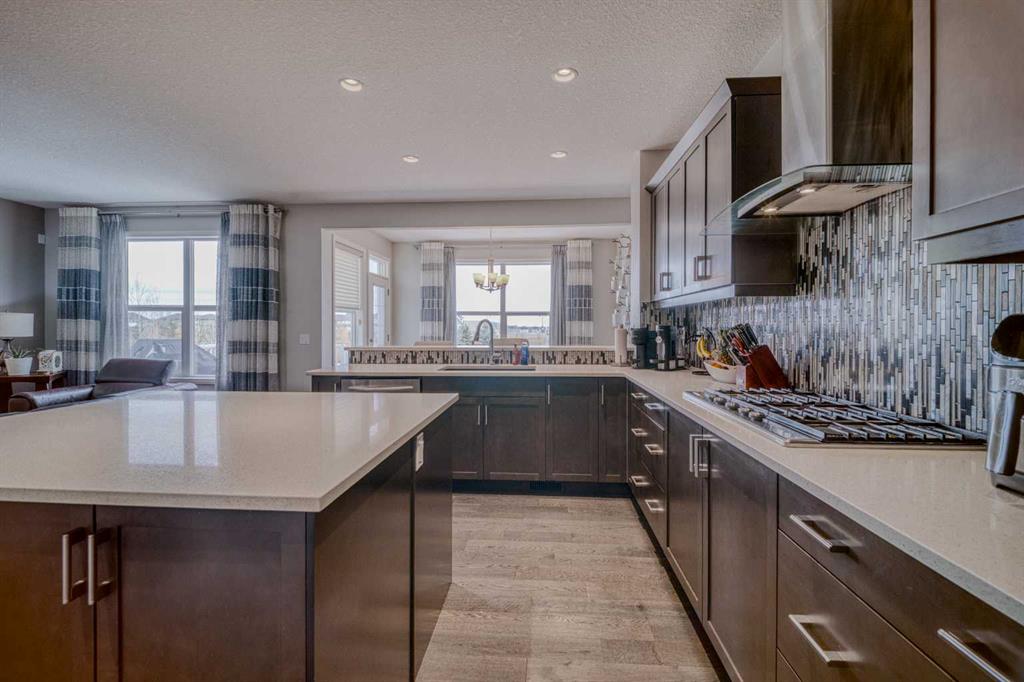 BACKING ONTO POND | GREEN SPACE & PLAYGROUND | OVER 3,000 SQ FT | FULLY FINISHED BASEMENT WITH BIG WINDOW | AUBURN BAY LAKE COMMUNITY Welcome to this beautifully appointed 4-bedroom home offering over 3,000 sq ft of total developed living space, ideally located on a quiet, family-friendly street in the highly sought-after lake community of Auburn Bay. Perfectly positioned backing directly onto green space, playground, and scenic walking paths, this home offers a rare blend of privacy, open views, and everyday convenience—just minutes to schools, shopping, and all essential amenities. The main floor features a bright, open-concept layout filled with natural light from oversized windows framing peaceful pond views. At the heart of the home is a chef-inspired kitchen showcasing maple hardwood cabinetry, quartz countertops, stainless steel appliances, and a gas range. A large central island anchors the space—perfect for entertaining—seamlessly connecting the dining area and inviting living room. Step outside onto the rear deck to enjoy tranquil water views, direct pathway access, and even seasonal community fireworks reflecting over the pond—an exceptional outdoor lifestyle right in your backyard. Upstairs, a spacious bonus room with soaring ceilings offers the perfect setting for family movie nights or relaxation. A private upper deck extends directly from the bonus room, offering an elevated outdoor space to relax and enjoy the surrounding views. The generous primary retreat features a walk-in closet and a luxurious 5-piece ensuite complete with dual vanities, a deep soaker tub, and a separate shower. Two additional bedrooms and a full bathroom complete the upper level. The fully developed basement extends the living space with a large recreation room featuring oversized windows, a stylish wet bar equipped with dishwasher, wine cooler, and hood fan, plus a guest bedroom, full bathroom, and a versatile flex space ideal for a home office, gym, or playroom. Additional highlights include an oversized double attached garage and the rare advantage of backing directly onto expansive green space—offering both privacy and uninterrupted views. Located within close proximity to both Catholic and public schools, parks, pathways, and Auburn Bay’s exclusive lake amenities, this home presents an exceptional opportunity for families and investors alike.