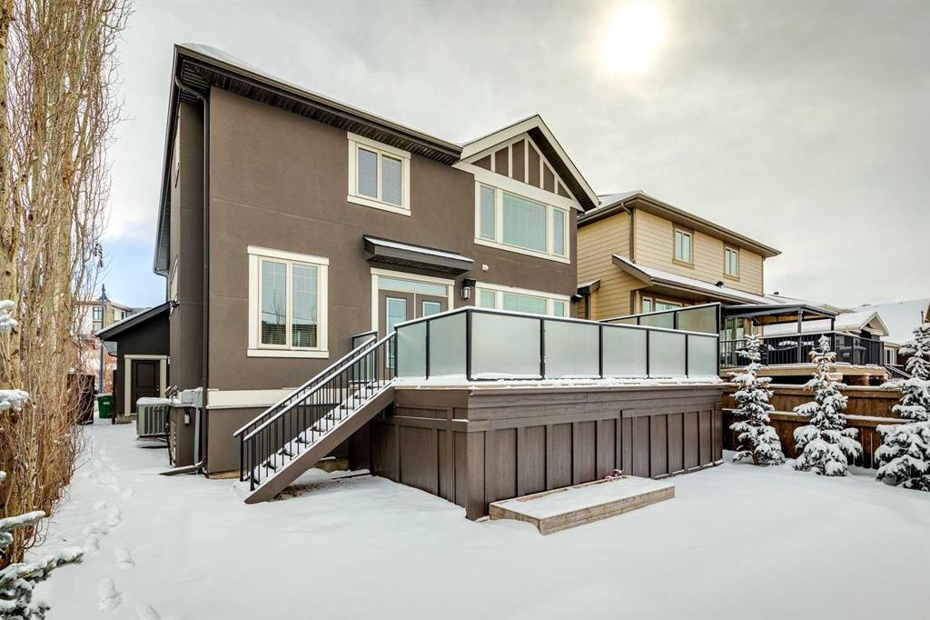 This beautifully updated home in one of Aspen’s most desirable pockets offers the kind of effortless lifestyle today’s families are looking for with recent renovations, an immaculate turn-key condition, and ready to you to simply move in and enjoy. From the moment you step inside, the home feels warm, inviting, and thoughtfully designed for everyday living. An open-concept main floor seamlessly connects the living, dining, and kitchen spaces, making it ideal for both relaxed family time and entertaining. The living room is anchored by a fireplace and framed by large windows that fill the space with natural light, while the dining area opens onto a generous west-facing deck, perfect for summer evenings and sunset dinners. Just off the dining area, a tucked-away home office sits behind French doors, complete with built-in desks for two, and designer wallpaper. It’s the perfect place to work from home or keep an eye on homework while staying connected to the heart of the house. The kitchen is timeless and functional, designed with both beauty and practicality in mind. A large central island with seating invites gathering, while a gas cooktop, wall oven, and a well-appointed pantry with additional fridge/freezer make it a dream for home chefs. The pantry conveniently connects to an organized mudroom and out to the triple garage, making daily routines seamless. Upstairs, a cozy loft offers a flexible space for kids to relax or watch TV. Down the hallway, the primary suite is a luxurious retreat, featuring a spacious walk-in closet and a gorgeous, newly renovated ensuite with in-floor heating, a soaker tub, oversized shower, double vanities, water closet, high end finishes and stylish fixtures. Two additional bedrooms each offer their own walk-in closets and ensuites, offering privacy and space for each family member. A well-equipped laundry room with sink, storage, and drying rod adds everyday convenience. The fully developed basement expands your living space with a media room, home gym, fourth bedroom, and full bathroom. Outside, the west-facing backyard is beautifully landscaped for privacy, creating a serene setting to unwind at the end of the day. Additional features of note include updated cabinetry, a recent paint refresh, air conditioning, and Gemstone exterior lighting that enhances curb appeal. This home is ideally located just minutes from the shops and restaurants of Aspen Landing, top-tier schools like Rundle College, Calgary Academy, and Webber Academy. As well, Ernest Manning High School, Westside Recreation Centre, the C-Train, and Stoney Trail are only moments away. This is a home that truly balances lifestyle, location, and design.