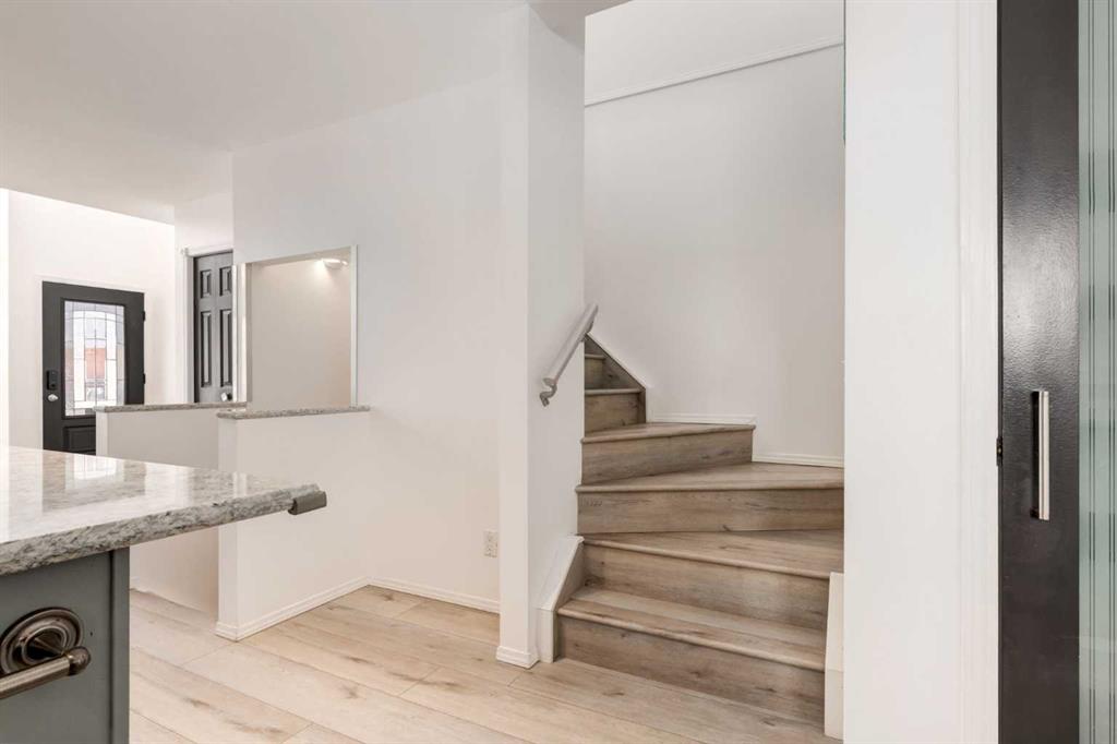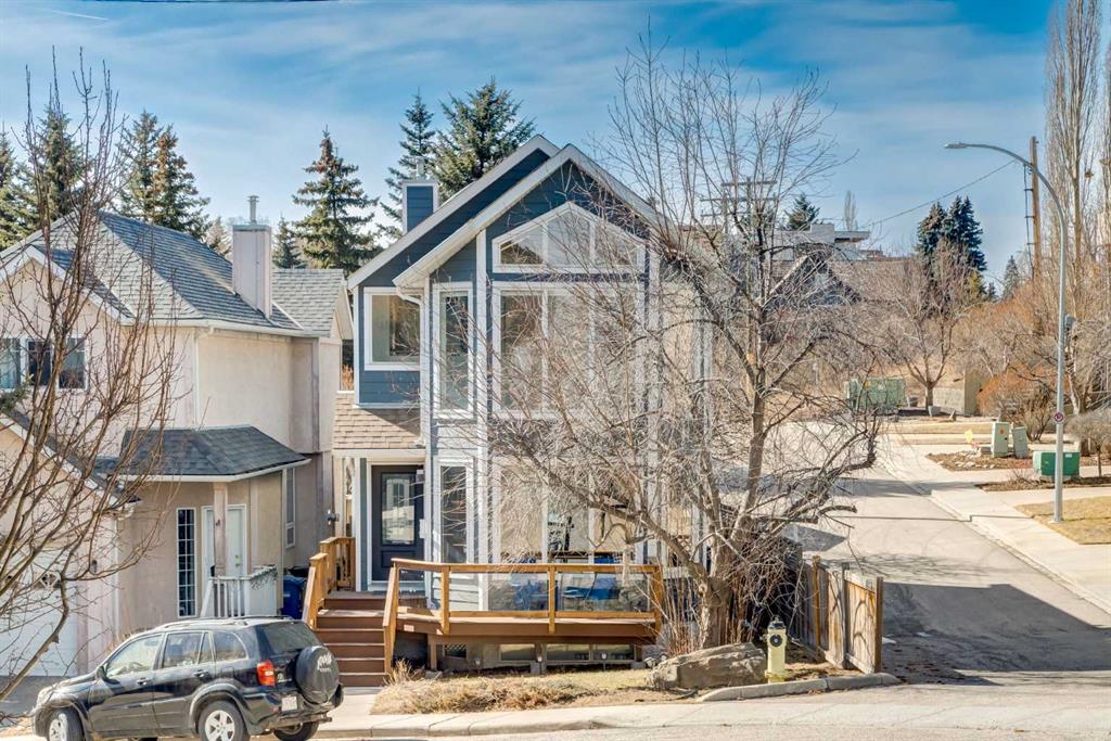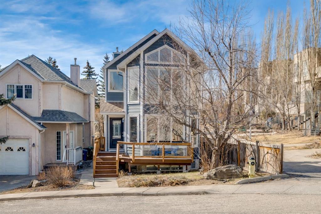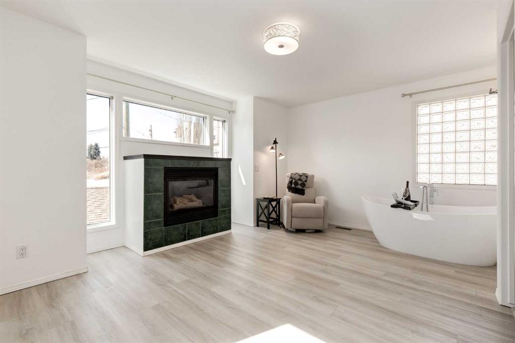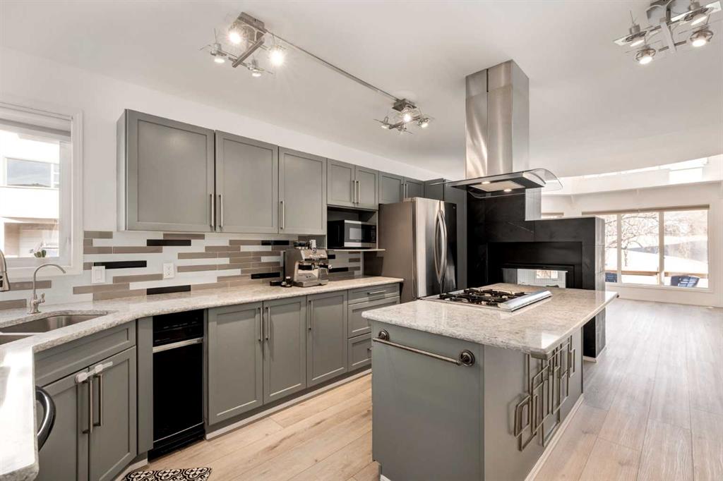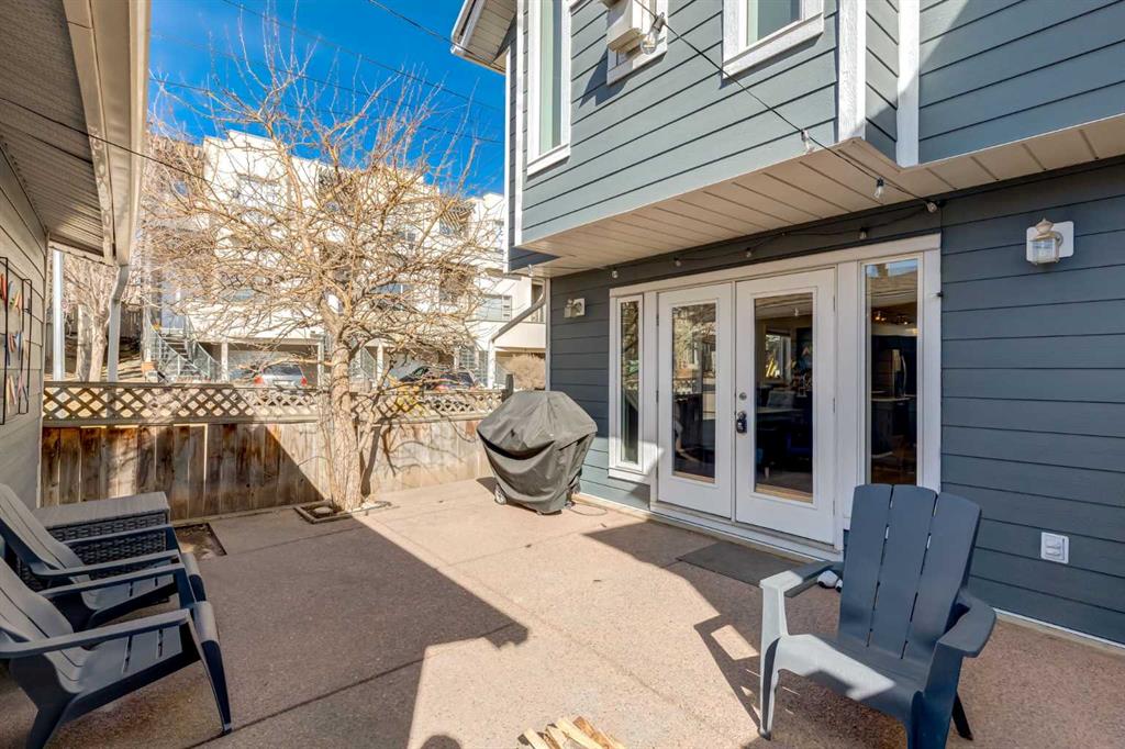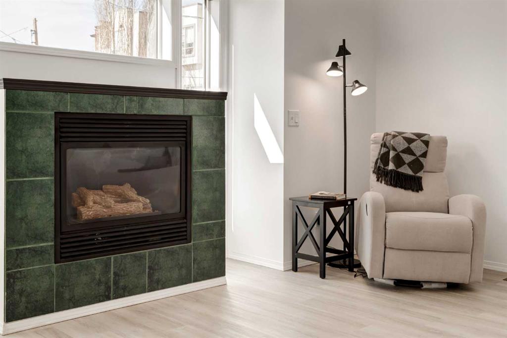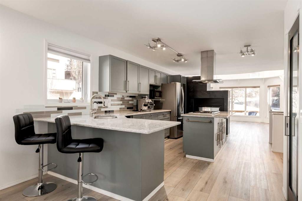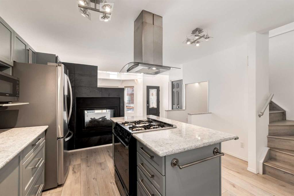 This beautifully maintained and updated two-storey home features strong curb appeal and a functional, light-filled layout. A charming east-facing front deck welcomes you, while soaring floor-to-ceiling windows bring in soft natural light. The open-concept main floor showcases a two-sided fireplace and flows into a well-appointed kitchen with granite countertops, a large island, peninsula seating, and ample cabinetry and pantry storage. Recent updates include wide plank white oak-style hardwood flooring throughout the main and upper levels, along with fresh interior paint, creating a bright and cohesive feel. The rear dining area opens to a private courtyard-style backyard with a gas line for BBQ and access to the double detached garage. Upstairs, a lofted flex space overlooks the living room and is complemented by skylights. Two bedrooms complete this level, including a primary retreat with a fireplace, cheater ensuite with glass shower, and a statement vessel-style bathtub positioned within the bedroom for a spa-like atmosphere. The fully developed lower level offers two additional bedrooms, a full bathroom, a spacious recreation area, and excellent storage. Additional features include a new furnace, central air conditioning, cement board siding, and a newer roof. Offered under $800,000 in one of Calgary’s most sought-after inner-city communities—contact for full details.