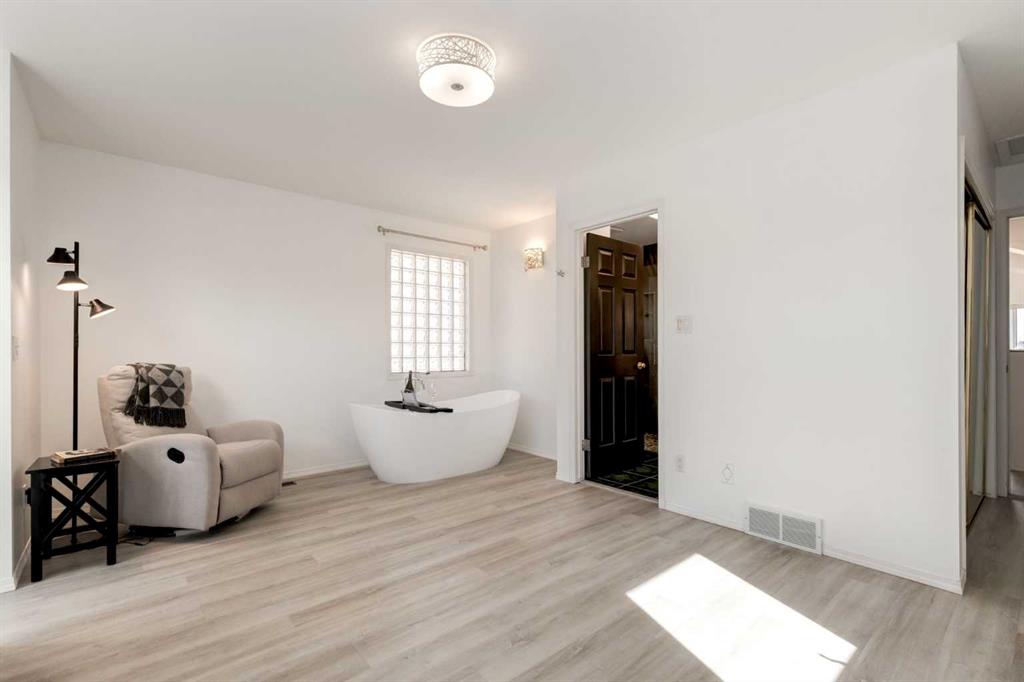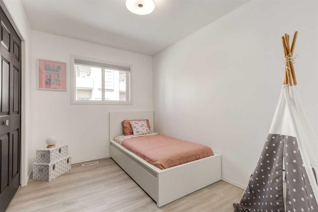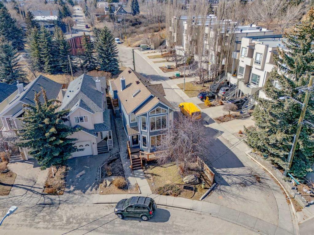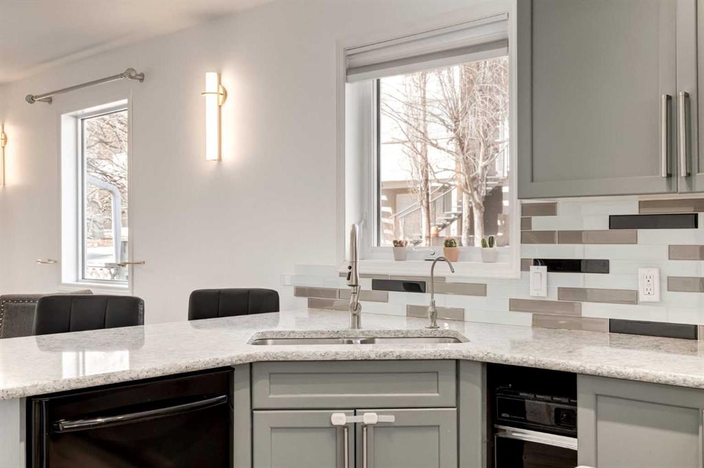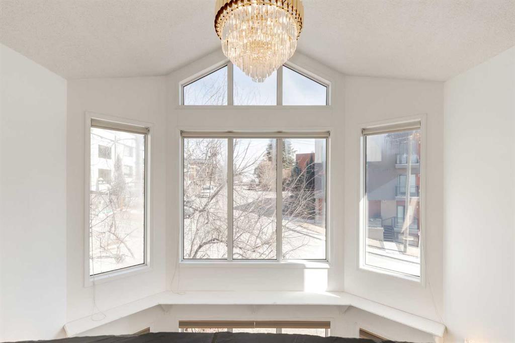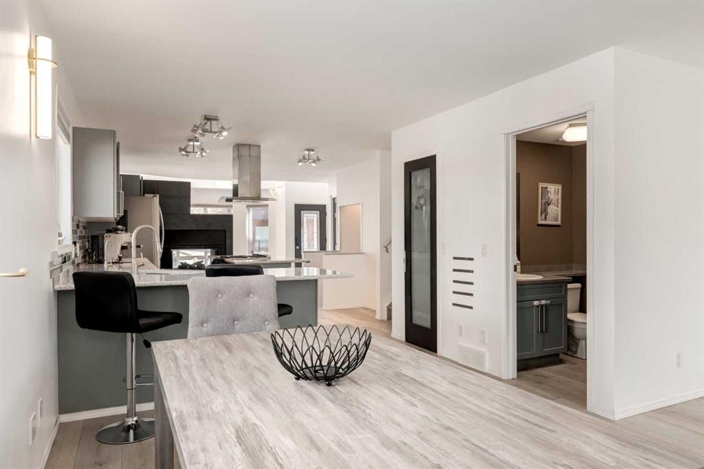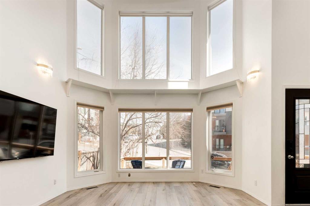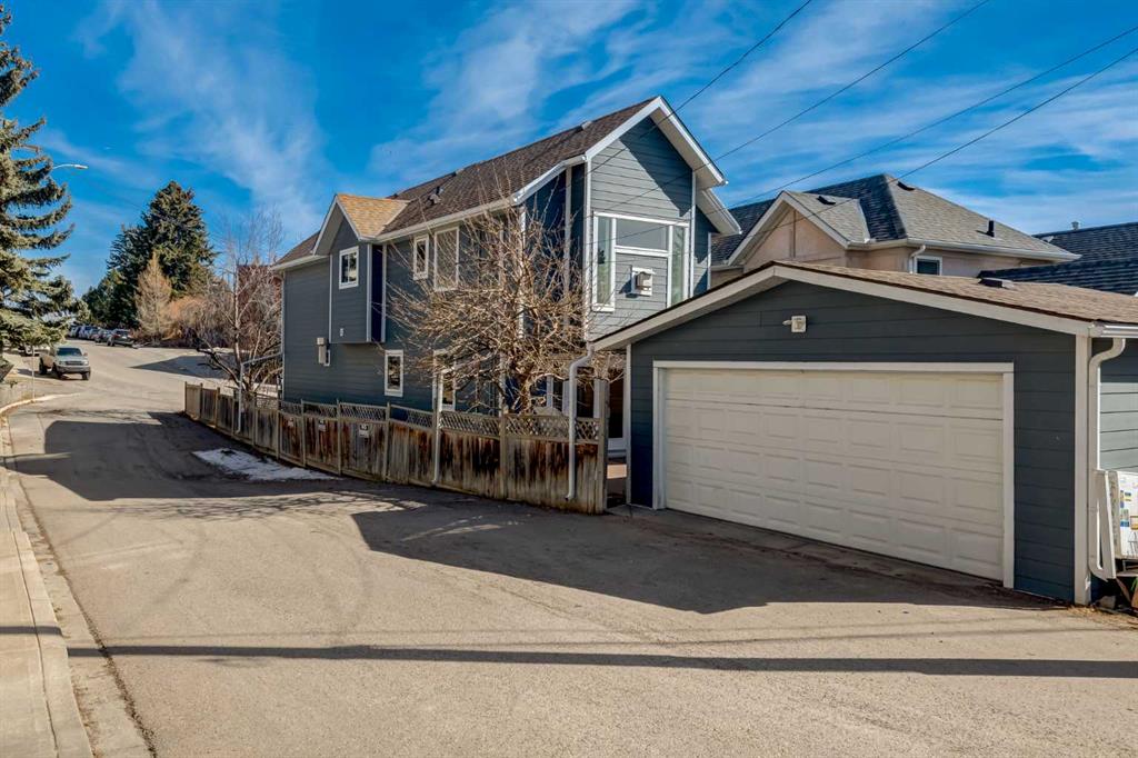 This beautifully maintained and updated two-storey home features strong curb appeal and a functional, light-filled layout. A charming east-facing front deck welcomes you, while soaring floor-to-ceiling windows bring in soft natural light. The open-concept main floor showcases a two-sided fireplace and flows into a well-appointed kitchen with granite countertops, a large island, peninsula seating, and ample cabinetry and pantry storage. Recent updates include wide plank white oak-style hardwood flooring throughout the main and upper levels, along with fresh interior paint, creating a bright and cohesive feel. The rear dining area opens to a private courtyard-style backyard with a gas line for BBQ and access to the double detached garage. Upstairs, a lofted flex space overlooks the living room and is complemented by skylights. Two bedrooms complete this level, including a primary retreat with a fireplace, cheater ensuite with glass shower, and a statement vessel-style bathtub positioned within the bedroom for a spa-like atmosphere. The fully developed lower level offers two additional bedrooms, a full bathroom, a spacious recreation area, and excellent storage. Additional features include a new furnace, central air conditioning, cement board siding, and a newer roof. Offered under $800,000 in one of Calgary’s most sought-after inner-city communities—contact for full details.