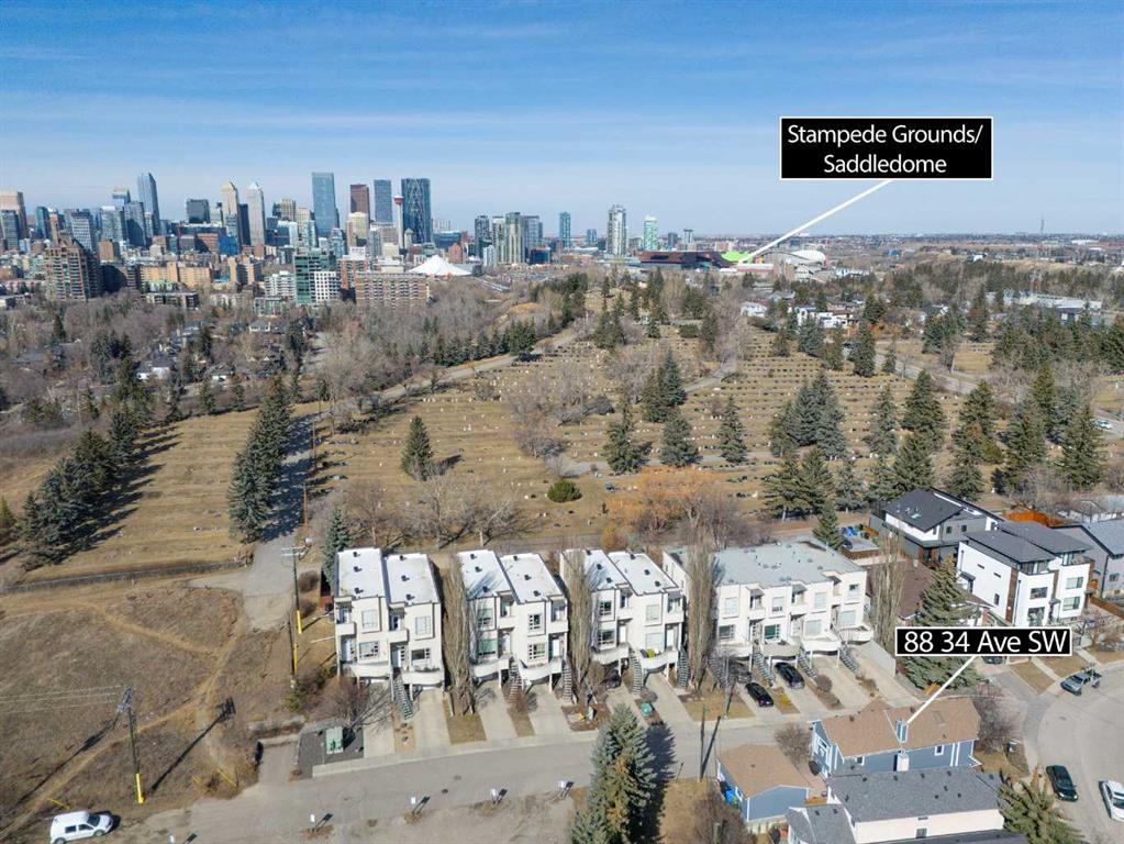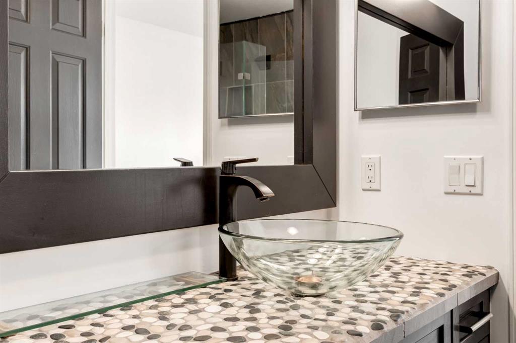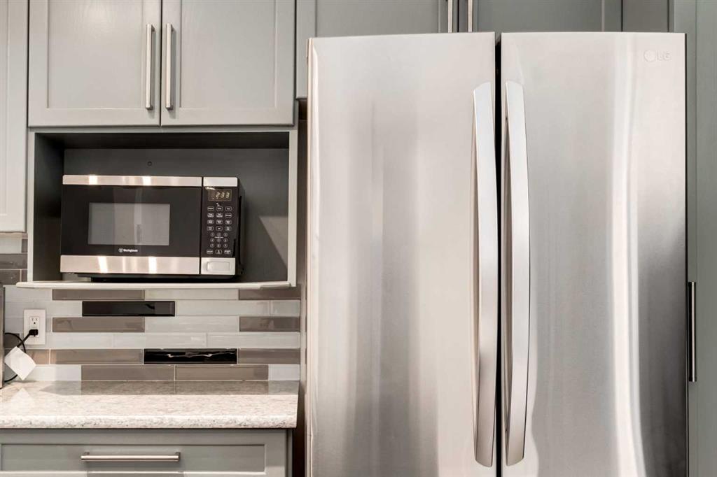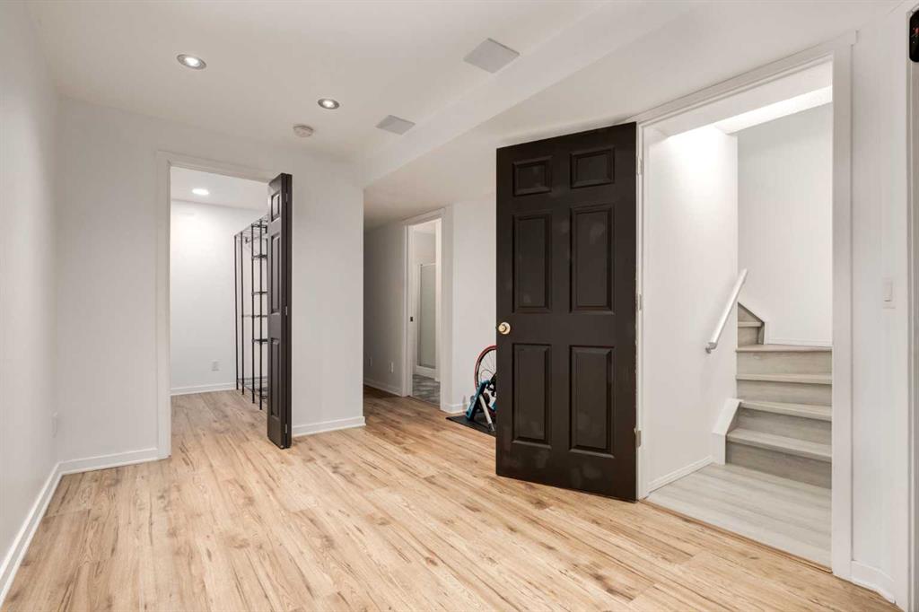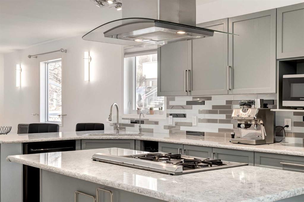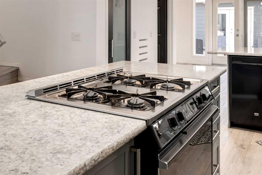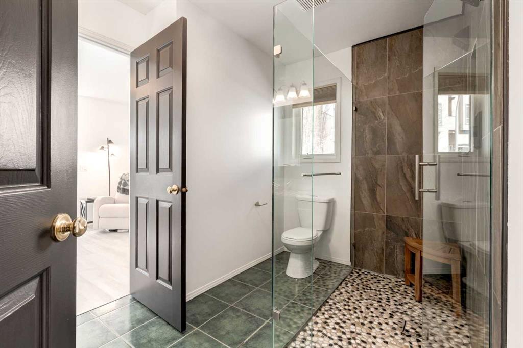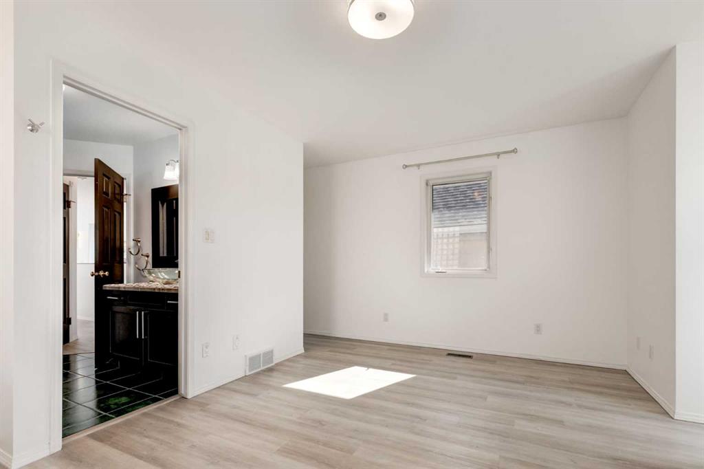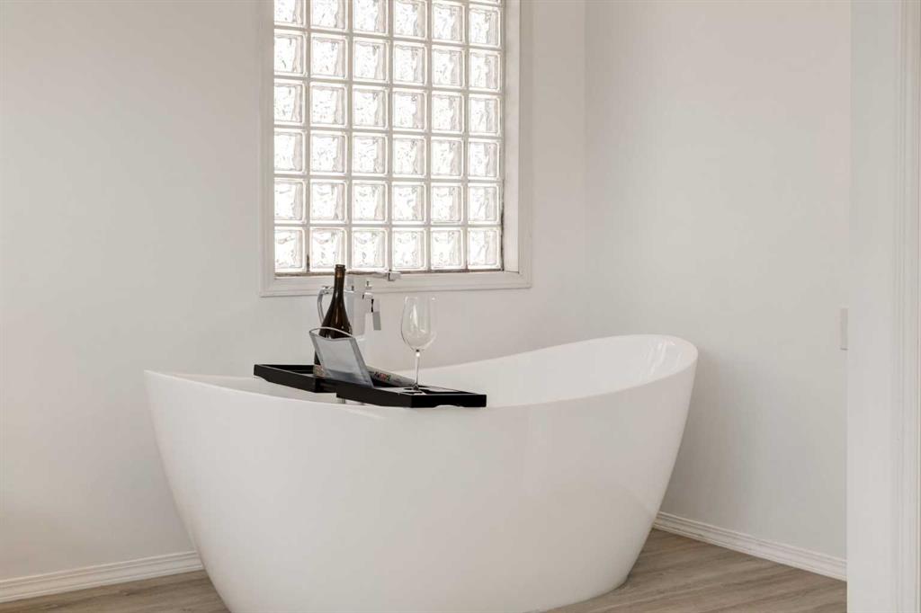 This beautifully maintained and updated two-storey home features strong curb appeal and a functional, light-filled layout. A charming east-facing front deck welcomes you, while soaring floor-to-ceiling windows bring in soft natural light. The open-concept main floor showcases a two-sided fireplace and flows into a well-appointed kitchen with granite countertops, a large island, peninsula seating, and ample cabinetry and pantry storage. Recent updates include wide plank white oak-style hardwood flooring throughout the main and upper levels, along with fresh interior paint, creating a bright and cohesive feel. The rear dining area opens to a private courtyard-style backyard with a gas line for BBQ and access to the double detached garage. Upstairs, a lofted flex space overlooks the living room and is complemented by skylights. Two bedrooms complete this level, including a primary retreat with a fireplace, cheater ensuite with glass shower, and a statement vessel-style bathtub positioned within the bedroom for a spa-like atmosphere. The fully developed lower level offers two additional bedrooms, a full bathroom, a spacious recreation area, and excellent storage. Additional features include a new furnace, central air conditioning, cement board siding, and a newer roof. Offered under $800,000 in one of Calgary’s most sought-after inner-city communities—contact for full details.